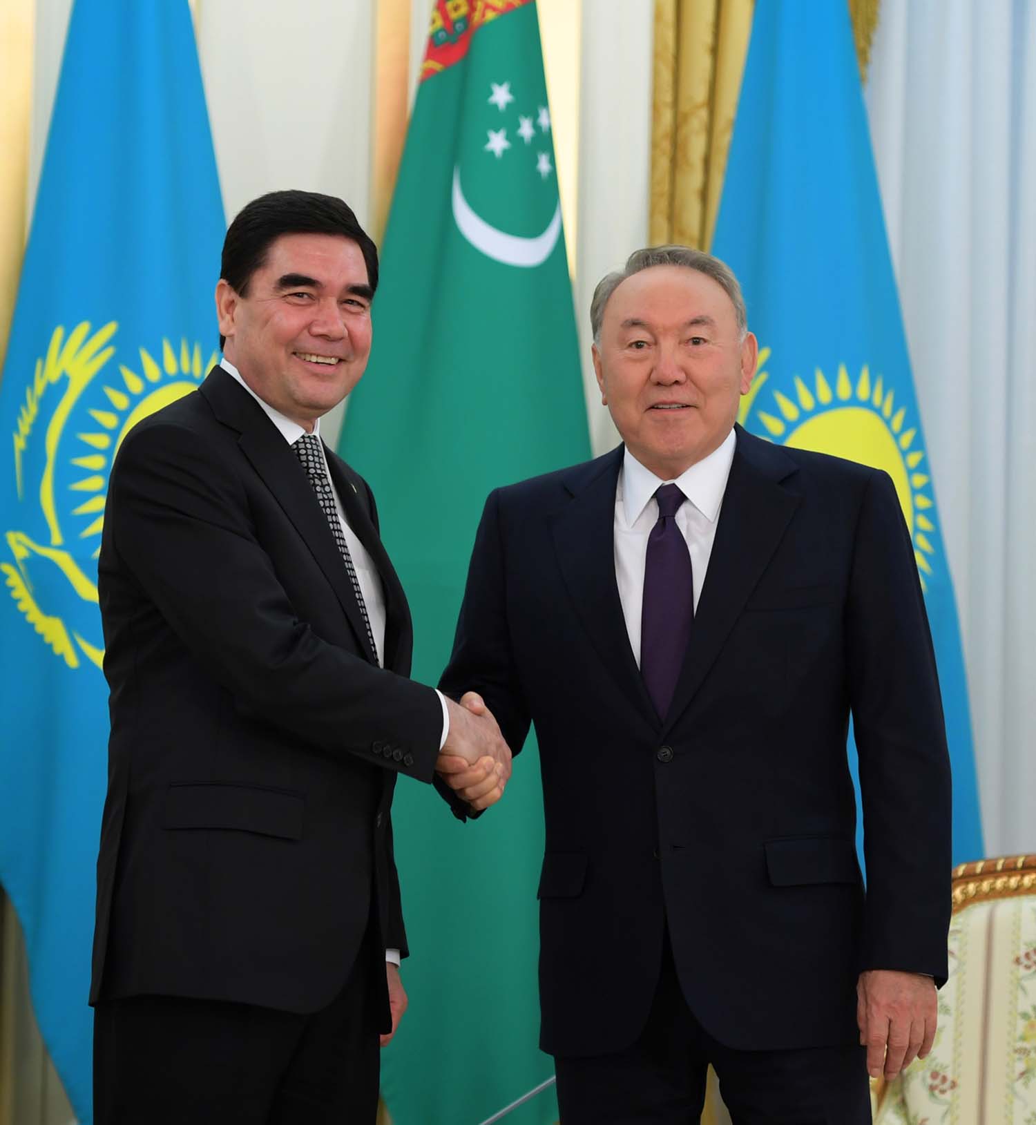 Nursultan Nazarbayev, having greeted Gurbanguly Berdymuhamedov on the Kazakh land, congratulated the Turkmen leader on winning the last presidential election.