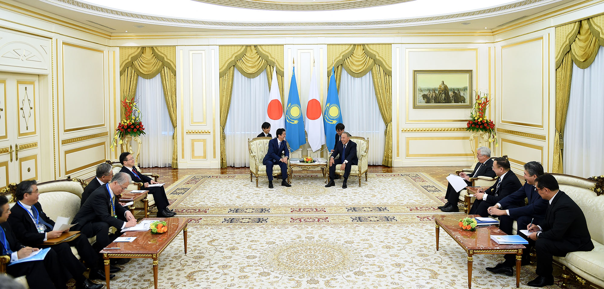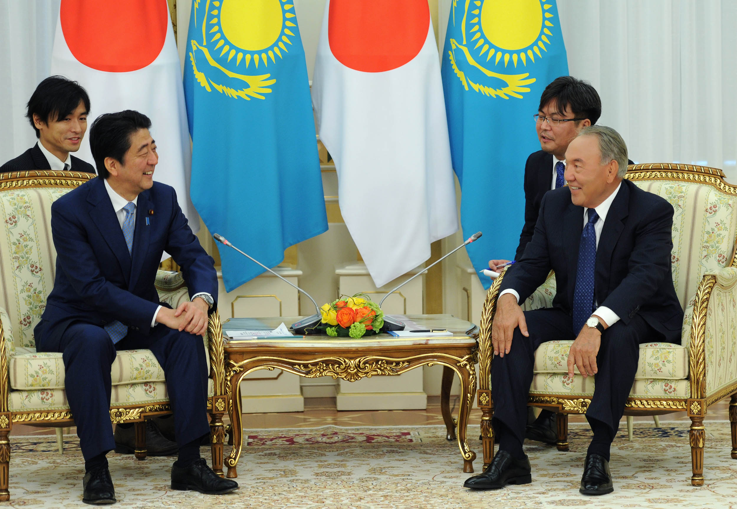 Meeting with Prime Minister of Japan Shinzo Abe, paying an official visit to Kazakhstan