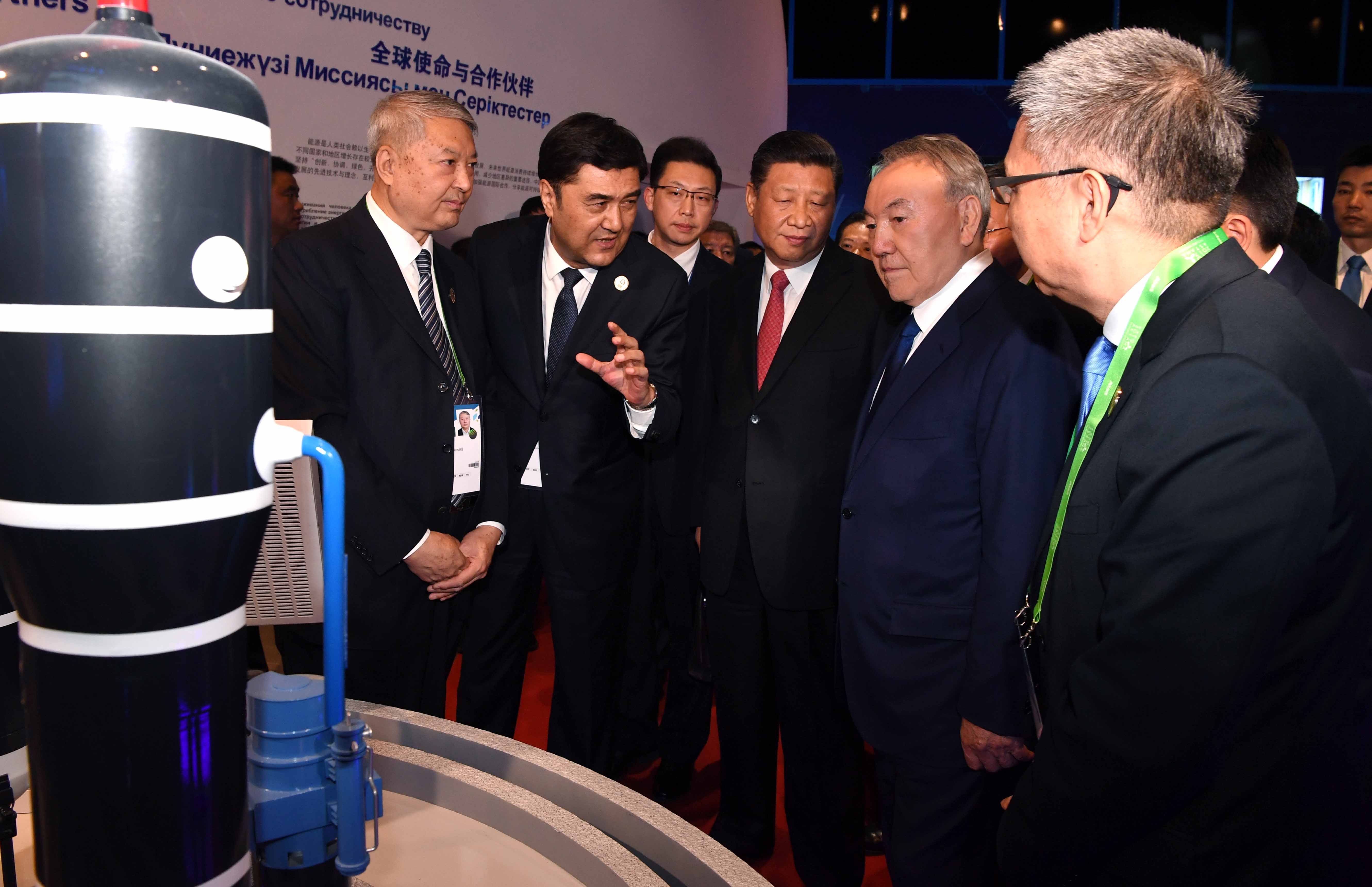 During the visit to the exhibition pavilion of the People's Republic of China Nursultan Nazarbayev and Xi Jinping took part in "Kazakhstan and China, Transit Bridge of Eurasia" space bridge.