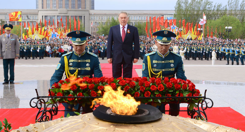 Today President Nursultan Nazarbayev took part in the wreath laying ceremony to the Fatherland Defenders’ Monument and observed a one-minute silence in honor of the Kazakhstani soldiers who gave their lives in the Great Patriotic War.