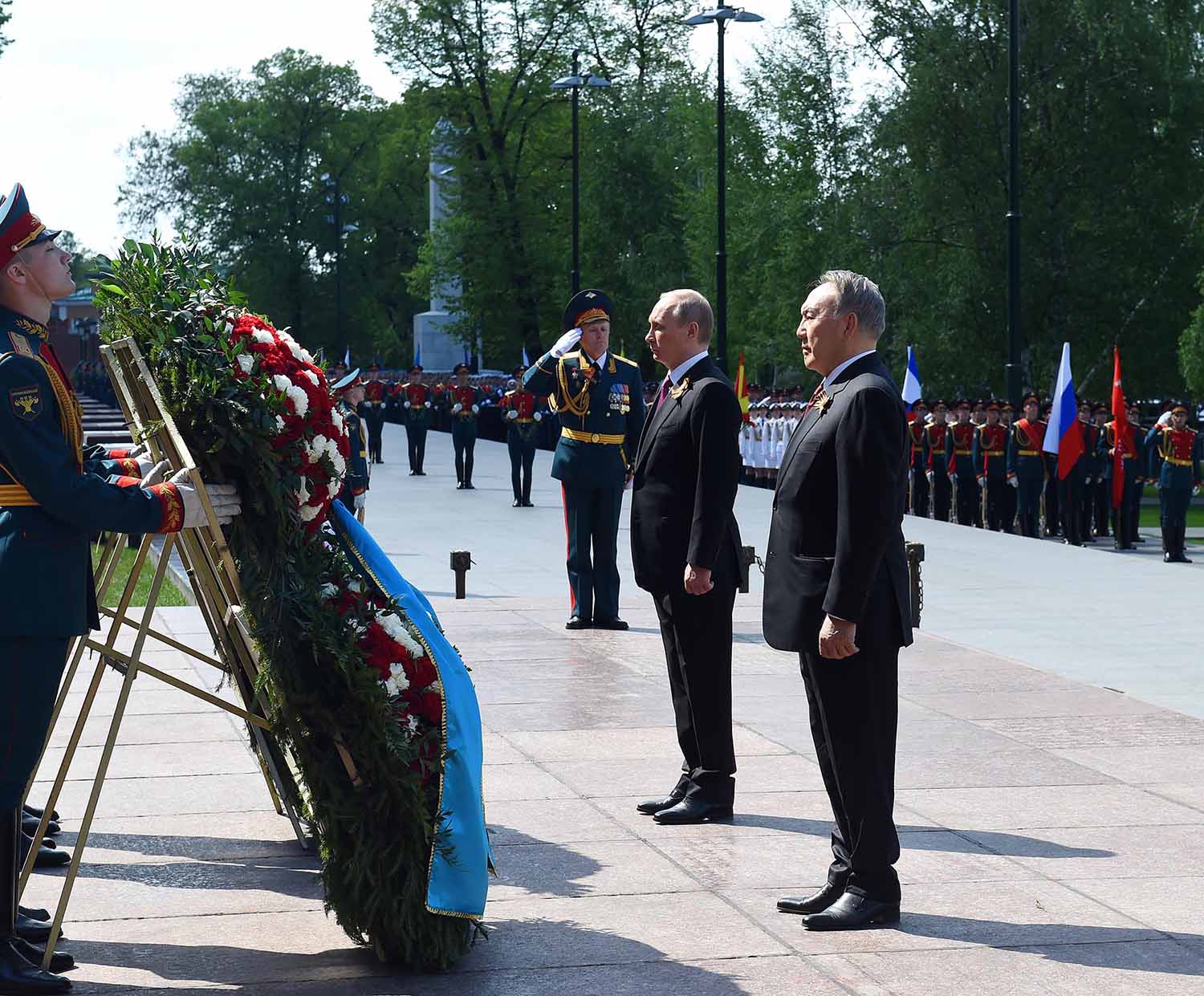 Nursultan Nazarbayev attended the Victory Day military parade in the Red Square and took part in a wreath laying ceremony at The Tomb of the Unknown Soldier.