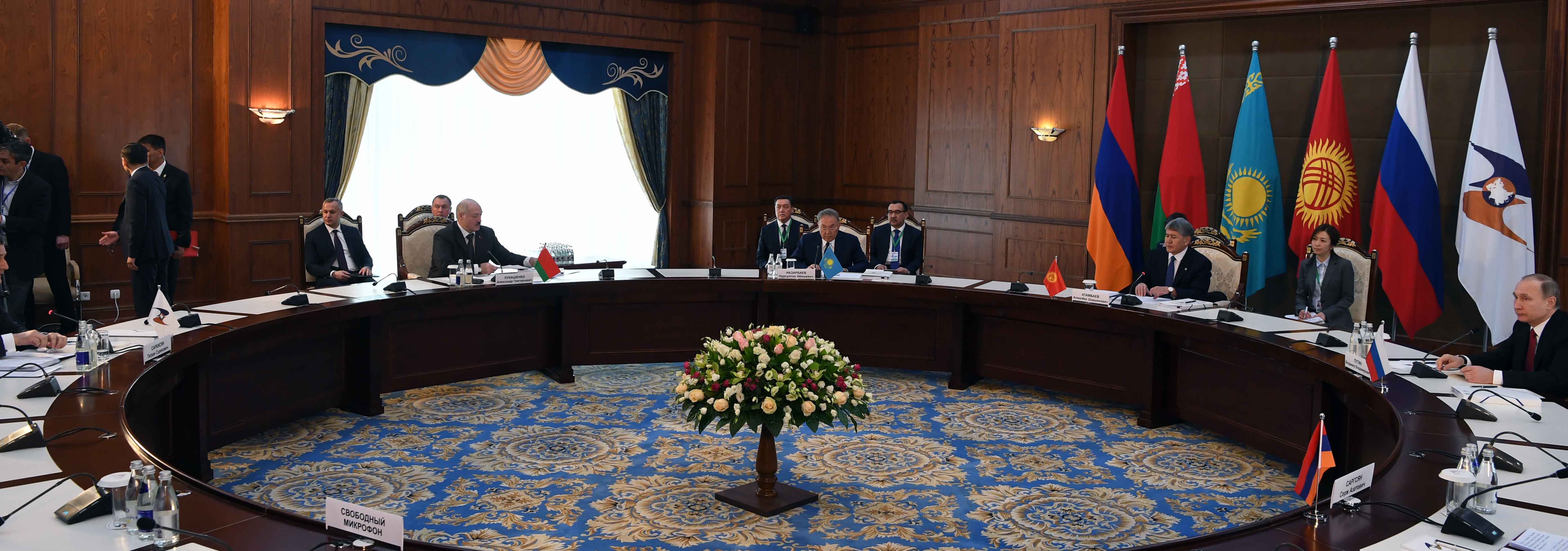 The Presidents also participated in the work of the Council: Serzh Sargsyan - Armenia, Alexander Lukashenko - Belarus, Almazbek Atambayev - Kyrgyzstan, Vladimir Putin - Russia, as well as Tigran Sargsyan, the Chairman of the EEC Board.