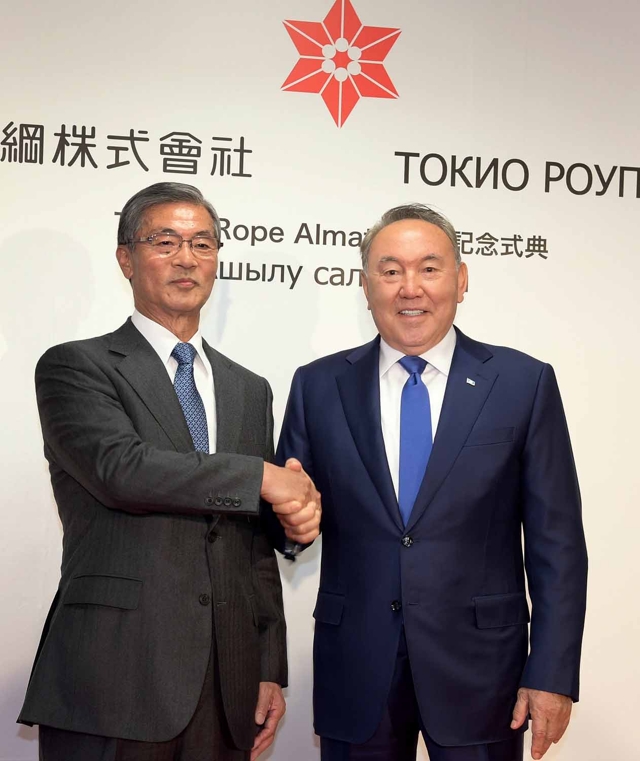 The Kazakh leader got acquainted with the company’s business, and surveyed its output. During the visit Nursultan Nazarbayev also took part in the ceremony of remote start via teleconference for "Tokyo Rope Almaty" plant for manufacturing steel products in Kazakhstan.
