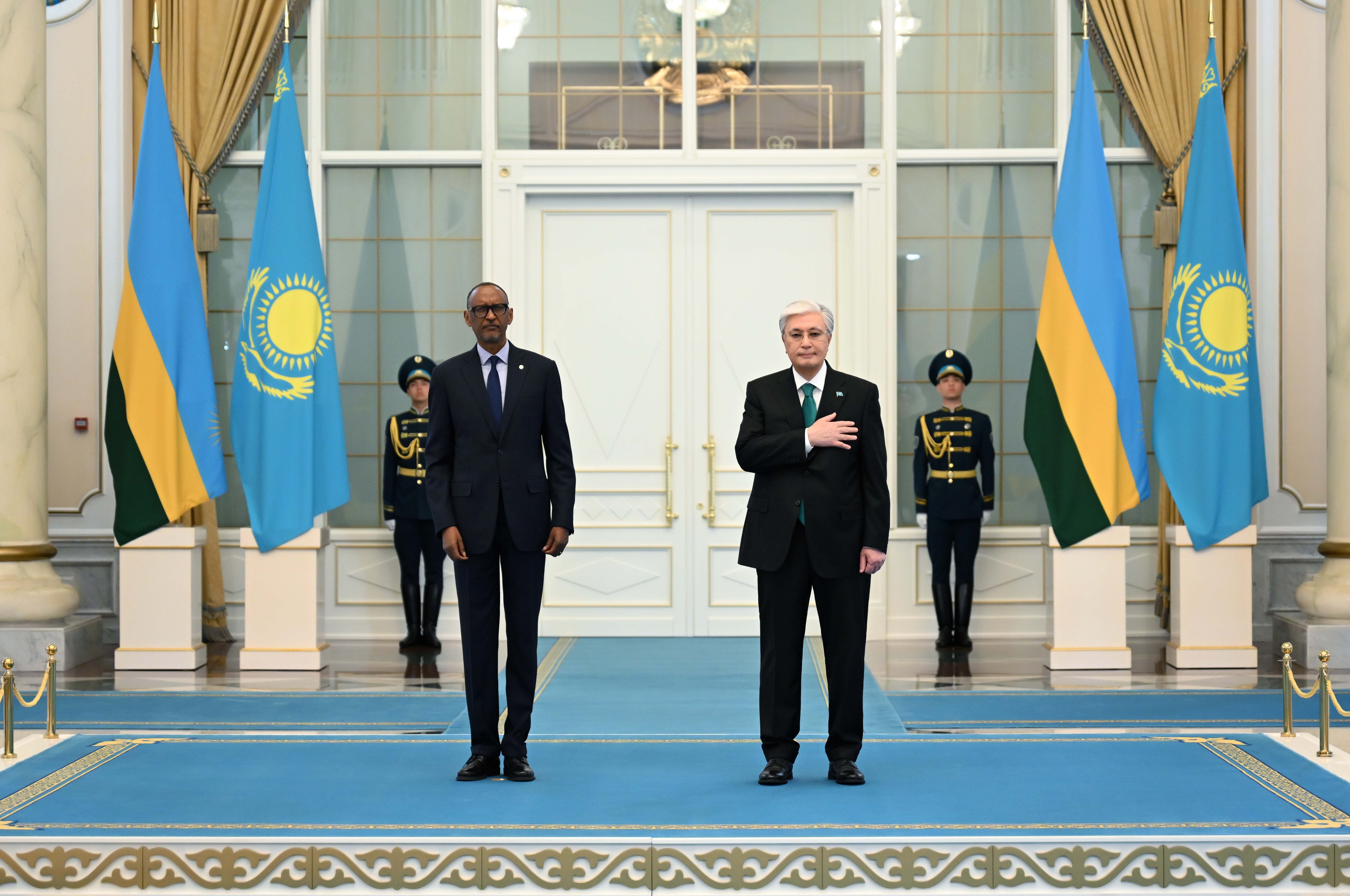 A formal welcoming ceremony for President Paul Kagame of the Republic of Rwanda, who arrived in Kazakhstan on an official visit, took place at the Akorda Presidential Palace.