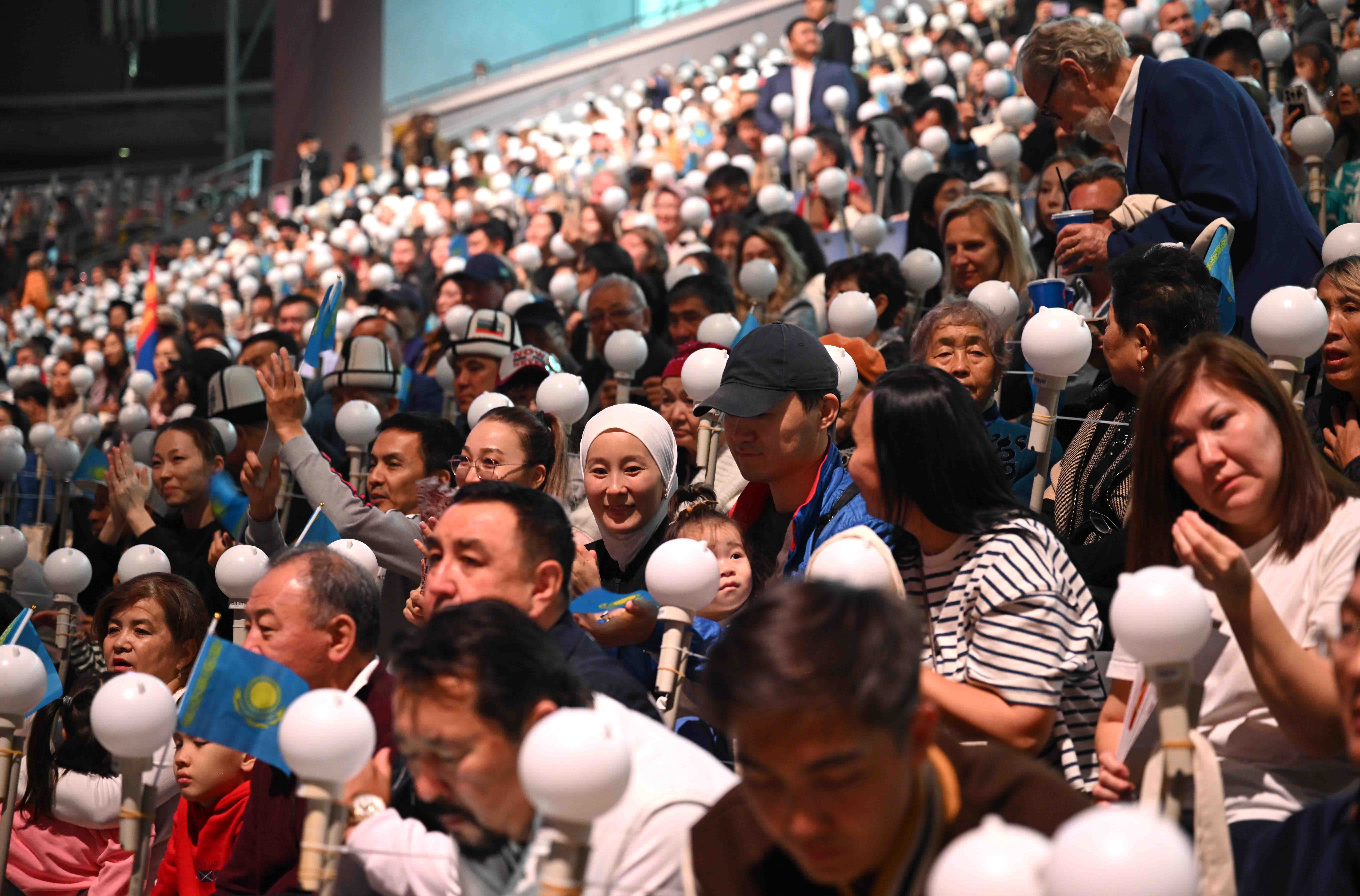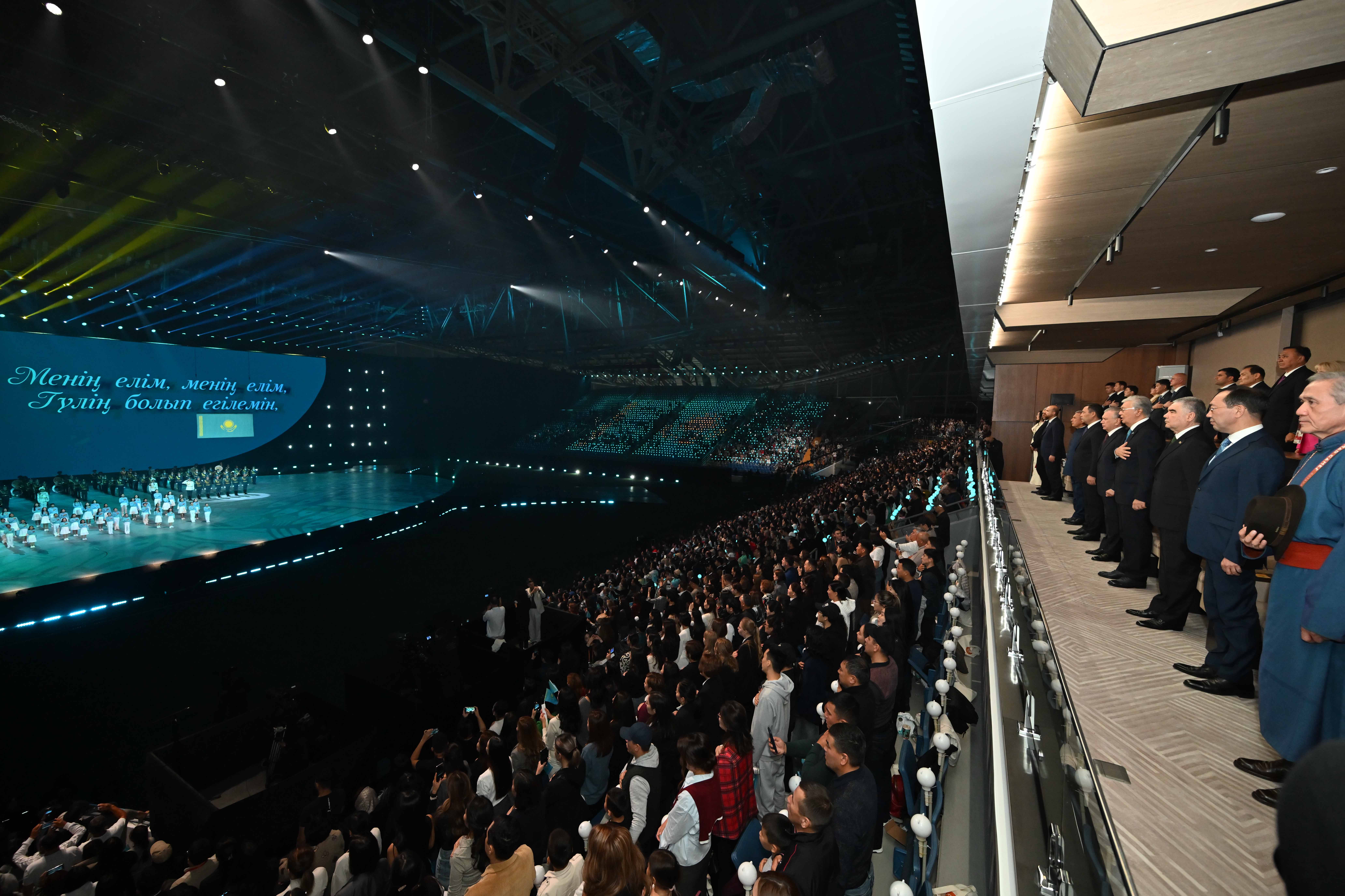 At the commencement of the ceremony, children representing various ethnic groups in Kazakhstan presented the national flag, after which the national anthem was played.