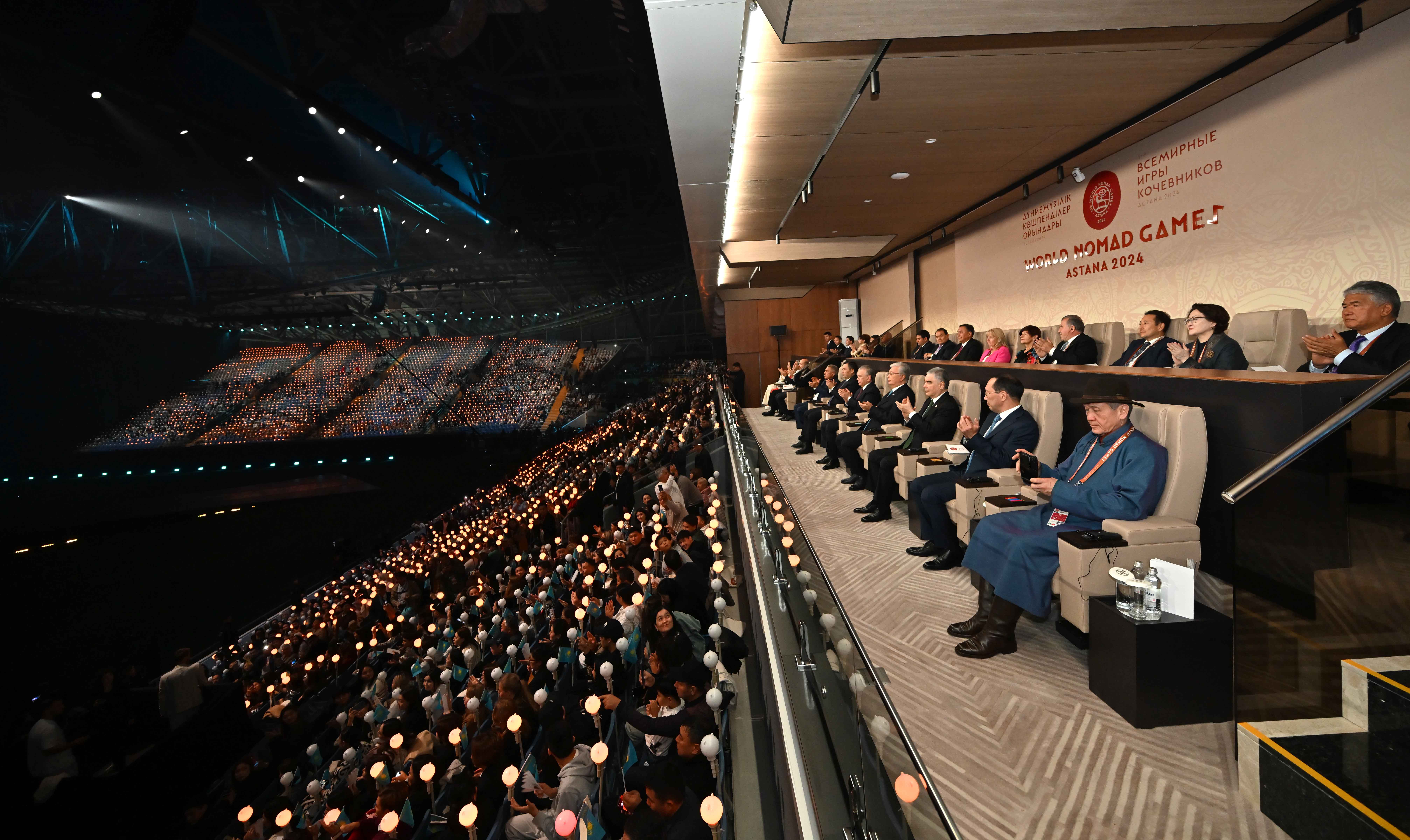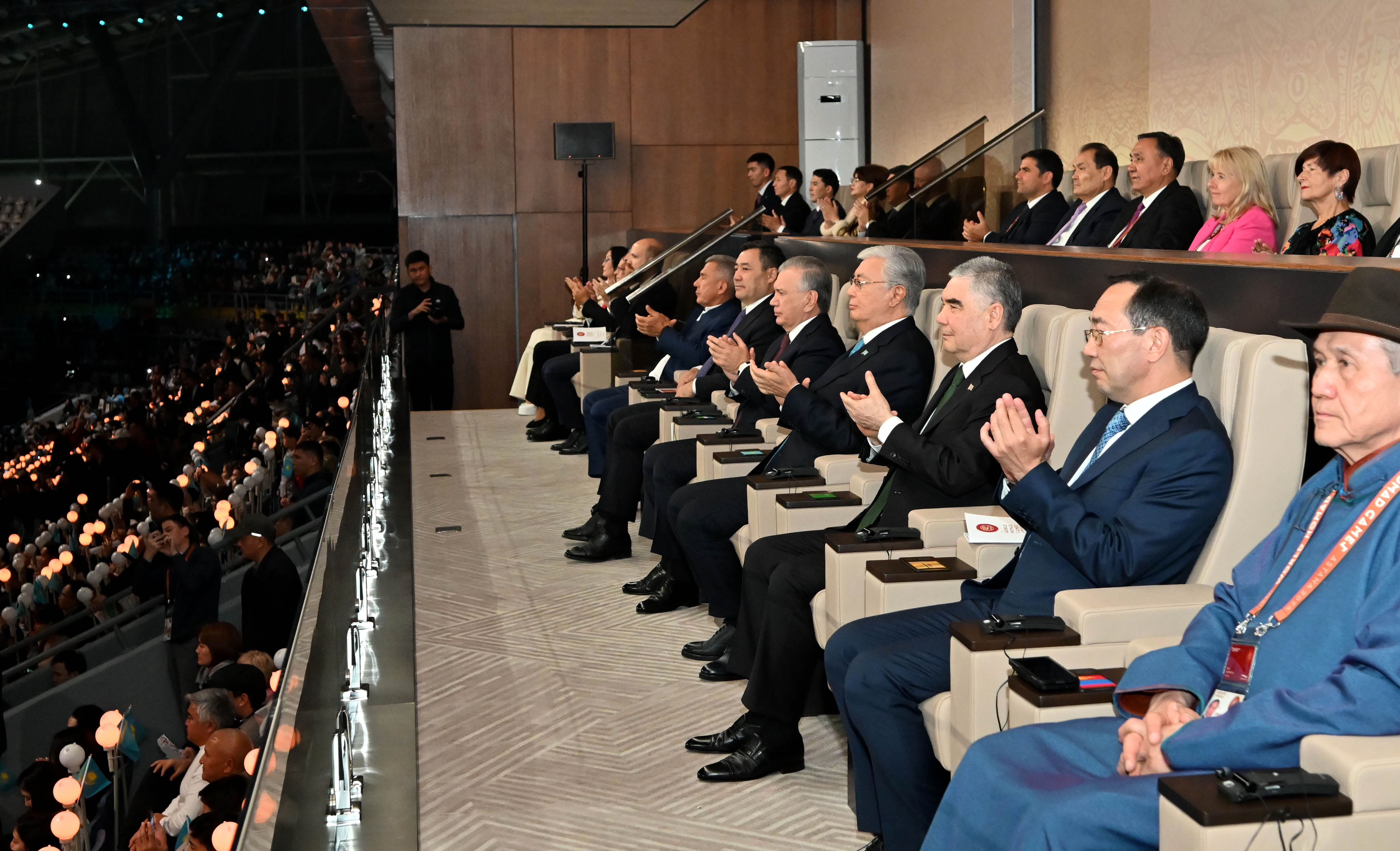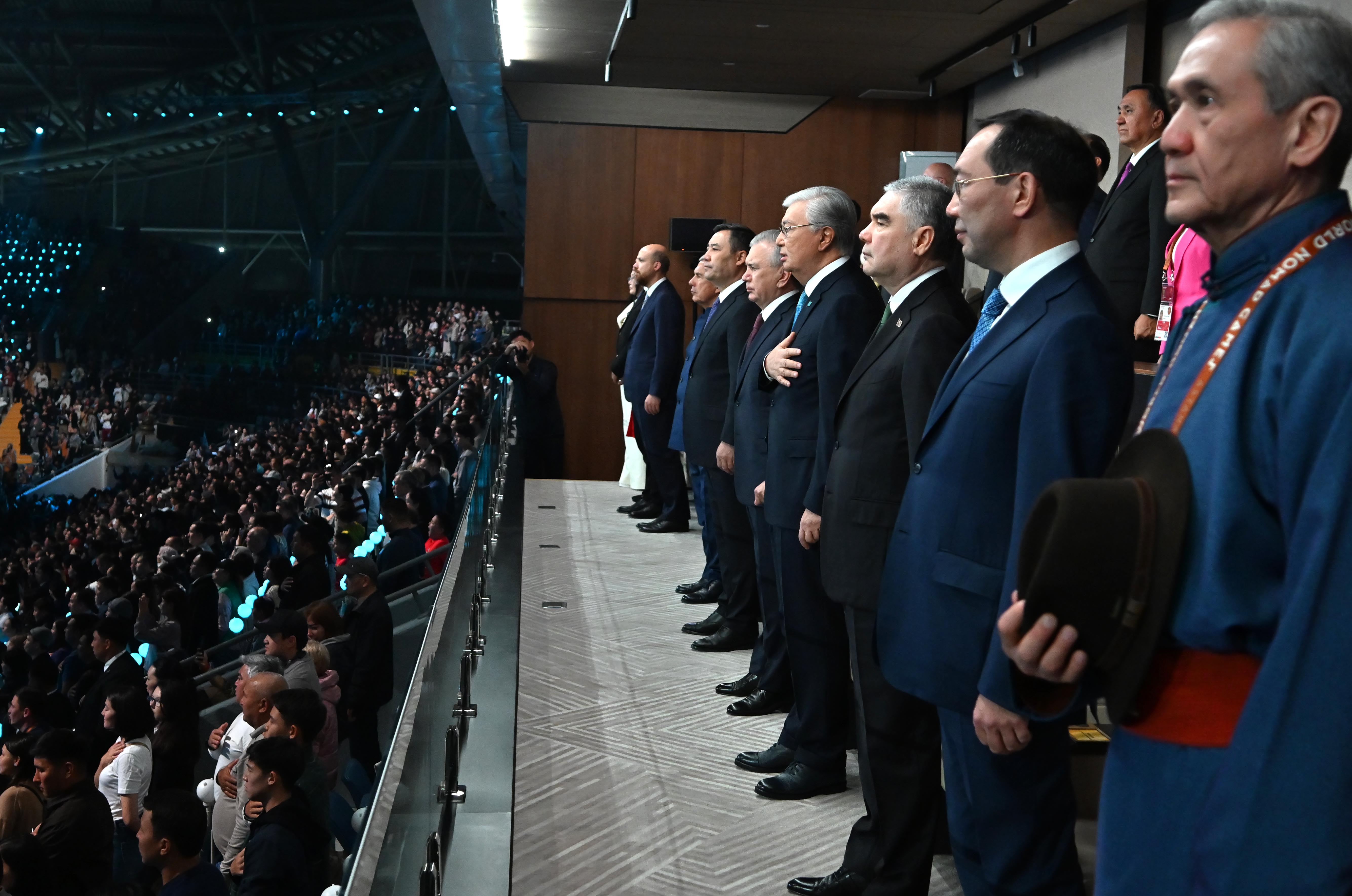 The event at the Astana Arena stadium was attended by President of Uzbekistan Shavkat Mirziyoyev, President of Kyrgyzstan Sadyr Zhaparov, Chairman of the Halk Maslahaty of Turkmenistan Gurbanguly Berdimuhamedov, Rais (Head) of the Republic of Tatarstan Rustam Minnikhanov, Head of the Republic of Sakha (Yakutia) Aisen Nikolayev, former President of Mongolia Nambaryn Enkhbayar, President of the World Ethnosport Confederation Bilal Erdoğan, heads of international structures such as UNESCO, CICA, UN World Tourism Organization, Organization of Turkic States, TURKSOY, Turkic Investment Fund, Parliamentary Assembly of Turkic States, Islamic Solidarity Sports Federation, Islamic Organization for Food Security, as well as the European Union Special Representative for Central Asia and other officials.