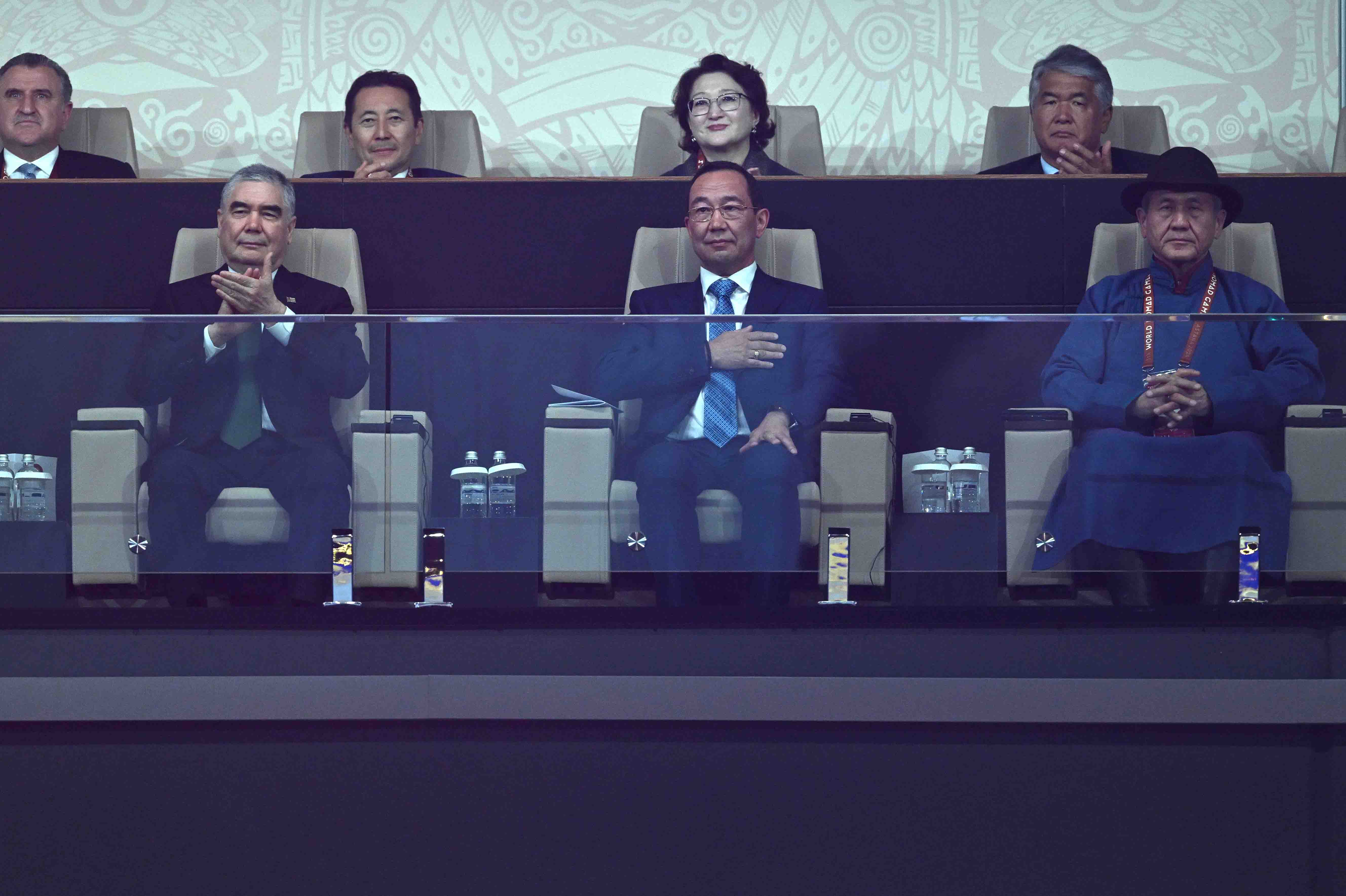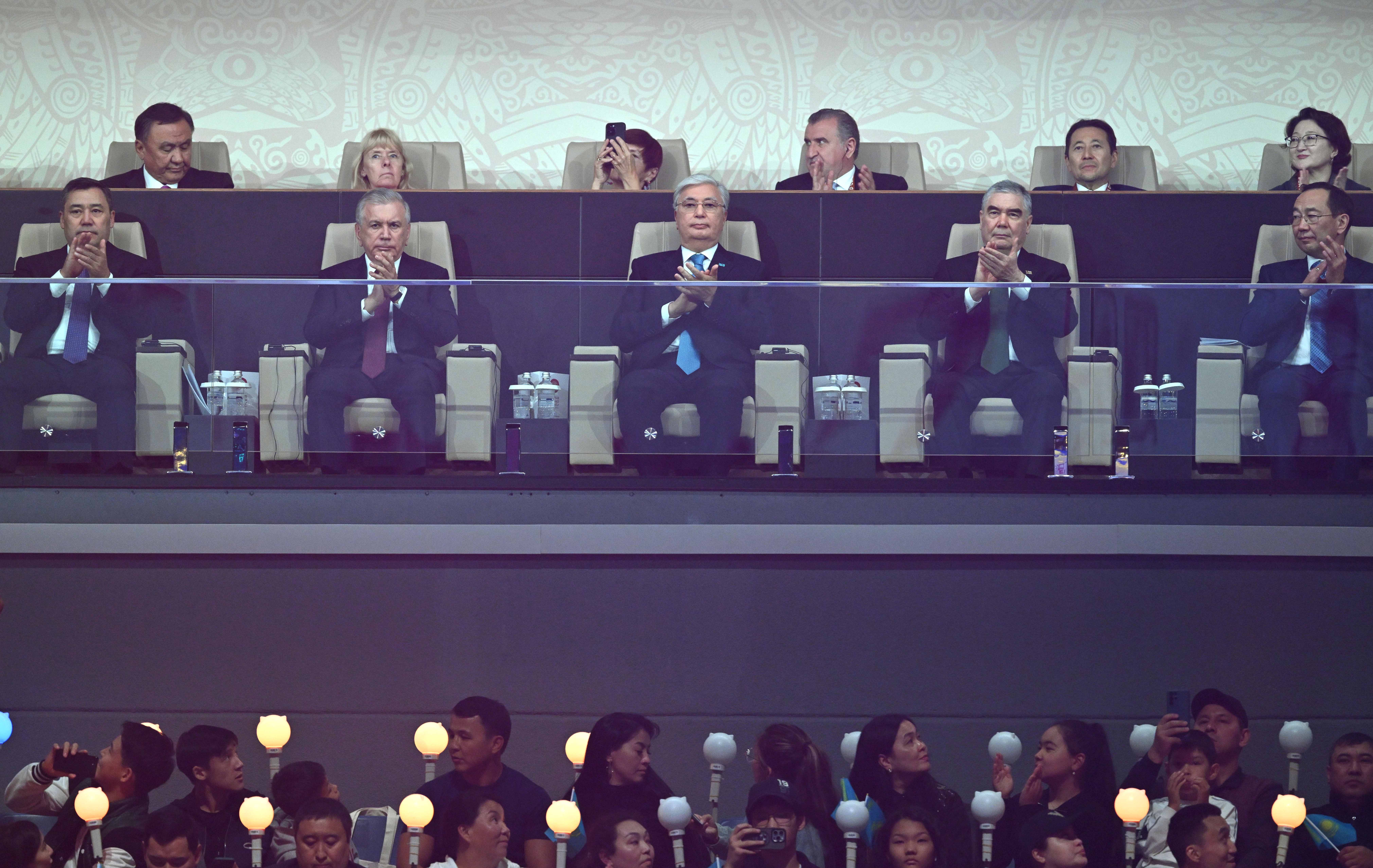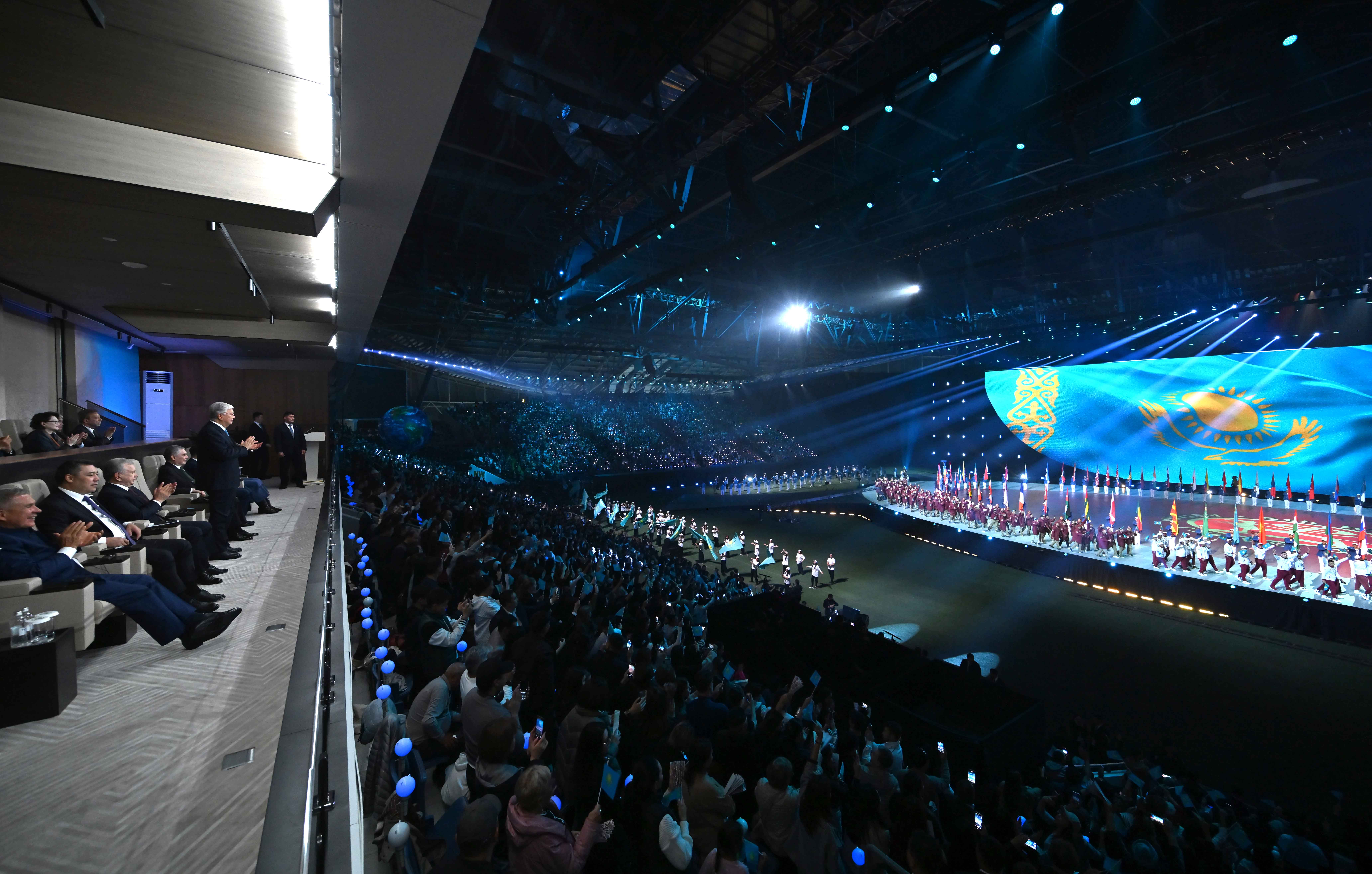 The event at the Astana Arena stadium was attended by President of Uzbekistan Shavkat Mirziyoyev, President of Kyrgyzstan Sadyr Zhaparov, Chairman of the Halk Maslahaty of Turkmenistan Gurbanguly Berdimuhamedov, Rais (Head) of the Republic of Tatarstan Rustam Minnikhanov, Head of the Republic of Sakha (Yakutia) Aisen Nikolayev, former President of Mongolia Nambaryn Enkhbayar, President of the World Ethnosport Confederation Bilal Erdoğan, heads of international structures such as UNESCO, CICA, UN World Tourism Organization, Organization of Turkic States, TURKSOY, Turkic Investment Fund, Parliamentary Assembly of Turkic States, Islamic Solidarity Sports Federation, Islamic Organization for Food Security, as well as the European Union Special Representative for Central Asia and other officials.
