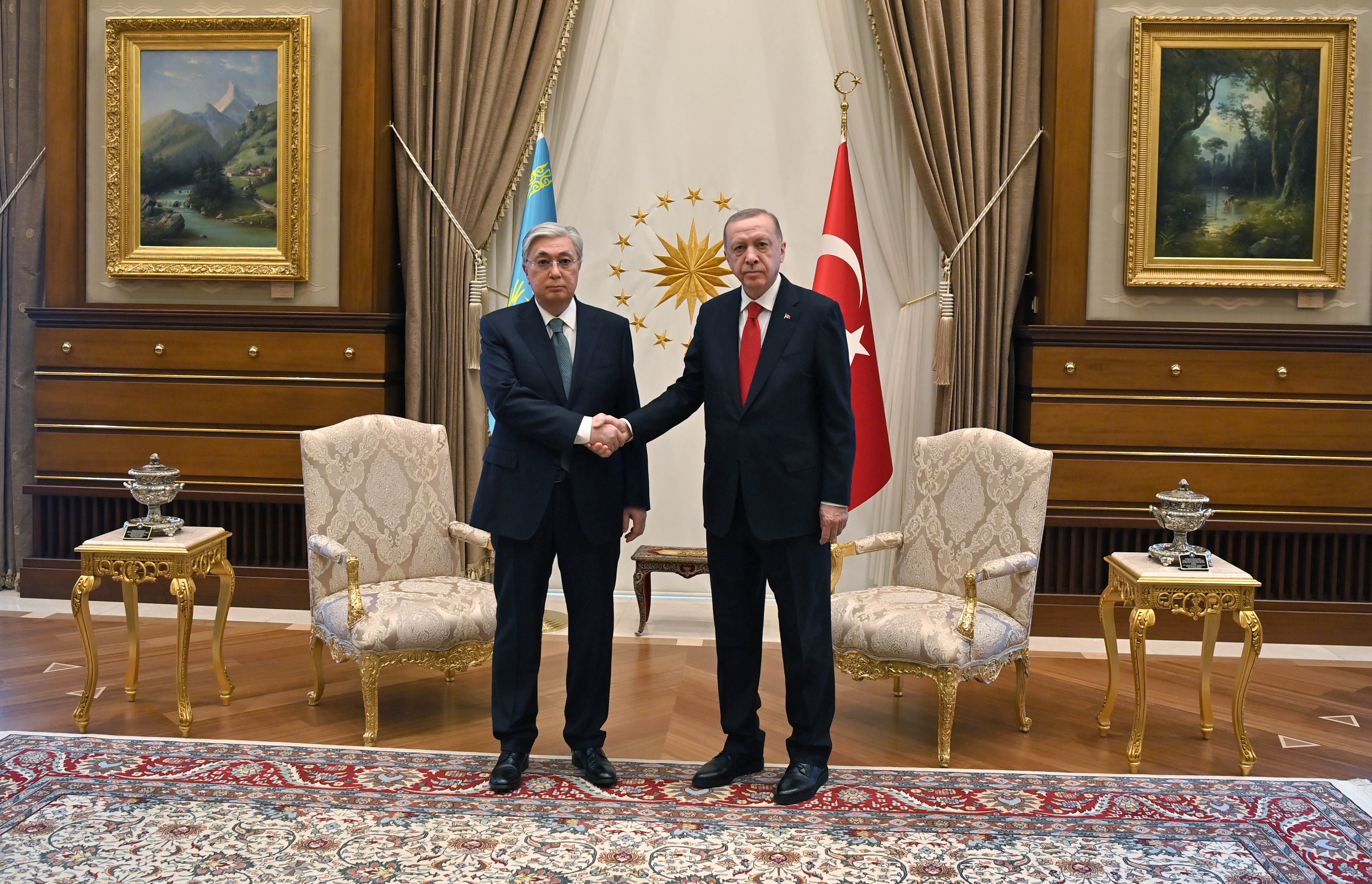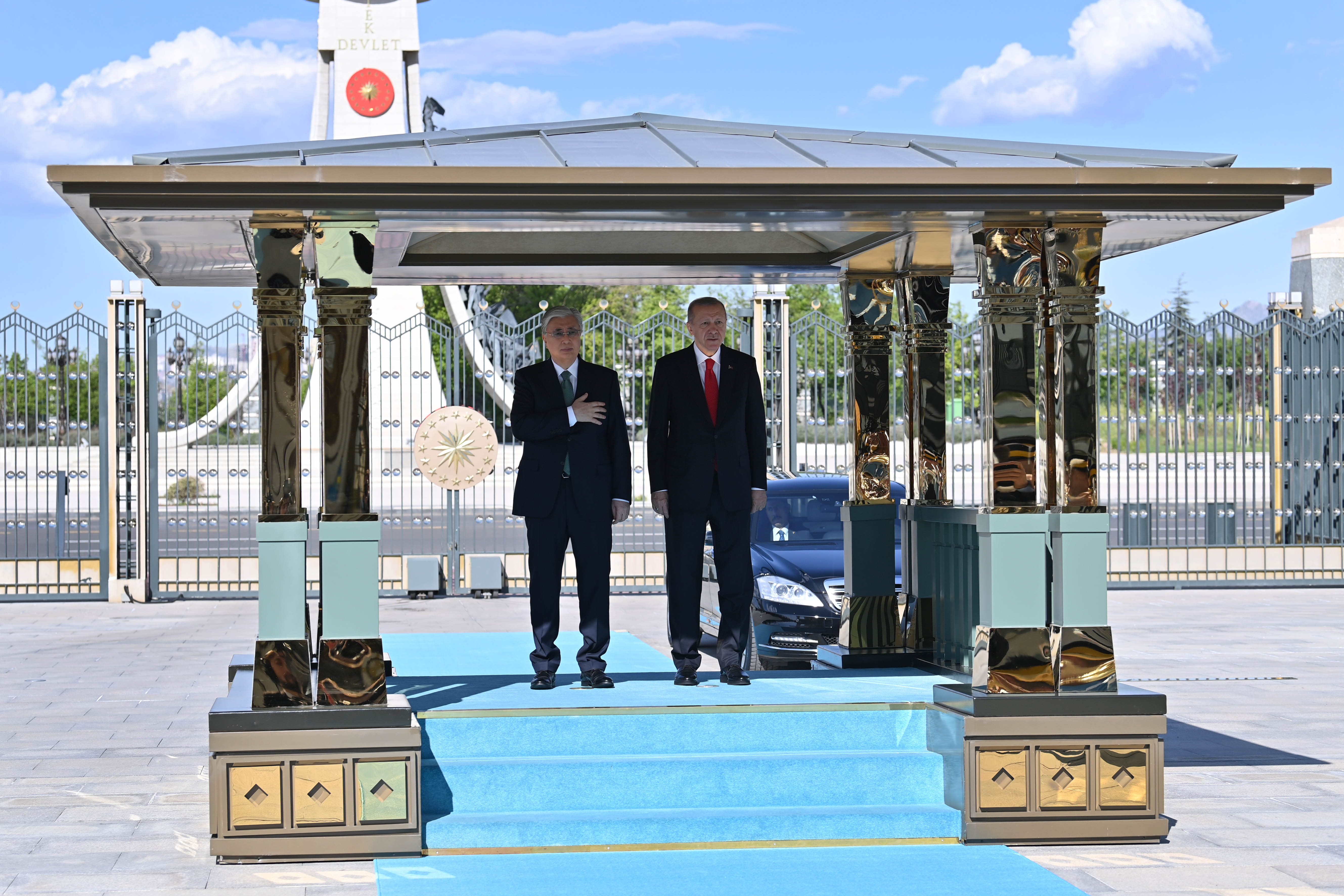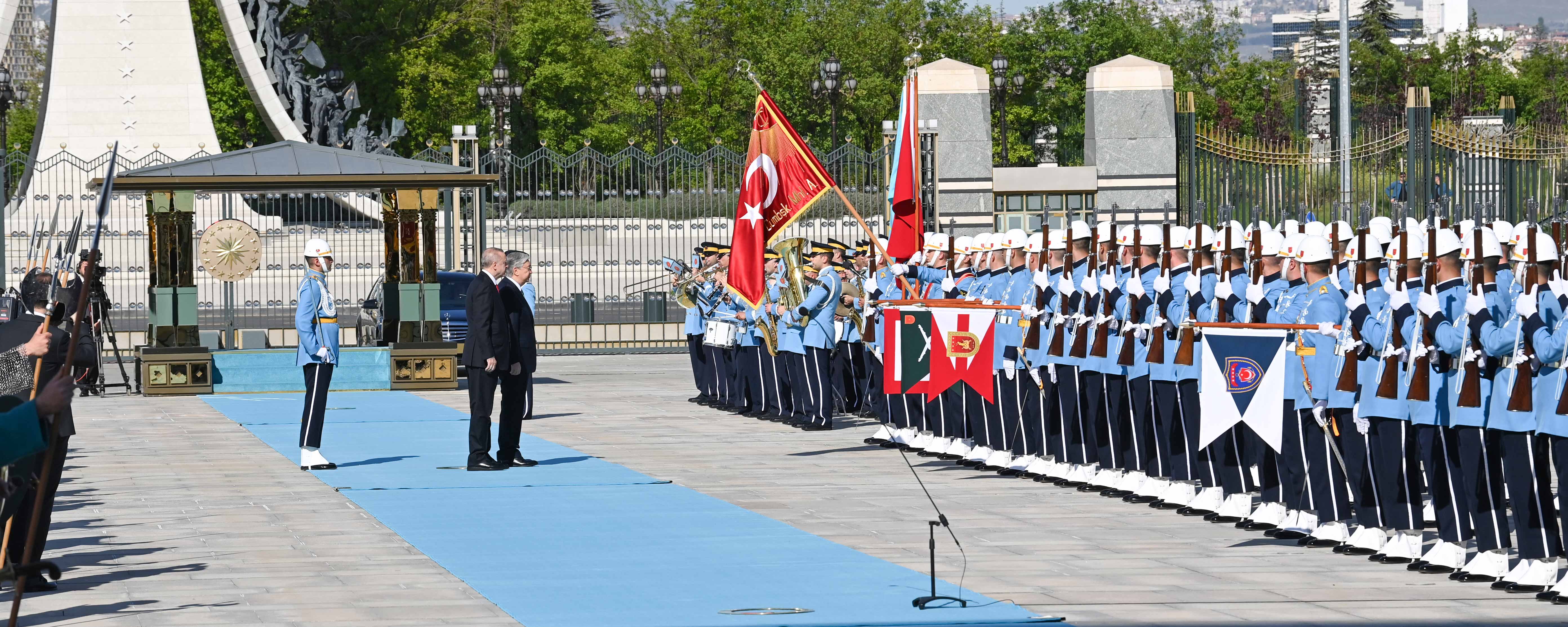The negotiations were preceded by an official welcoming ceremony at the Presidential Complex. The head of the Guard of Honor gave a report to the leaders of the two countries. After the national anthems of Kazakhstan and Türkiye were played, Kassym-Jomart Tokayev and Recep Tayyip Erdogan introduced members of official delegations to each other. Following the ceremony, the two presidents held bilateral negotiations in a narrow format.
