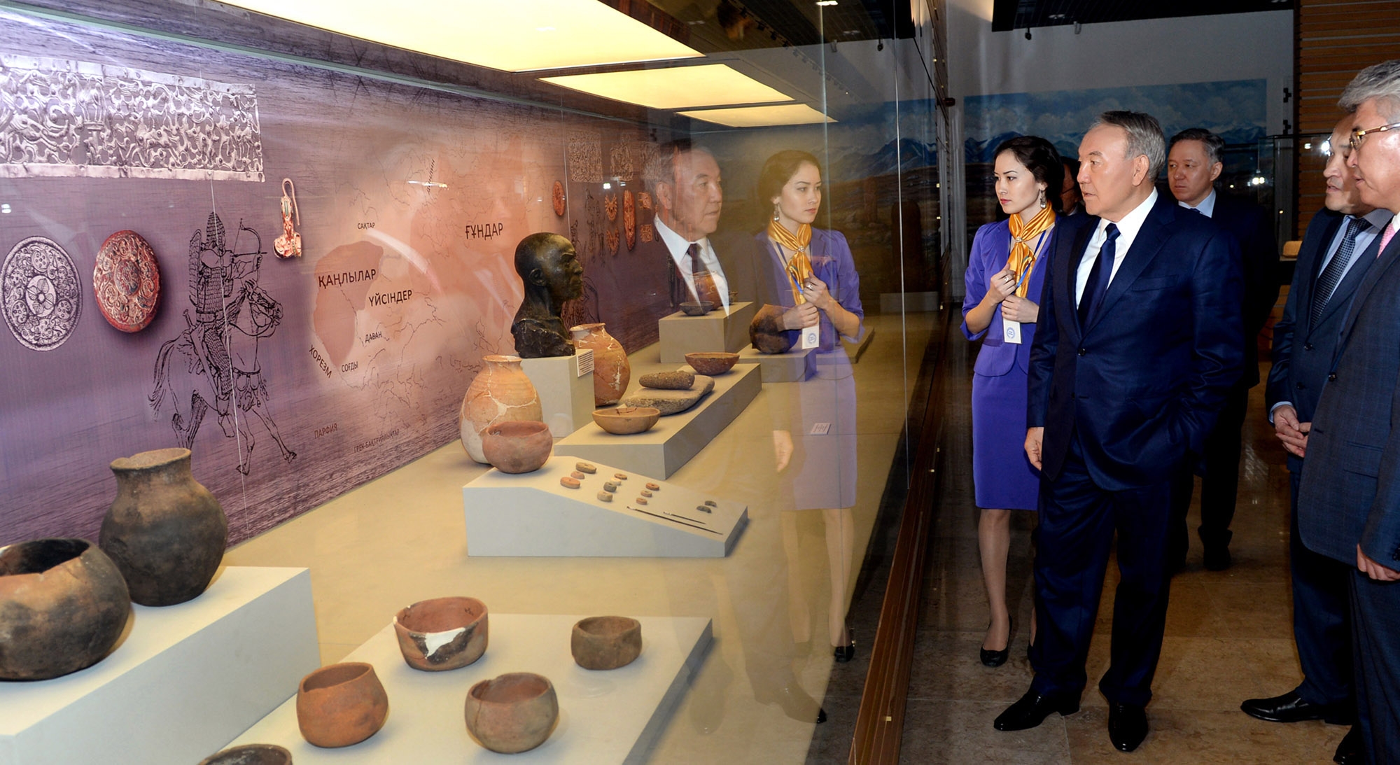 Нұрсұлтан Назарбаев сондай-ақ Қазақстанның ежелгі заманнан бүгінге дейінгі археологиялық, этнографиялық, тарихи-мәдени ескерткіштері қойылған экспозициялық залдарды аралап көрді.