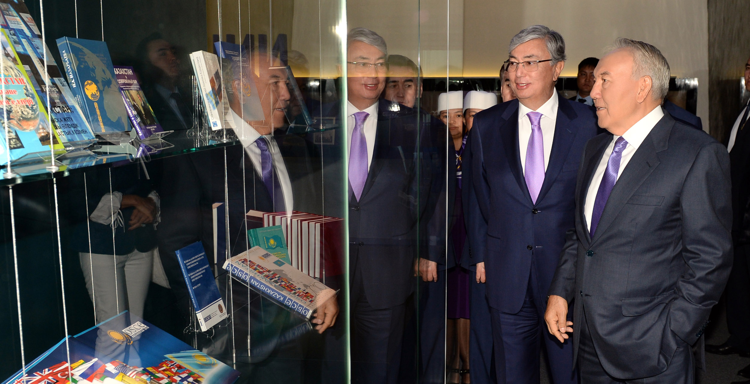 Мемлекет басшысы жаңа ғимаратты аралап көрді, сондай-ақ «Назарбаев орталығы» көпфункциялы ғылыми-талдау және гуманитарлық-ағарту мемлекеттік мекемесінің базасында құрылған Тұңғыш Президент кітапханасының жұмысымен танысты.