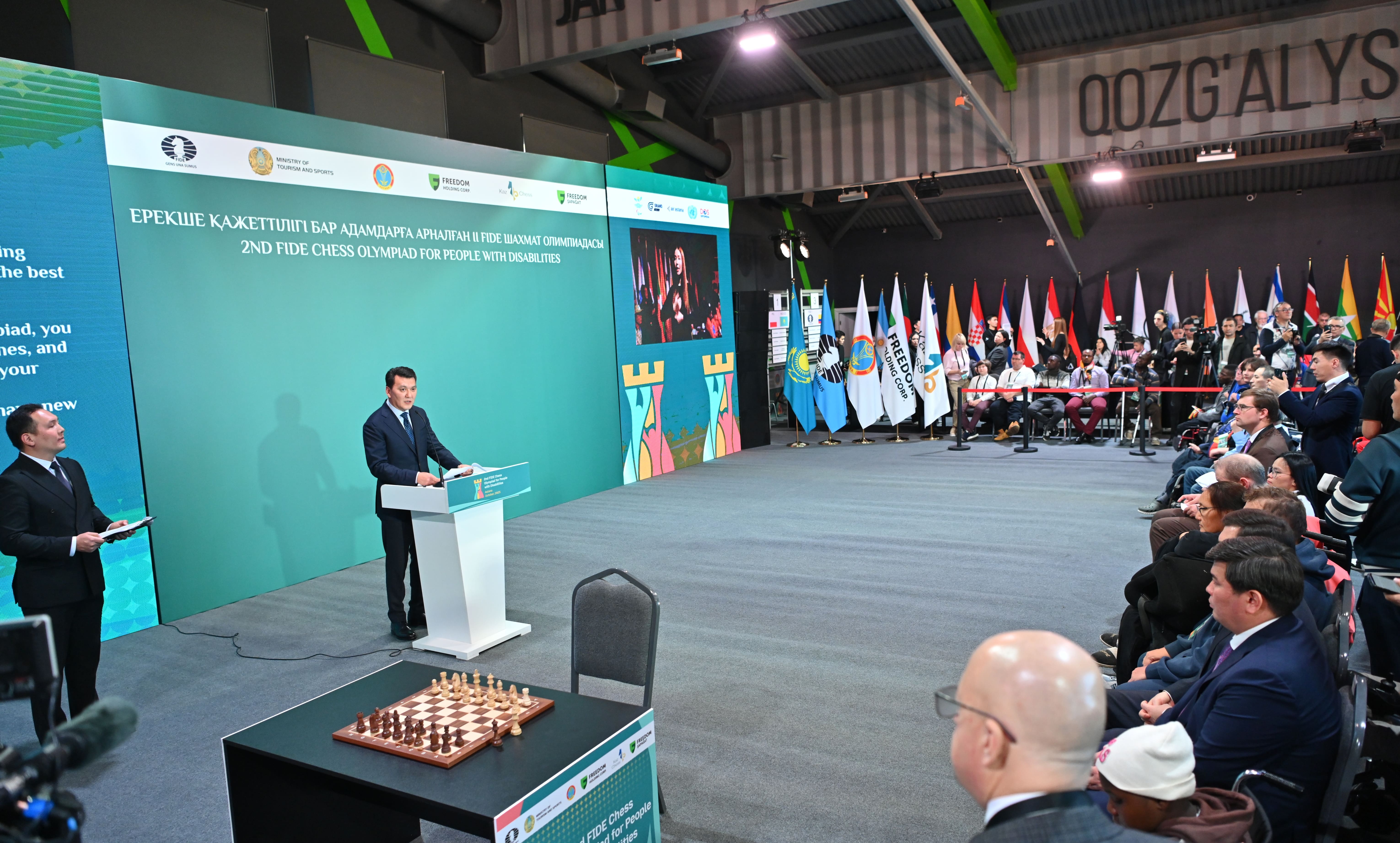 Мемлекеттік кеңесші Ерлан Қарин ФИДЕ-нің мүмкіндігі шектеулі жандар арасындағы шахматтан екінші олимпиадасының ашылу рәсіміне қатысты. Сондай-ақ олимпиаданың ашылуында Халықаралық шахмат федерациясының президенті Аркадий Дворкович пен Қазақстан шахмат федерациясының президенті Тимур Турлов болды. Мемлекеттік кеңесші Президент Қасым-Жомарт Тоқаевтың олимпиада қатысушыларына арнаған құттықтау сөзін оқып берді. Мемлекет басшысының сөзінде еліміздің инклюзивтілік қағидаты негізінде шахматты жан-жақты дамытуға белсенді үлес қосып жатқаны айтылған. Аталған олимпиада мемлекетіміздің шахматқа айрықша көңіл бөлетінін білдіріп қана қоймай, сондай-ақ Әділетті Қазақстан тұжырымдамасына сай баршаға тең мүмкіндіктер ұсыну қағидатын ілгерілетуге бейіл екенін көрсетеді. Ерлан Қарин өз сөзінде мемлекеттің жүргізіп отырған әлеуметтік саясатында азаматтардың барлығына тең жағдай жасауға баса мән берілетінін жеткізді. Мүмкіндігі шектеулі және ерекше білім алу қажеттілігі бар адамдар үшін жүйелі әрі кешенді шаралар қабылданып жатыр. Қазанның 20-26 күндері Астанада өтетін олимпиадада әлемнің 29 елінен 34 команда бақ сынайды.