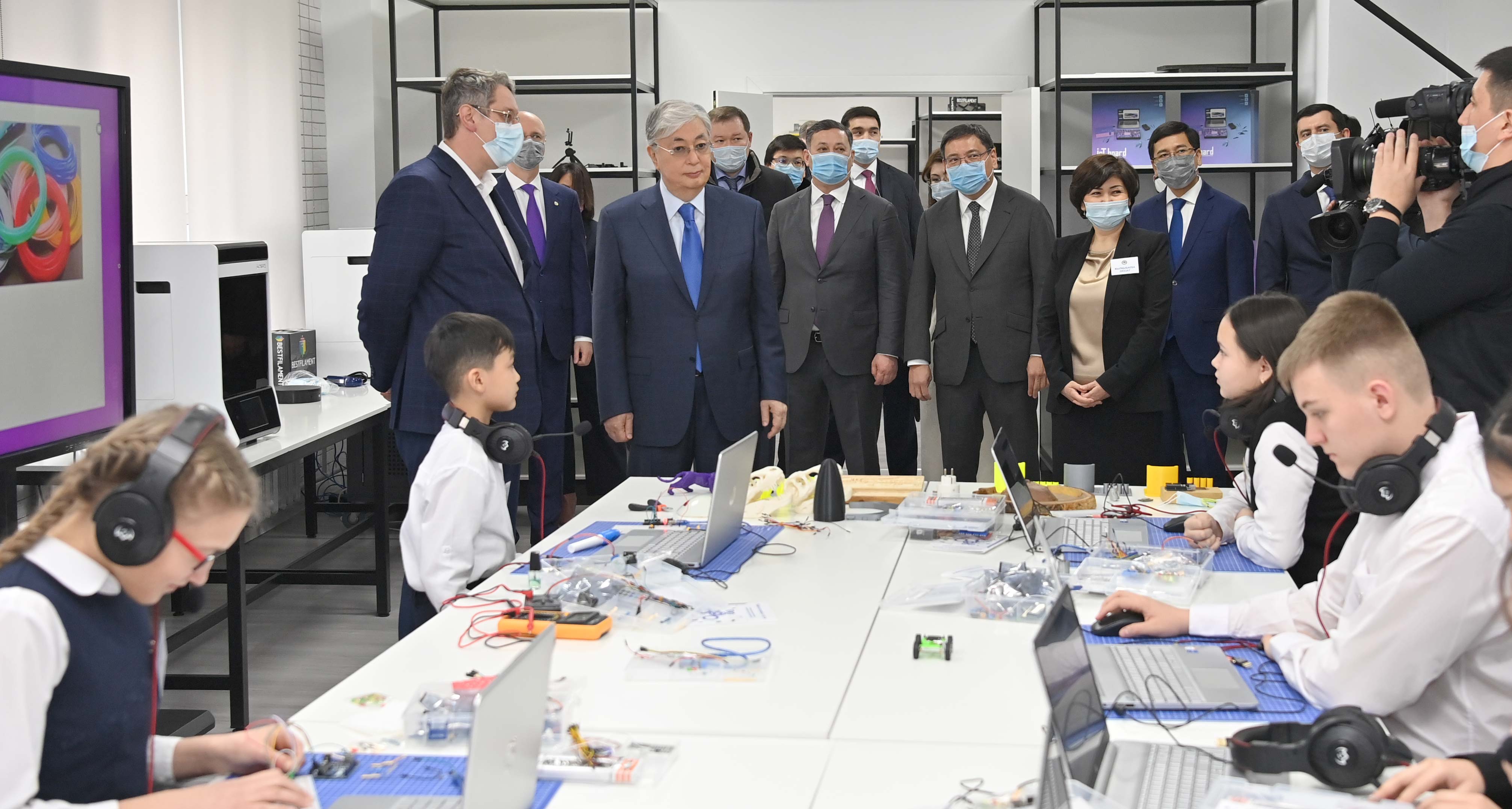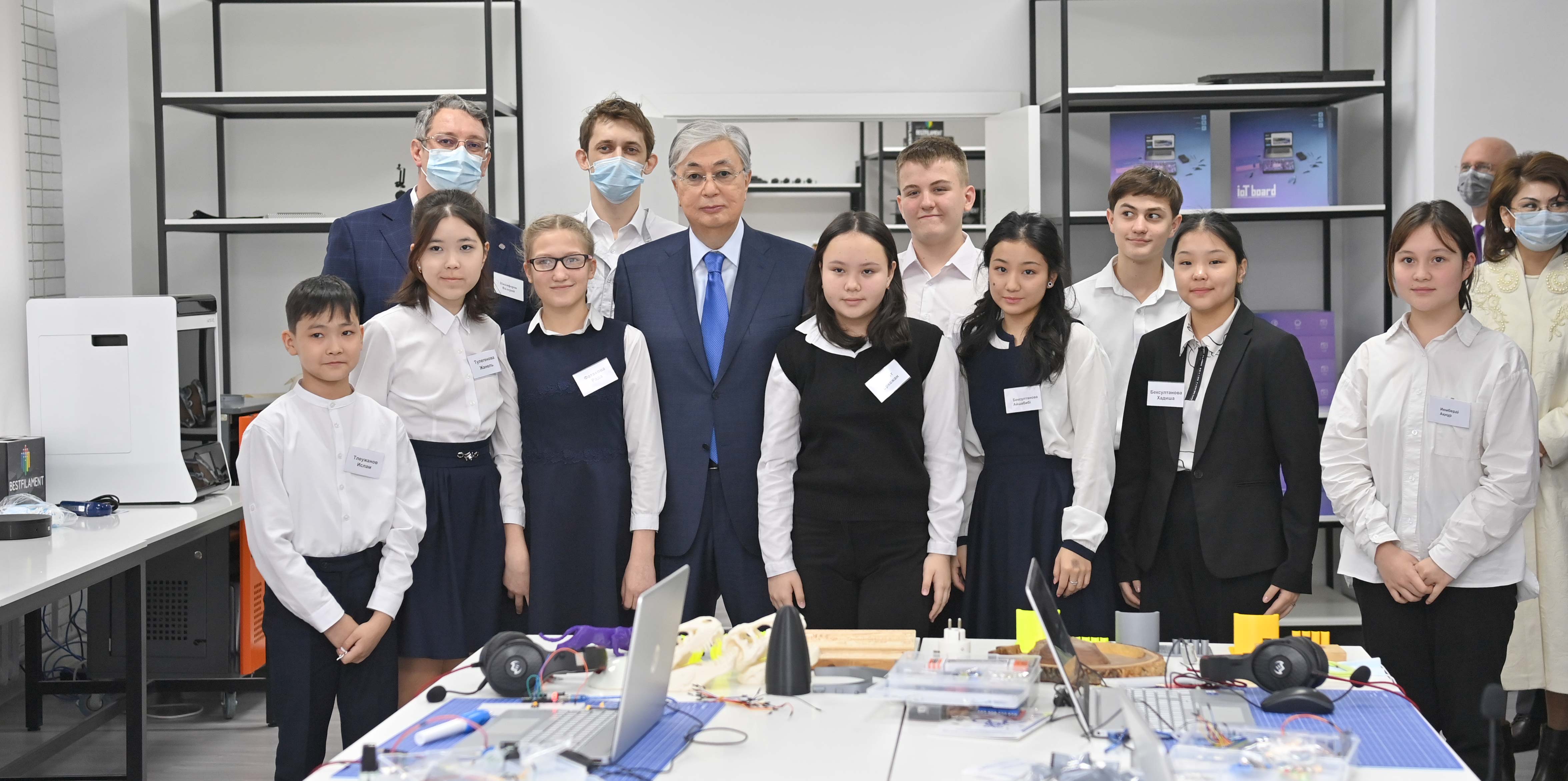 Мемлекет басшысы биология және нейротехнология, гидропоника, 3D модельдеу және робот жасау зертханаларын, сондай-ақ анимация, дыбыс жазу, білім беру медиажобаларына арналған студияны аралап көрді.