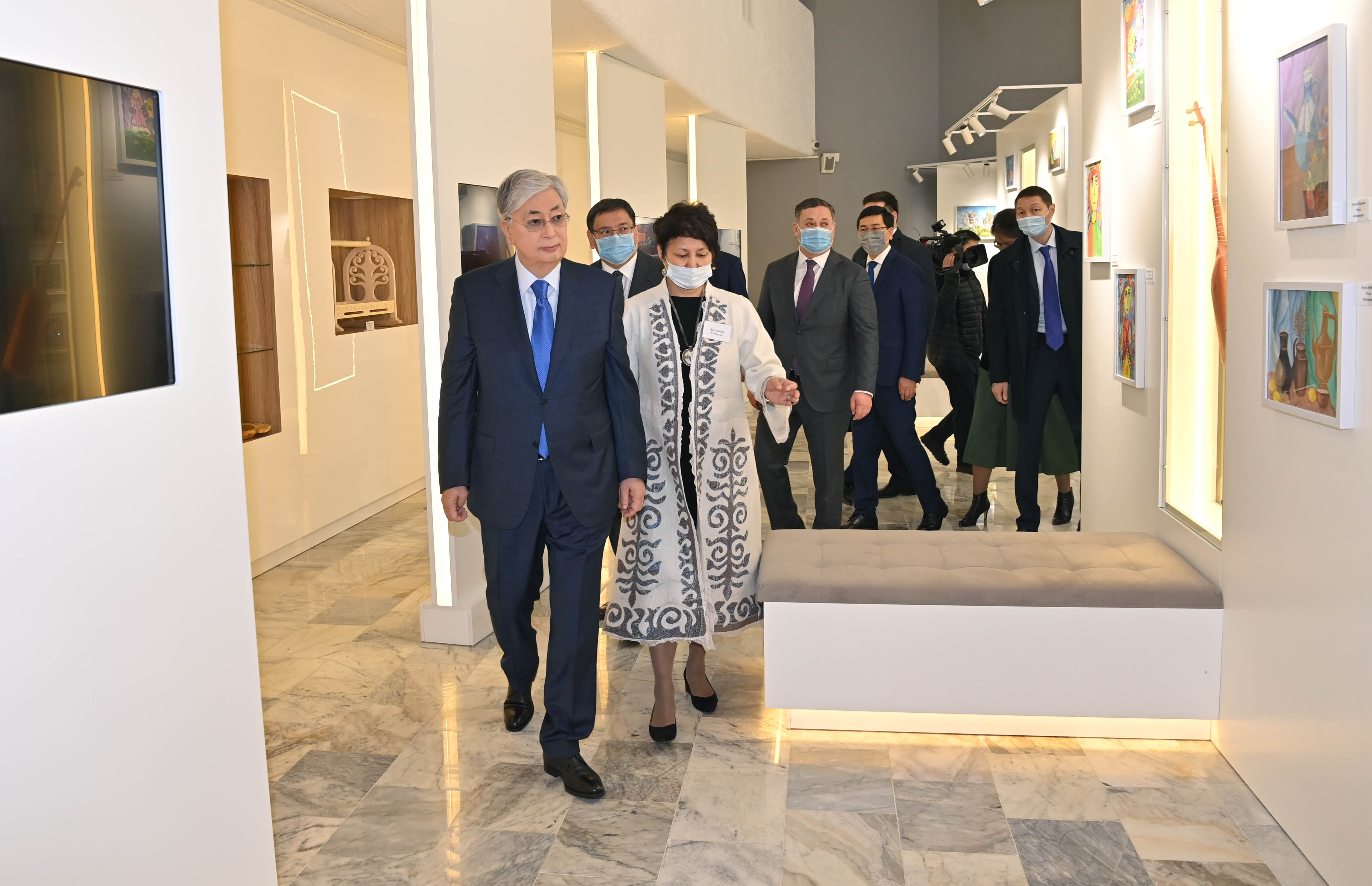 Содан кейін Қасым-Жомарт Тоқаев балалардың көркем шығармашылық жұмыстарының көрмесімен және Сарайдың жаңа инновациялық қызметімен танысты.