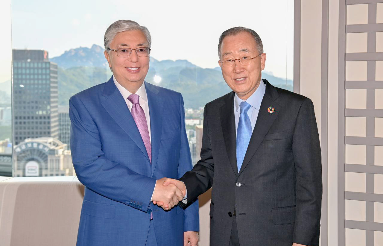 Қазақстан Президенті Корея Республикасына жасаған мемлекеттік сапарын Жаһандық жасыл даму институты (GGGI) Ассамблеясының төрағасы, БҰҰ-ның бұрынғы Бас хатшысы Пан Ги Мунмен кездесумен түйіндеді. Тараптар жаһандық климаттың өзгеруі, экономиканы көміртегінен ада ету, «жасыл технологияларды» енгізу мәселелерін талқылады. Сонымен қатар Қасым-Жомарт Тоқаев пен Пан Ги Мун халықаралық күн тәртібіндегі мәселелер мен заманауи сын-қатерлер туралы пікір алмасты. Пандемияға қарсы күресті күшейтуге және Ауған мәселесін реттеудің перспективаларына ерекше назар аударылды.