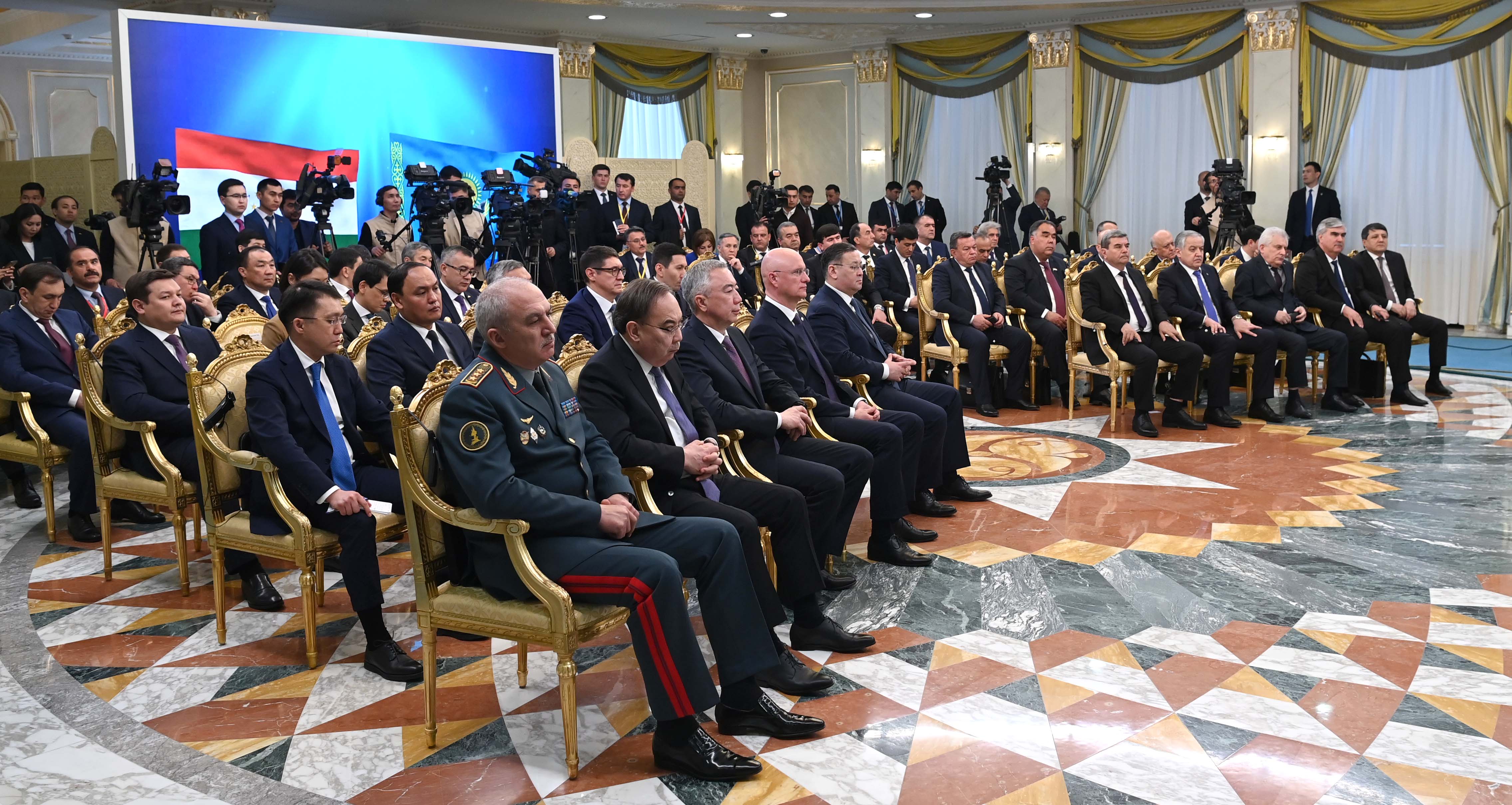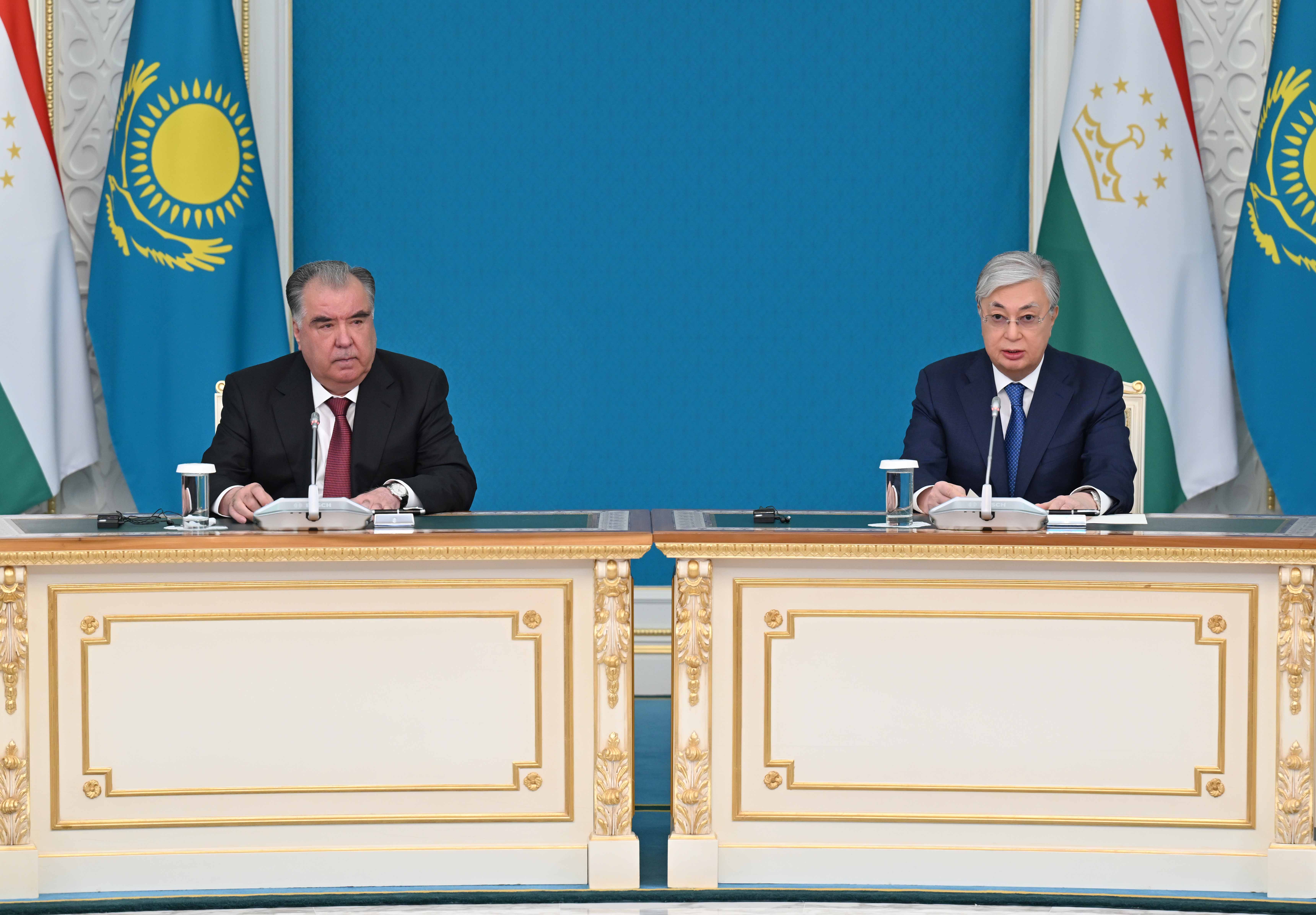 – Сіздің сапарыңыз мемлекеттеріміз арасындағы дипломатиялық қатынастардың 30 жылдығында өтіп отыр. Мұның символдық мәні бар. Осы жылдар аралығында қазақ-тәжік ынтымақтастығы ғасырлар бойғы достық пен стратегиялық серіктестік рухында тұрақты дами отырып, айтарлықтай жоғары деңгейге жетті. Екі ел үкіметтерінің сенімді саяси диалогы мен үйлесімді жұмысының нәтижесінде қарым-қатынастардың мазмұны үнемі жаңарып келеді. Бүгін қол қойылған Одақтастық өзара іс-қимыл туралы декларация – мұның айқын дәлелі. Бұл құжат халықтарымыздың түбегейлі мүдделеріне толық сай келеді және ынтымақтастығымызды одан әрі нығайтуға деген өзара ұмтылысының белгісі. Декларацияда саяси, сауда-экономикалық және мәдени-гуманитарлық байланыстарды жандандыруға бағытталған нақты шаралар қамтылған, – деді Мемлекет басшысы.