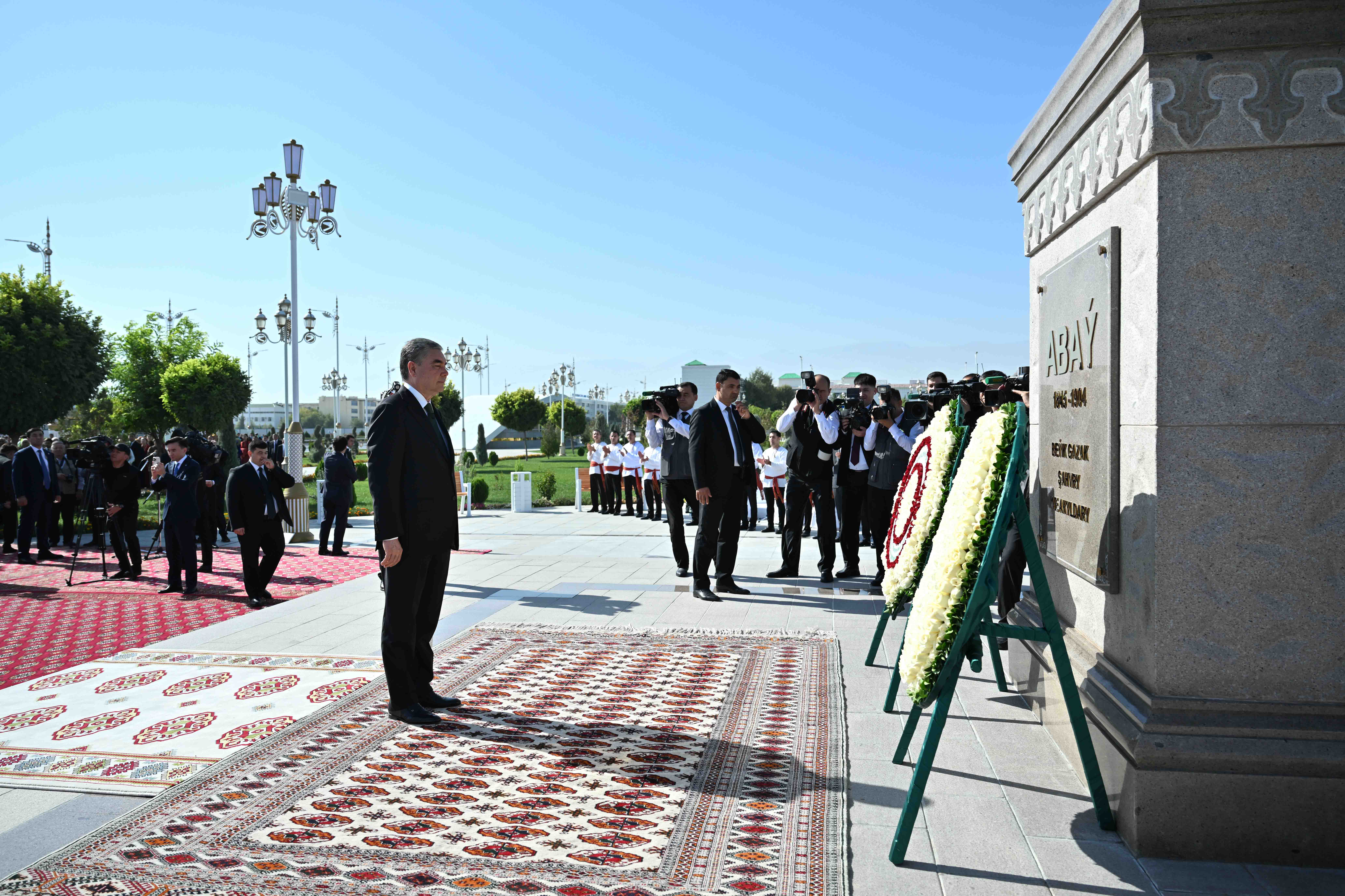 Қазақстан Президенті мен Түрікменстан Халк Маслахатының төрағасы Ашхабад төрінде ұлтымыздың ұлы ойшылы Абай Құнанбайұлына арналған ескерткіштің ашылу рәсіміне қатысты.