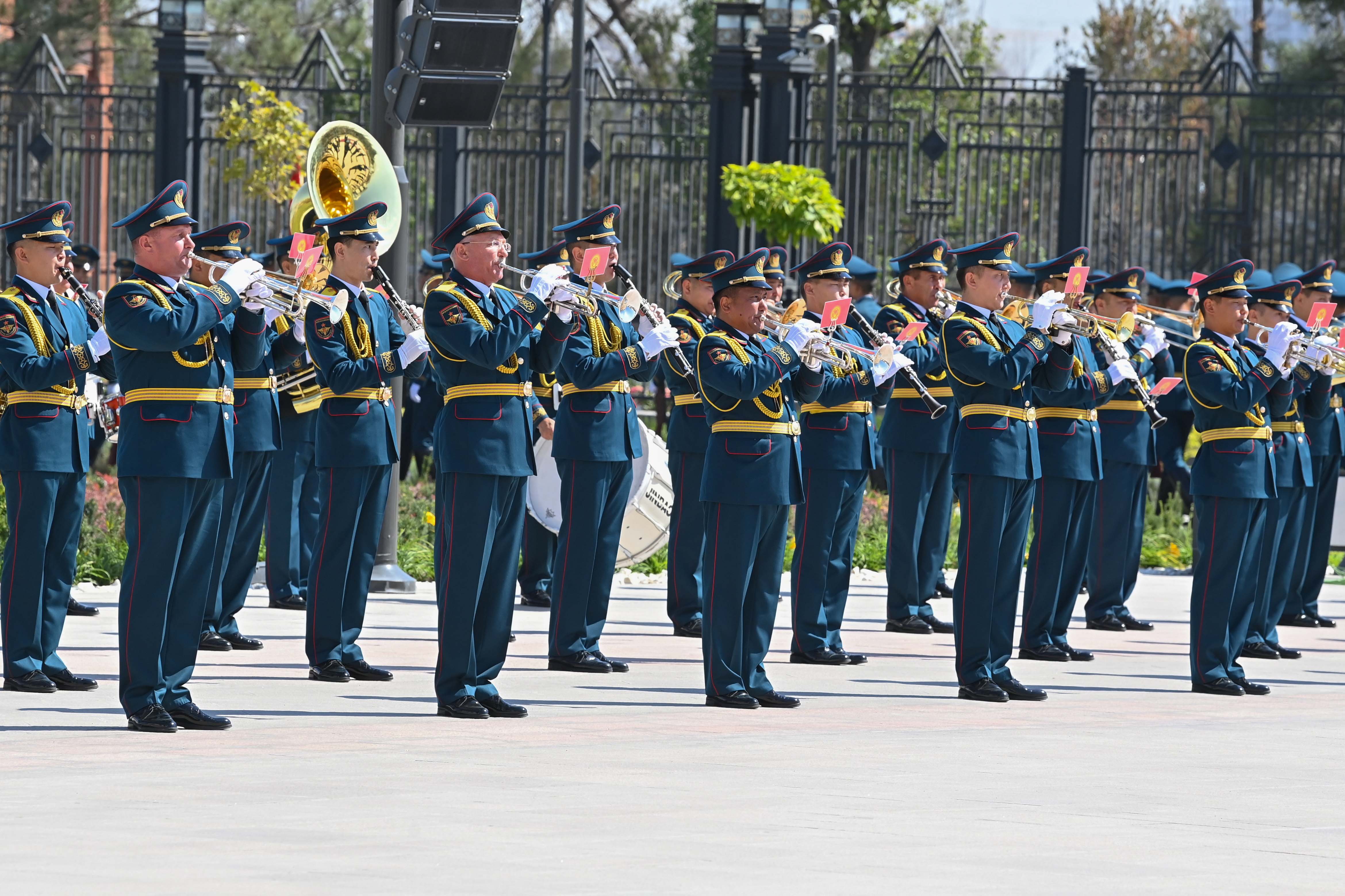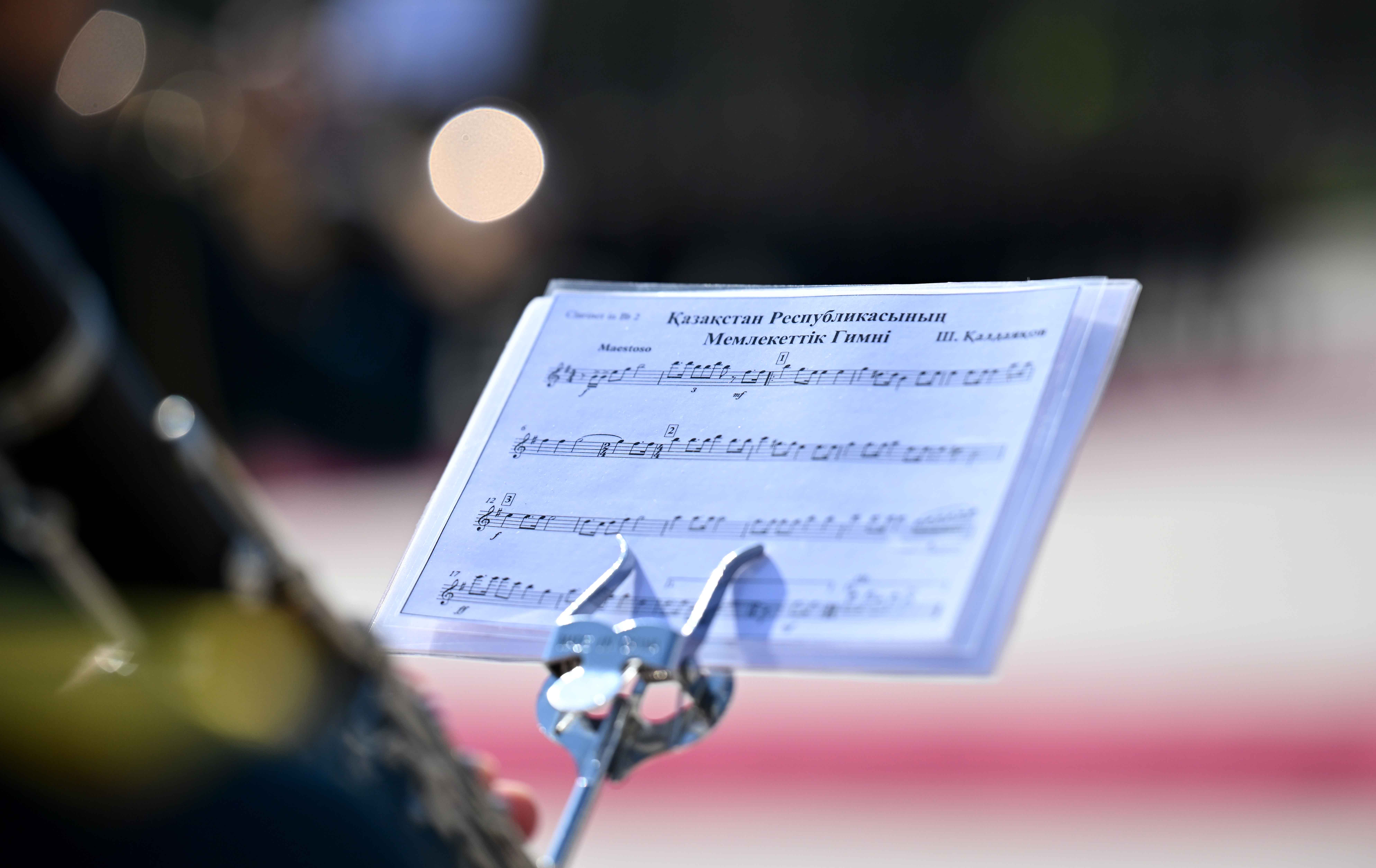 Президенттер бір бірімен амандасқаннан кейін екі елдің мемлекеттік әнұрандары шырқалды. Құрмет қарауылы ротасының бастығы рапорт берген соң, Қасым-Жомарт Тоқаев пен Садыр Жапаров сап түзеген сарбаздардың алдынан жүріп өтті.