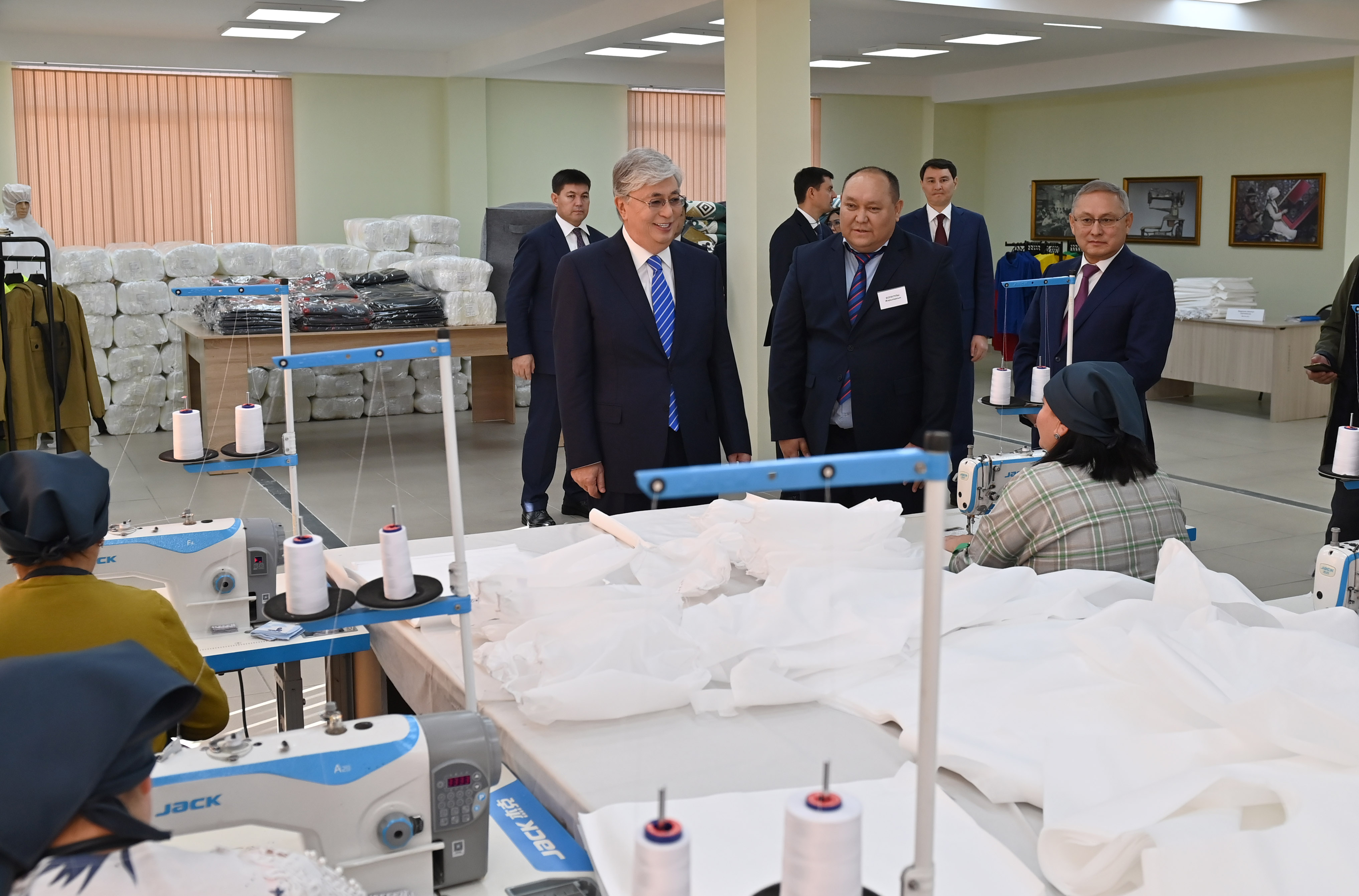 Мемлекет басшысы Талдықорған қаласында биыл маусым айында ашылған «Айсұлу» Жетісу тігін фабрикасы» ЖШС жұмысымен танысты.