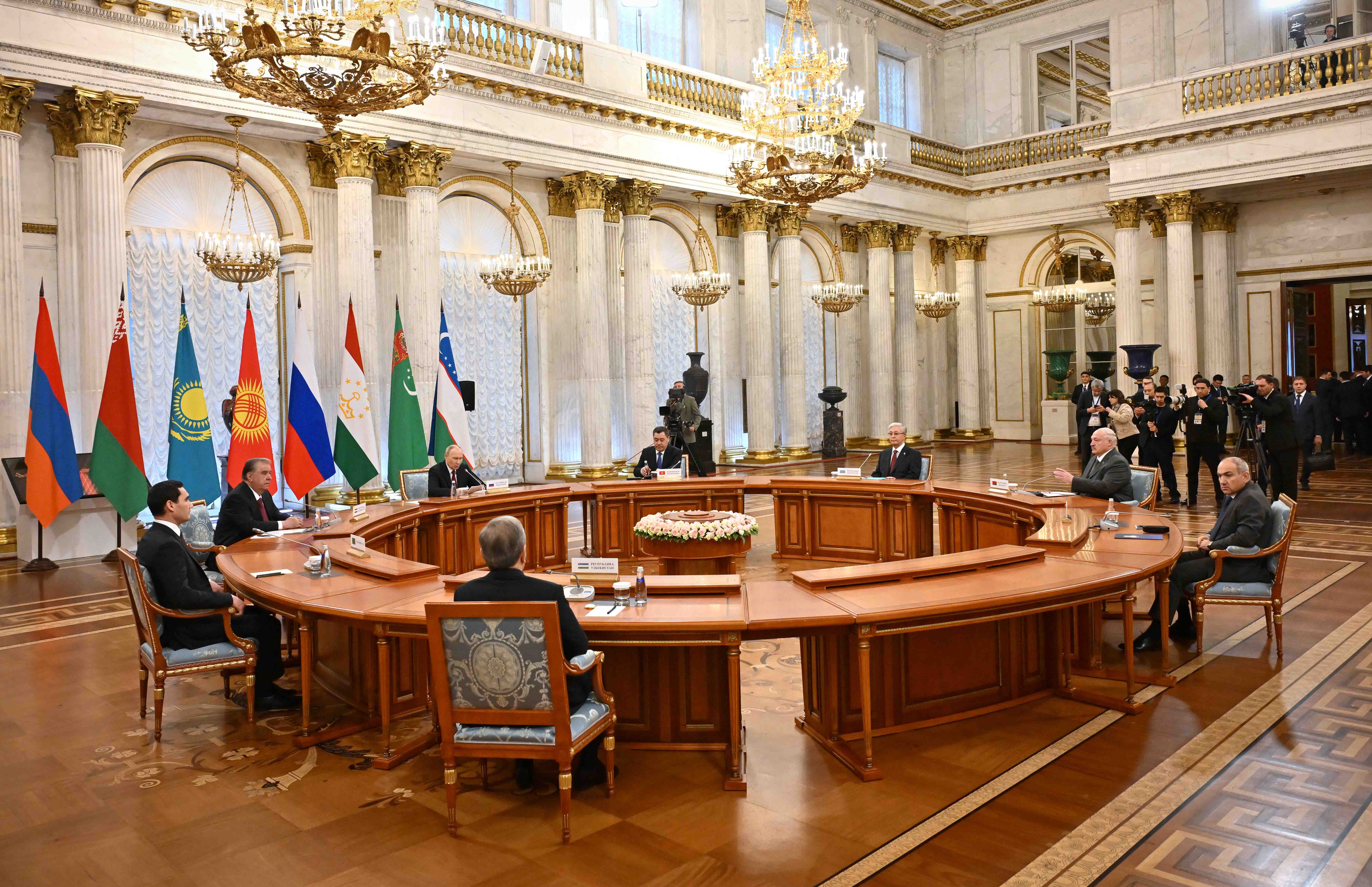 Ресей, Санкт-Петербург қаласы Тәуелсіз мемлекеттер достастығына мүше елдер басшыларының кездесуіне Қазақстан Президенті Қасым-Жомарт Тоқаевпен бірге Ресей Президенті Владимир Путин, Армения Премьер-министрі Никол Пашинян, Беларусь Президенті Александр Лукашенко, Қырғызстан Президенті Садыр Жапаров, Тәжікстан Президенті Эмомали Рахмон, Түрікменстан Президенті Сердар Бердімұхамедов, Өзбекстан Президенті Шавкат Мирзиёев қатысты. ТМД басшылары өзара ынтымақтастықтың негізгі даму бағдары мен қадамдарын талқылады. Сондай-ақ Ұйым аясындағы ықпалдастықтың өзекті мәселелері жөнінде пікір алмасты.