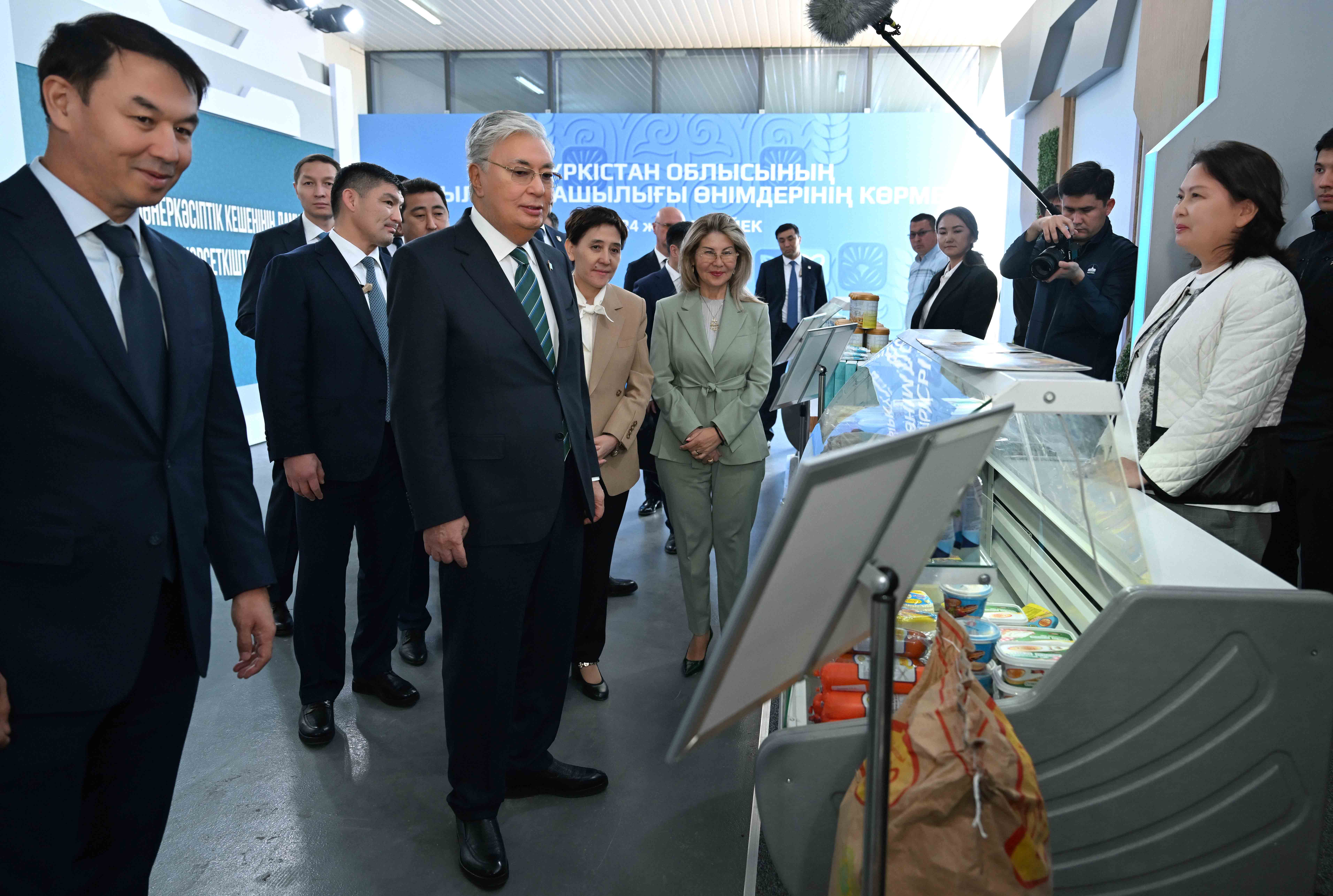 Қасым-Жомарт Тоқаев Түркістан облысындағы ауыл шаруашылығы өнімдерінің көрмесін аралады