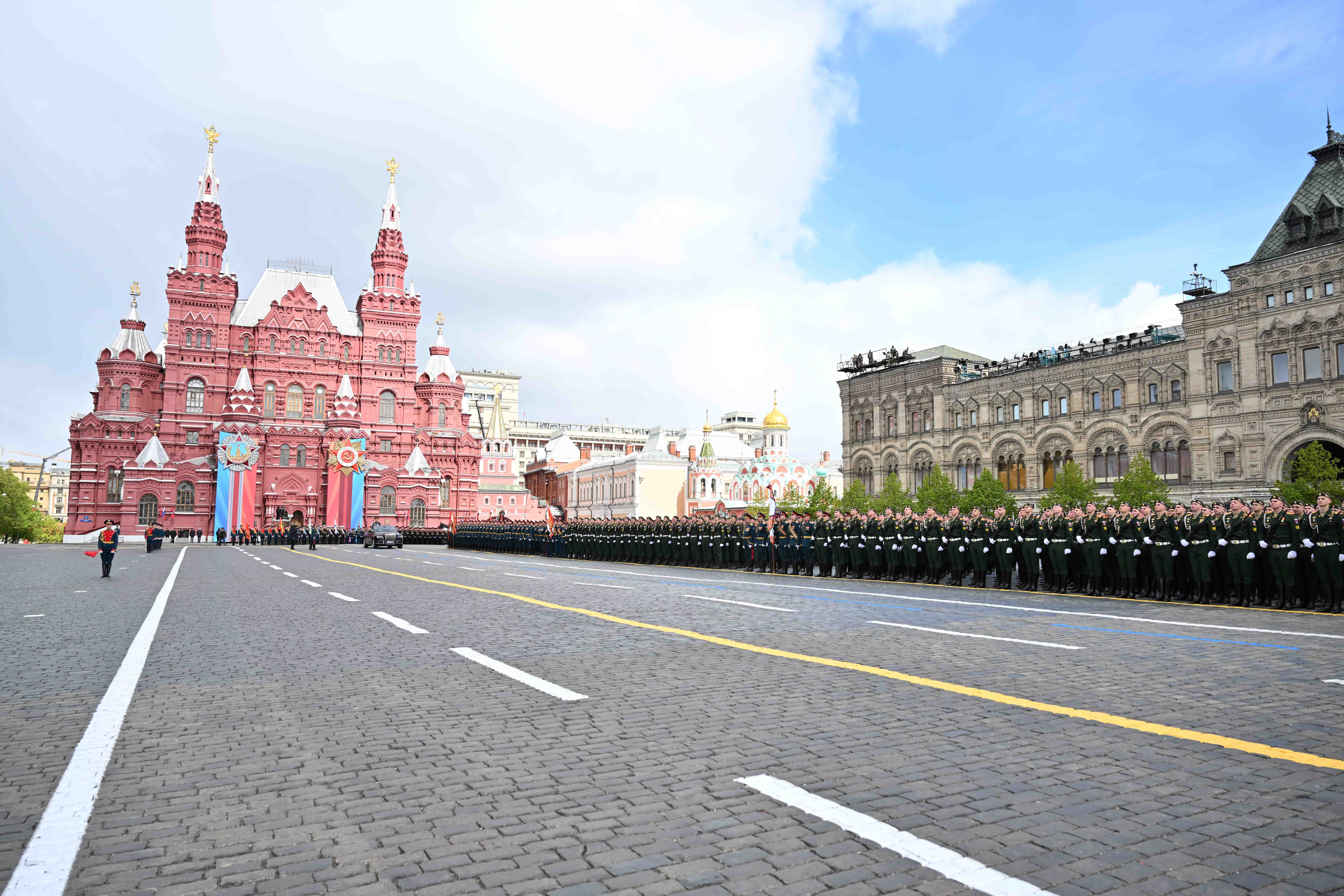 Мемлекет басшысы Жеңістің 79 жылдығына орай Мәскеудегі Қызыл алаңда өткен әскери парадқа барды. Сондай-ақ Белгісіз жауынгердің бейітіне гүл шоғын қою рәсіміне қатысты.