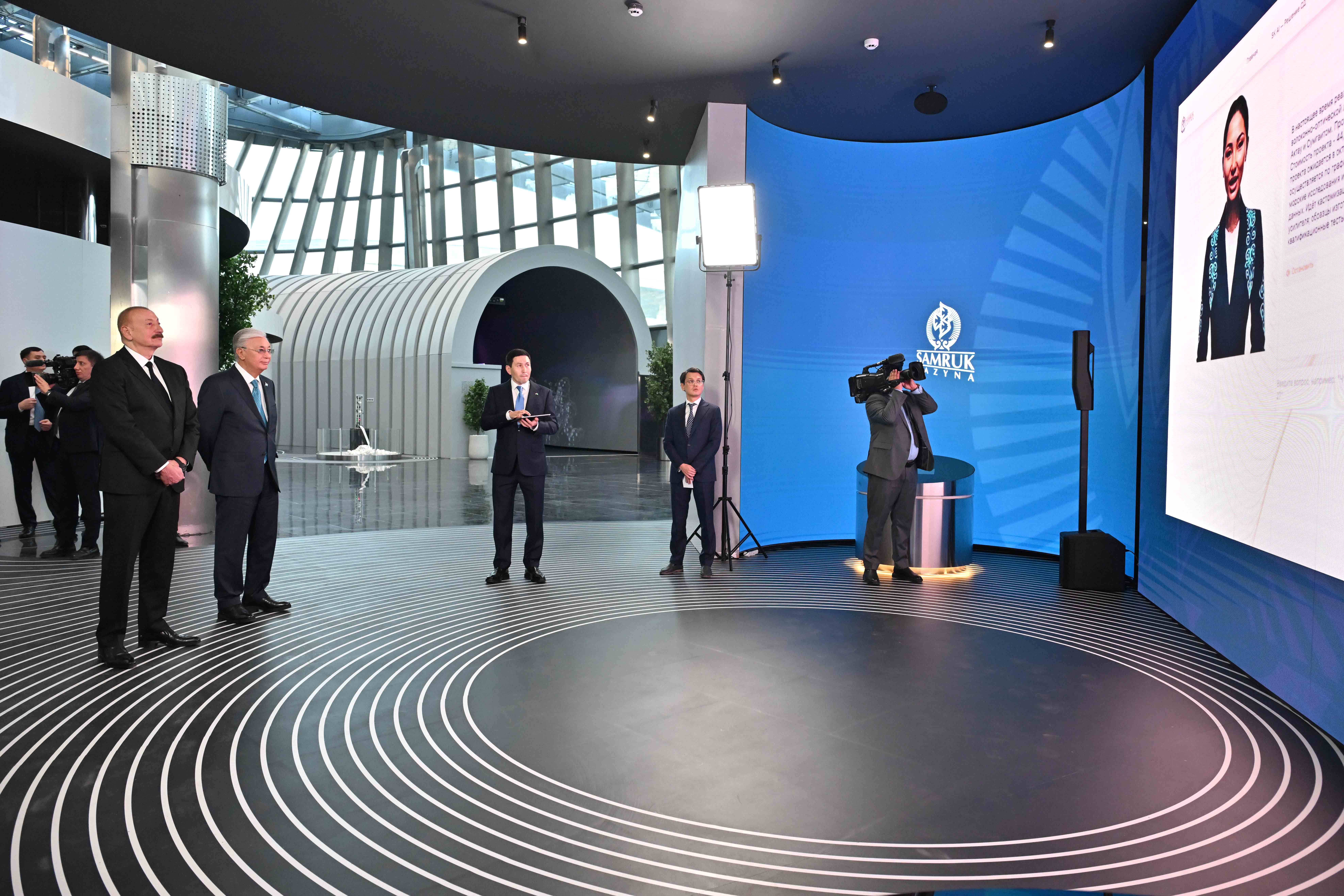 Орталықта Қасым-Жомарт Тоқаев пен Ильхам Әлиев цифрлық технологияларды дамыту және жасанды интеллектіні қолдану жетістіктерімен танысты. Премьер-министрдің орынбасары – Жасанды интеллект және цифрлық даму министрі Жаслан Мәдиев мәртебелі меймандарға мемлекеттік үдерістерді басқаруға және талдауға, сондай-ақ GovTech-шешімдер қабылдауға арналған AI-Driven Government ахуалдық орталығының тұжырымдамасы жөнінде баяндады. Сонымен қатар мемлекеттер басшыларына Smart City технологиялары, роботты техника аймағы, түрлі салаға жасанды интеллектіні енгізуге бағытталған Samruk-Kazyna жобалары көрсетілді. Президенттер Astana Hub инновациялық кластерін аралап көрді. Орталықта 1800-ден астам IT-компания мен стартап, оның ішінде шетелдің үлесі бар 460-тан аса компания тіркелген. Бұдан бөлек, Қасым-Жомарт Тоқаев пен Ильхам Әлиевке халықаралық нарыққа шыққан қазақстандық компаниялардың өнімдері жайында мәлімет берілді.