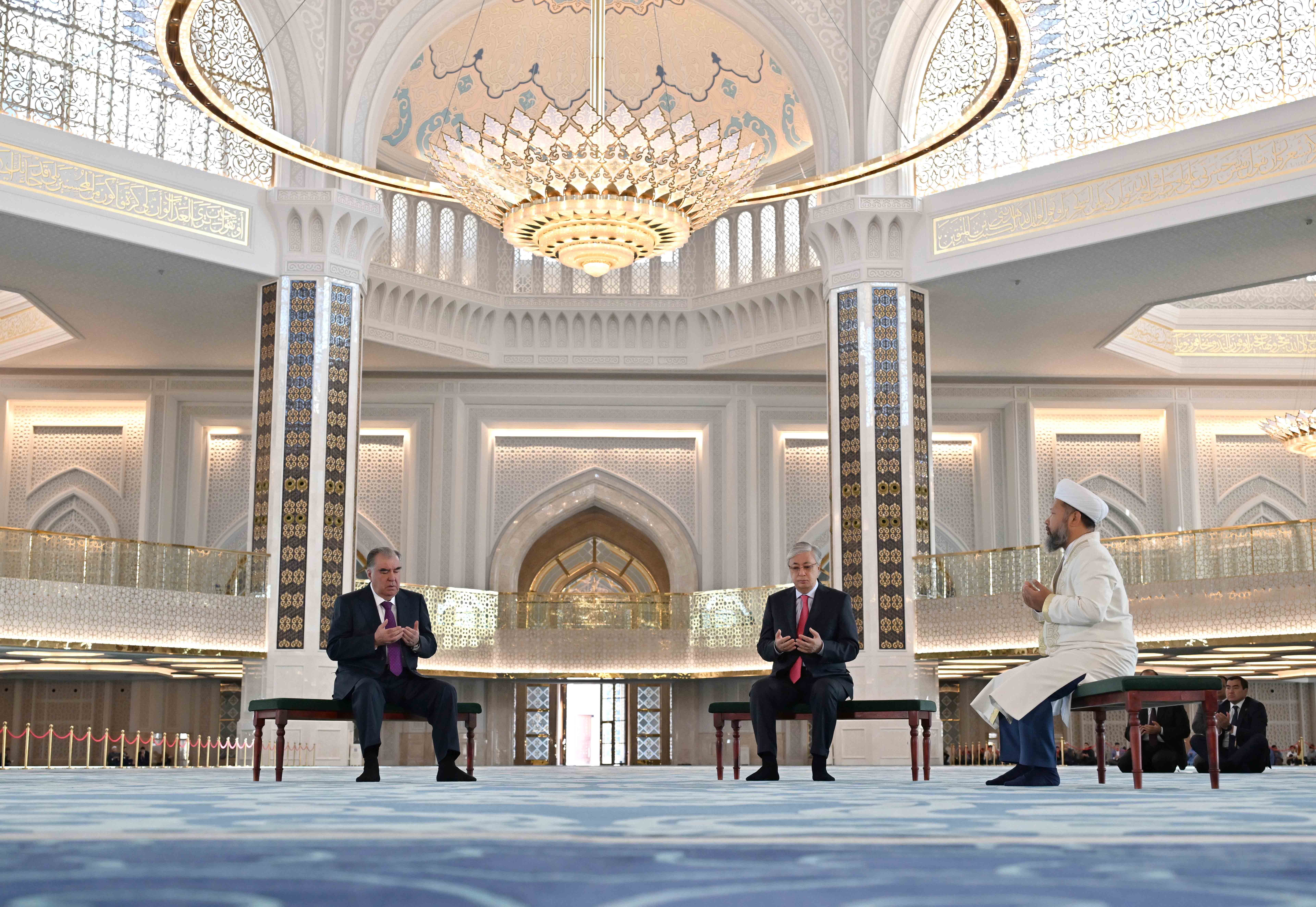 Қасым-Жомарт Тоқаев пен Эмомали Рахмон Астанада 2022 жылы бой көтерген Бас мешітке барды. Қазақстанның бас мүфтиі Наурызбай қажы Тағанұлы Құран сүрелерін оқып, екі елдің халқына бейбітшілік пен бақ-береке тіледі. Мемлекеттер басшылары Орталық Азиядағы ең үлкен мешіттің сәулетімен танысты.