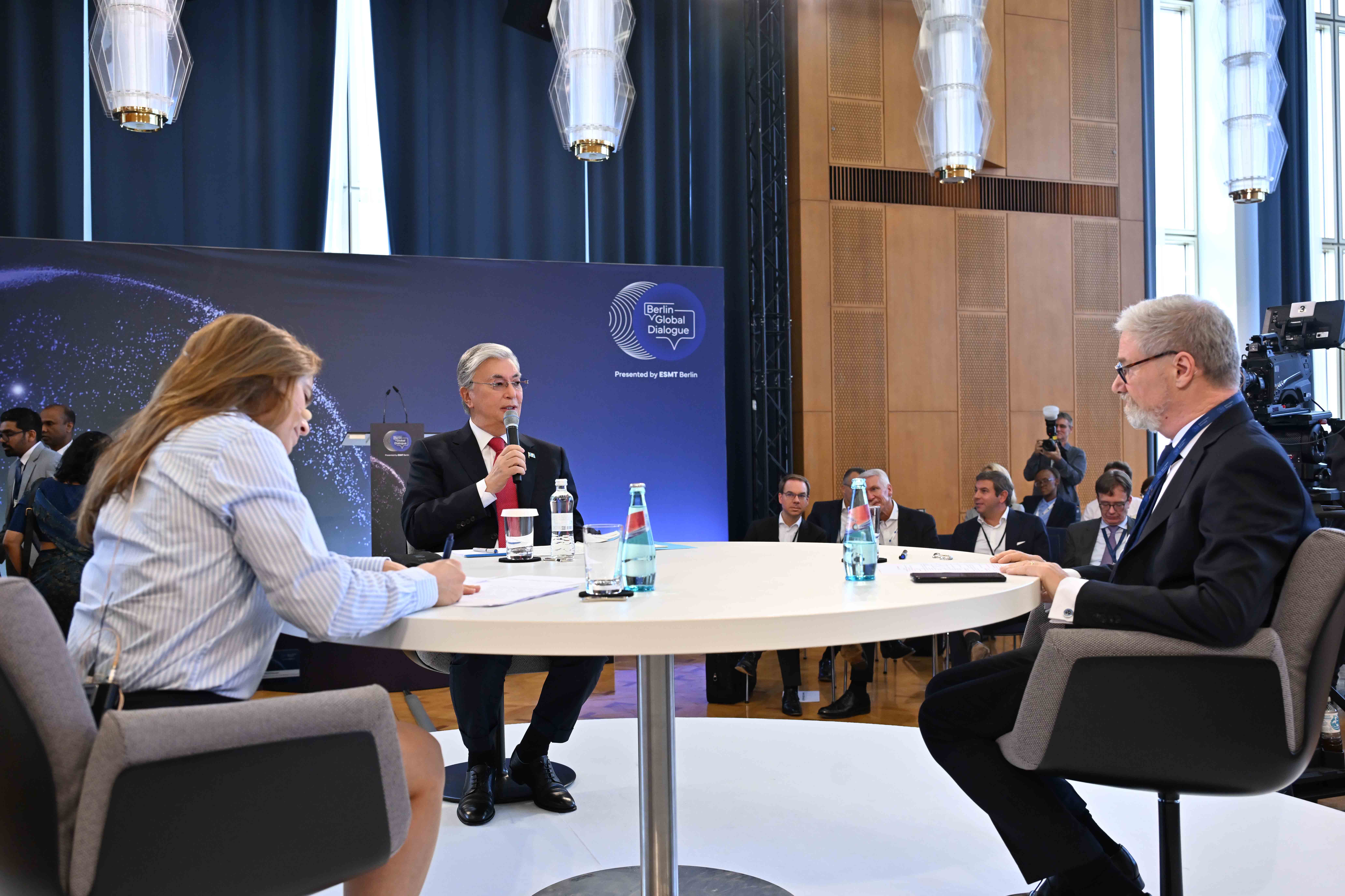 – Биылғы жылдың маусым айында менің бастамаммен бірінші Астана халықаралық форумын өткіздік. Бұл бірегей әрі инклюзивті алаң геосаяси тұрғыдан жікке бөлініп жатқан жағдайда жаһандық ынтымақтастық пен диалогты ілгерілету үшін құрылды. Berlin Global Dialogue және Астана халықаралық форумы – Еуропа мен Еуразиядағы халықаралық диалог үшін маңызды алаңдар. Олар өздерінің жаһандық проблемаларды шешуге бағытталған күш-жігерін жандандыра алады деп үміттенемін, – деді Қасым-Жомарт Тоқаев.