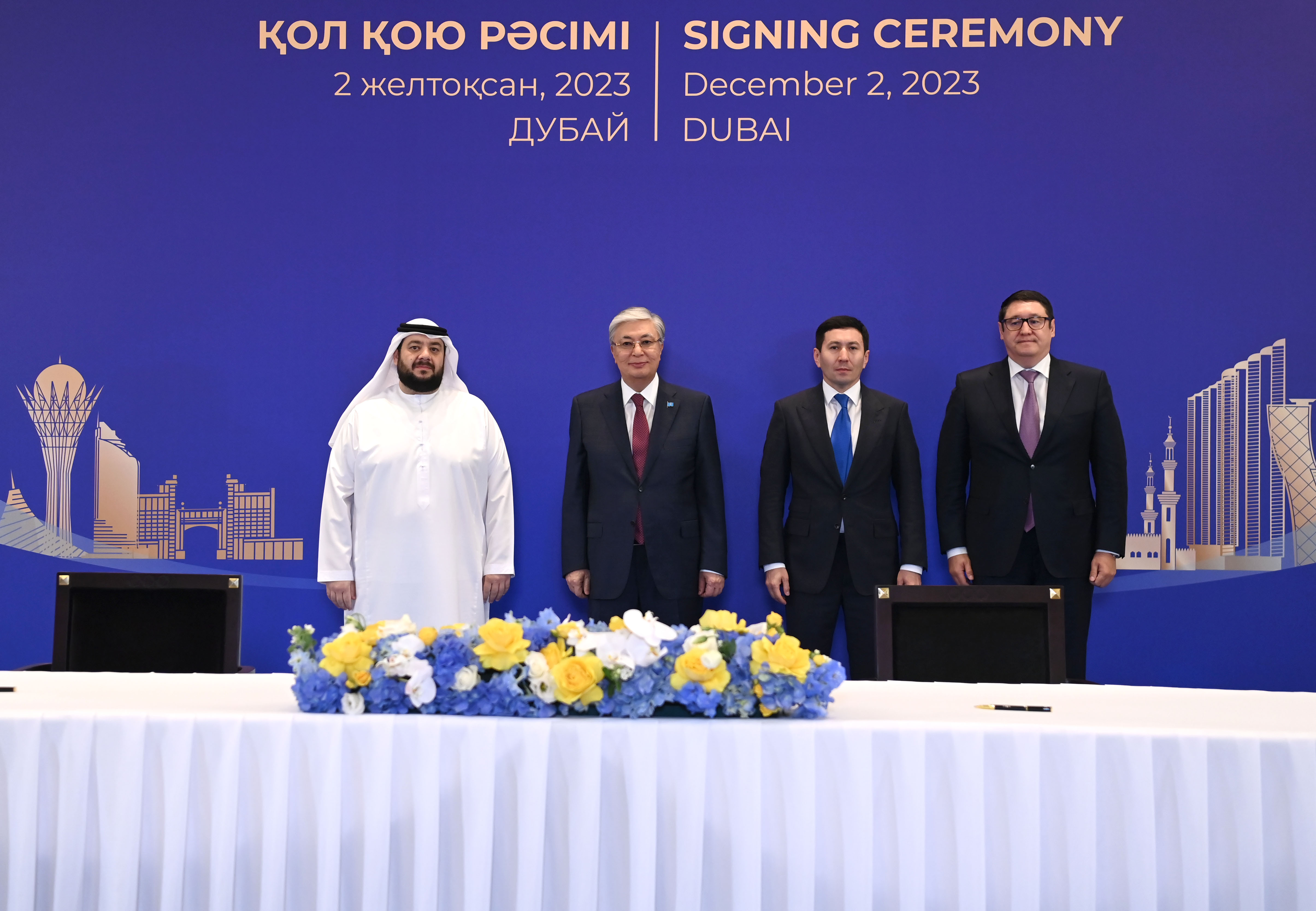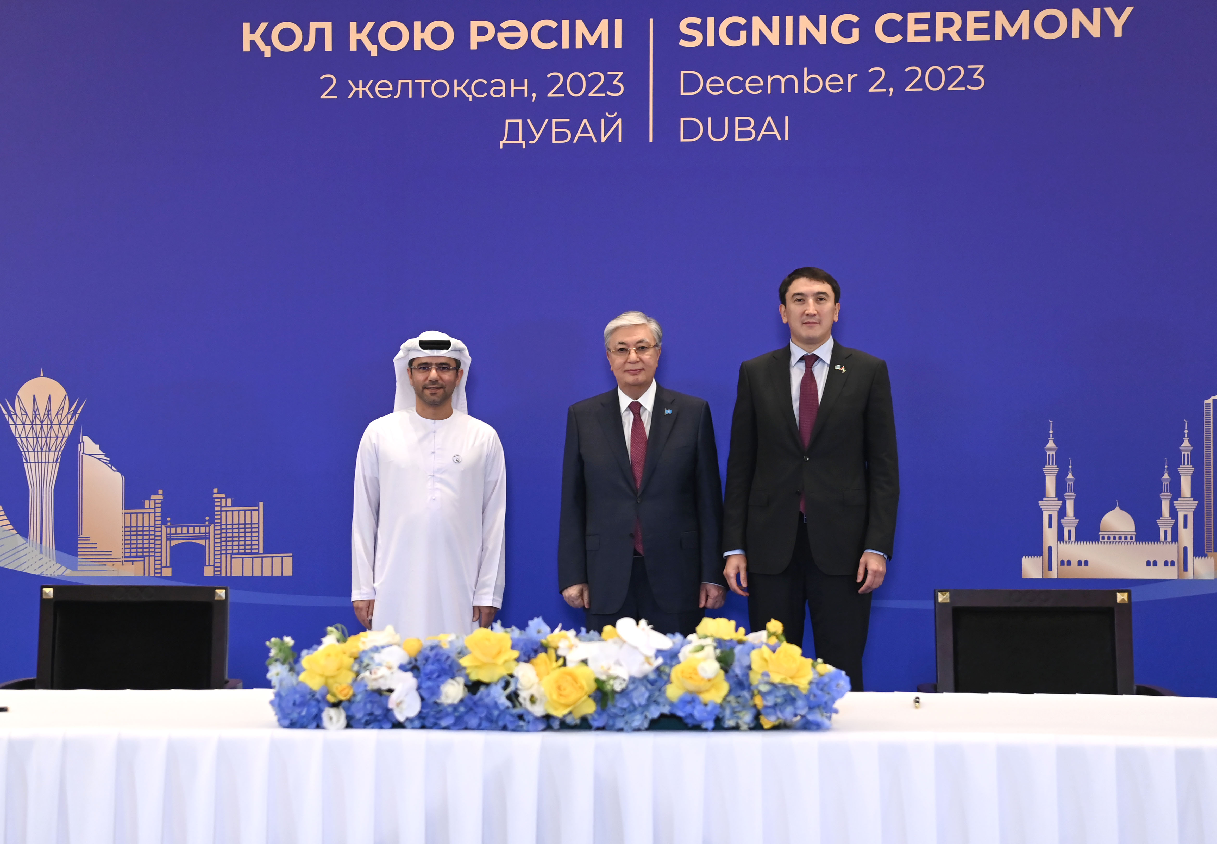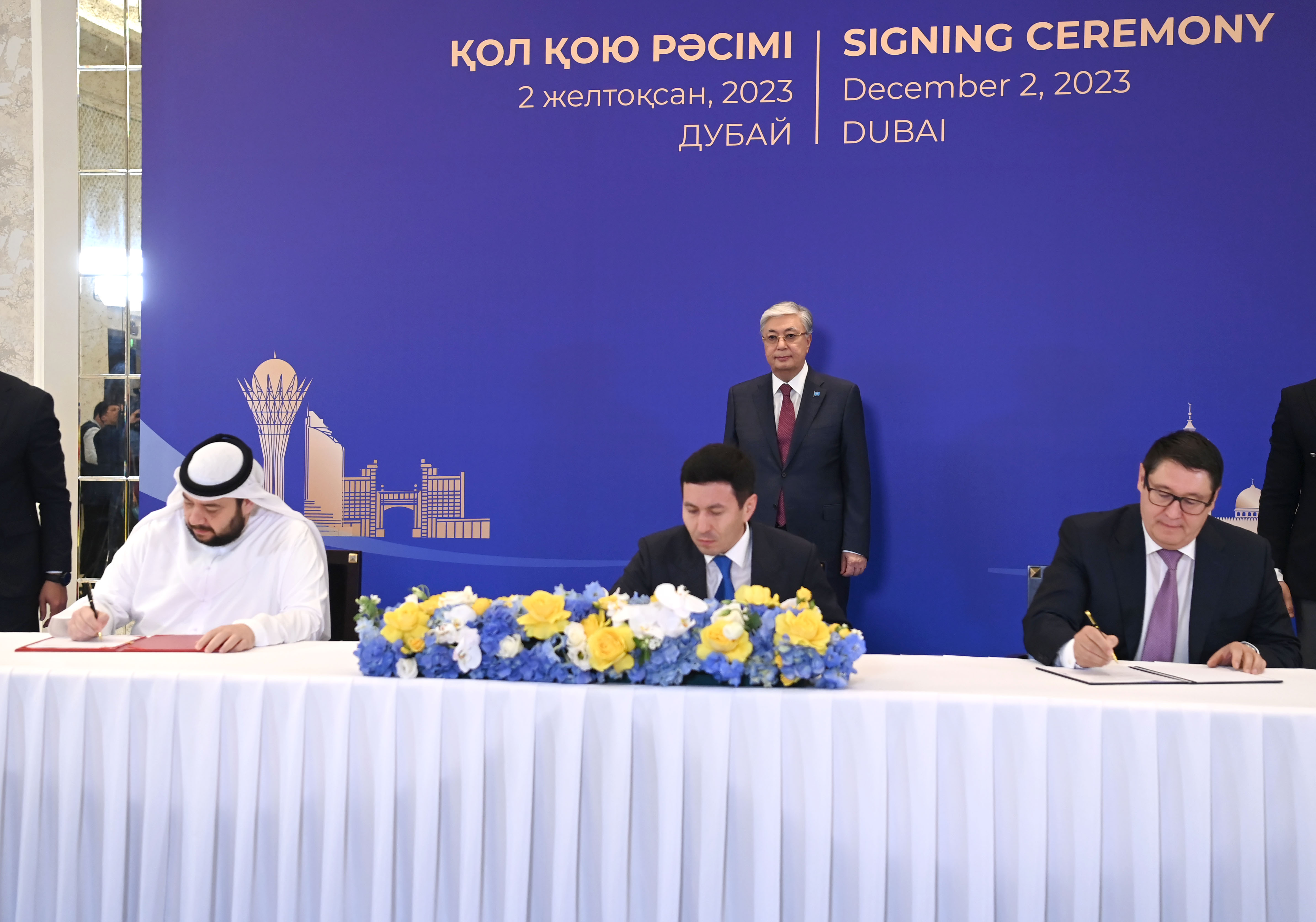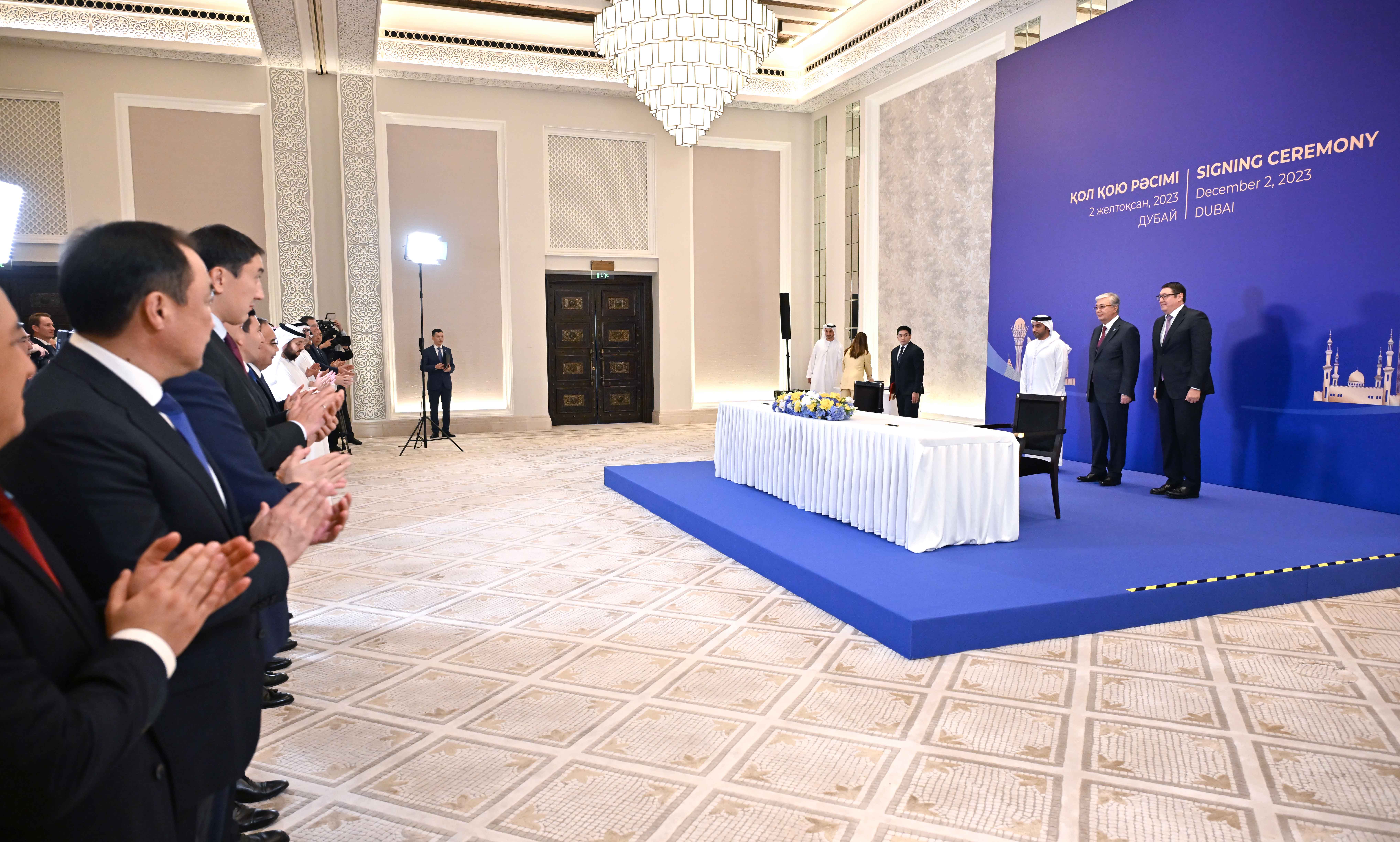 Қасым-Жомарт Тоқаев Дубайда өтіп жатқан Климат жөніндегі дүниежүзілік саммит (СОР28) аясында Қазақстанның және басқа да елдердің мемлекеттік органдары мен бизнес-құрылымдары арасындағы бірқатар келісімге қол қою рәсіміне қатысты.
