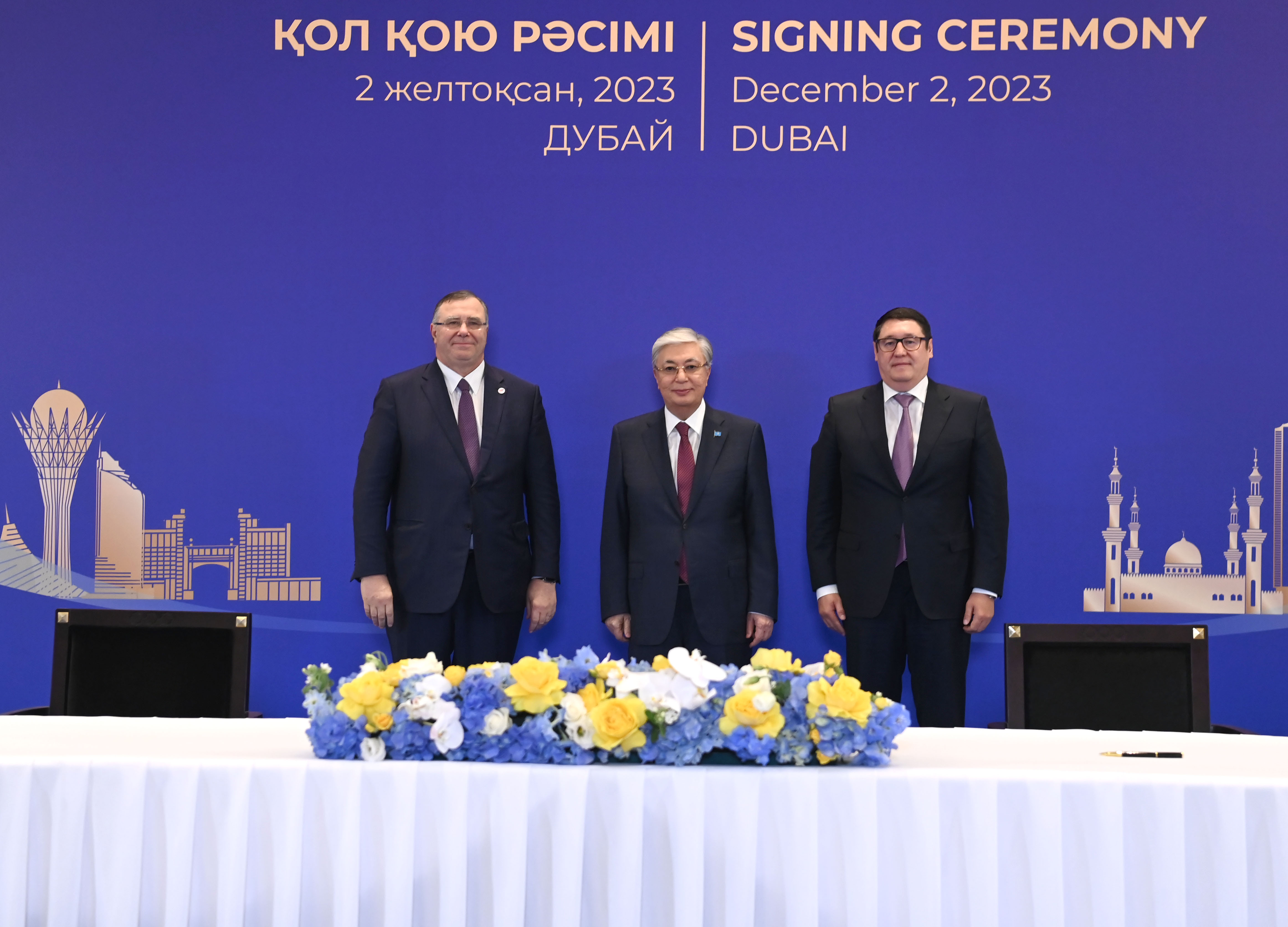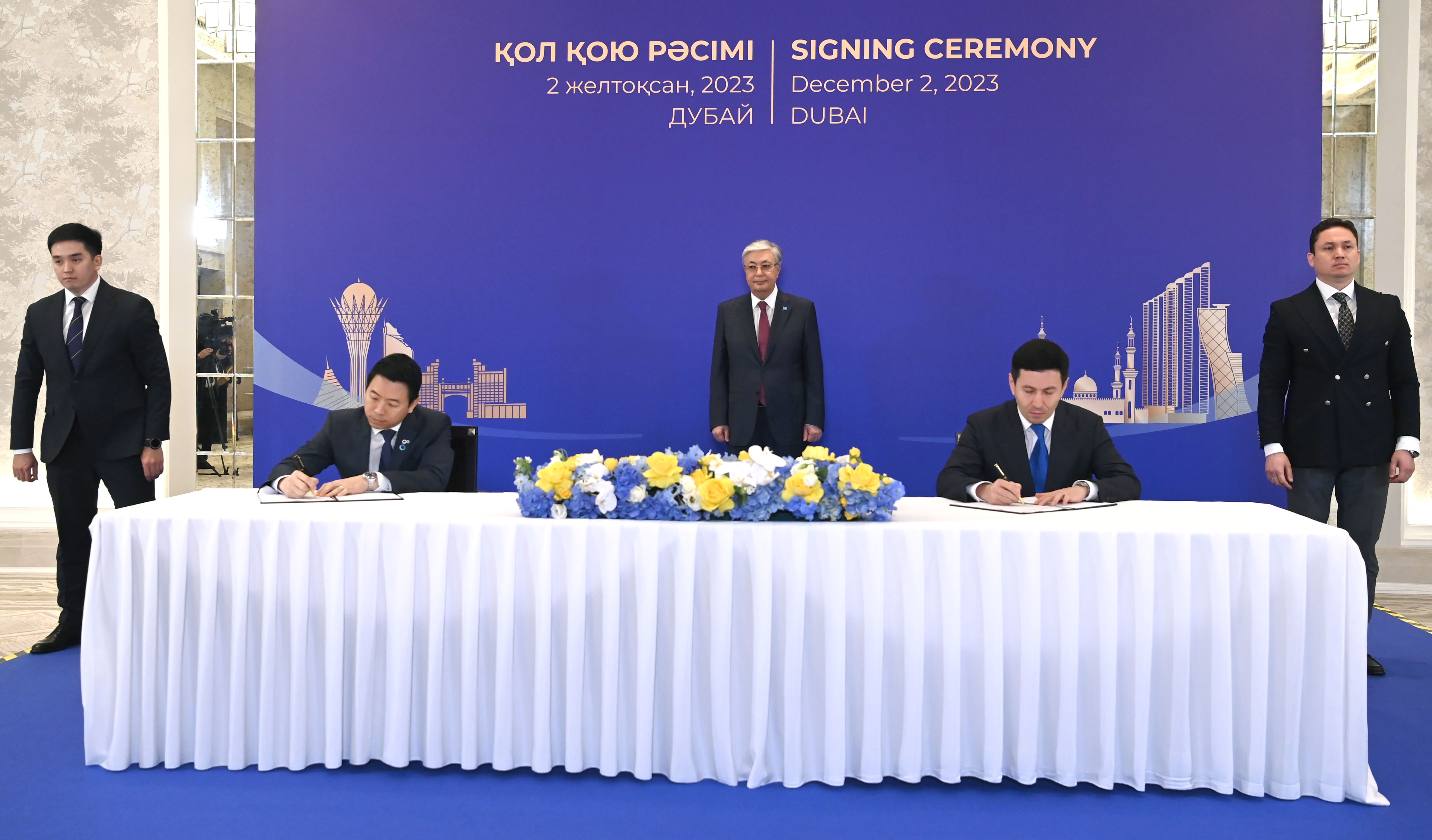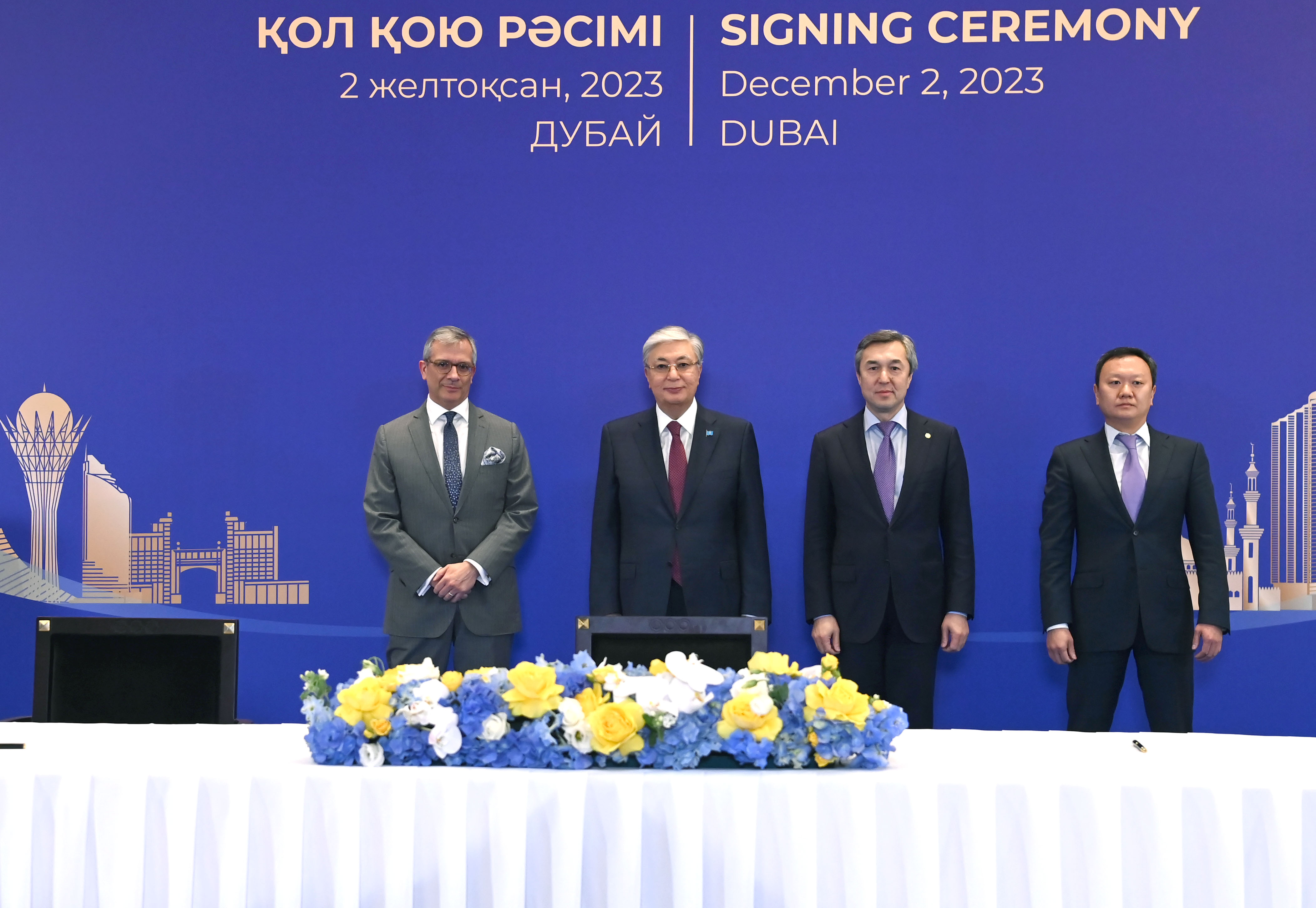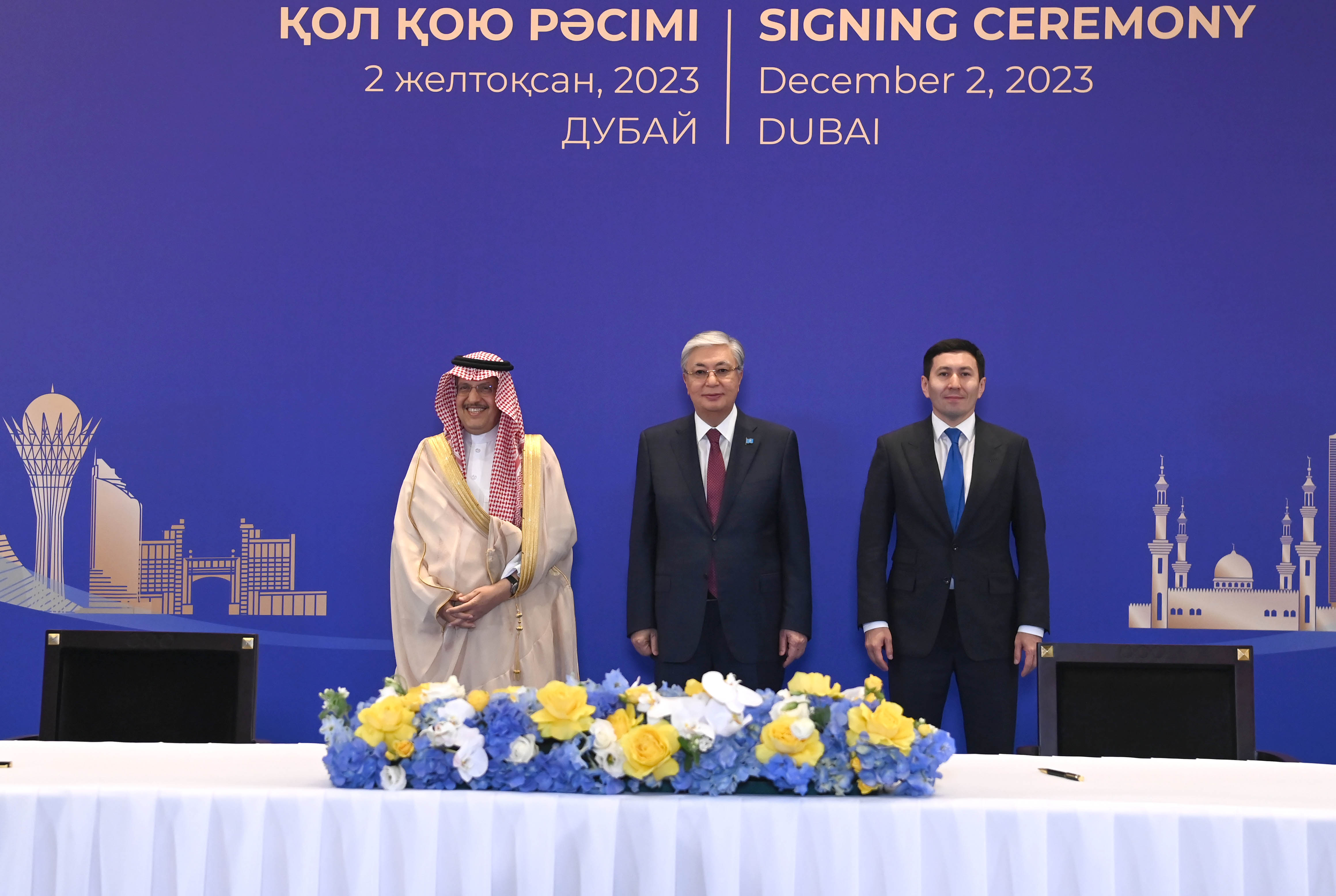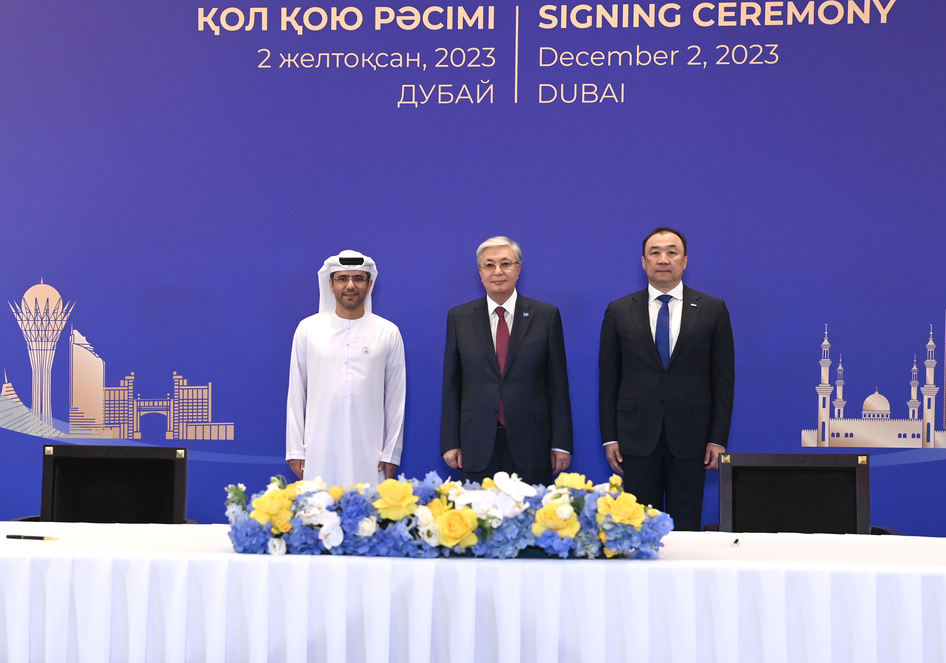 Қасым-Жомарт Тоқаев Дубайда өтіп жатқан Климат жөніндегі дүниежүзілік саммит (СОР28) аясында Қазақстанның және басқа да елдердің мемлекеттік органдары мен бизнес-құрылымдары арасындағы бірқатар келісімге қол қою рәсіміне қатысты.