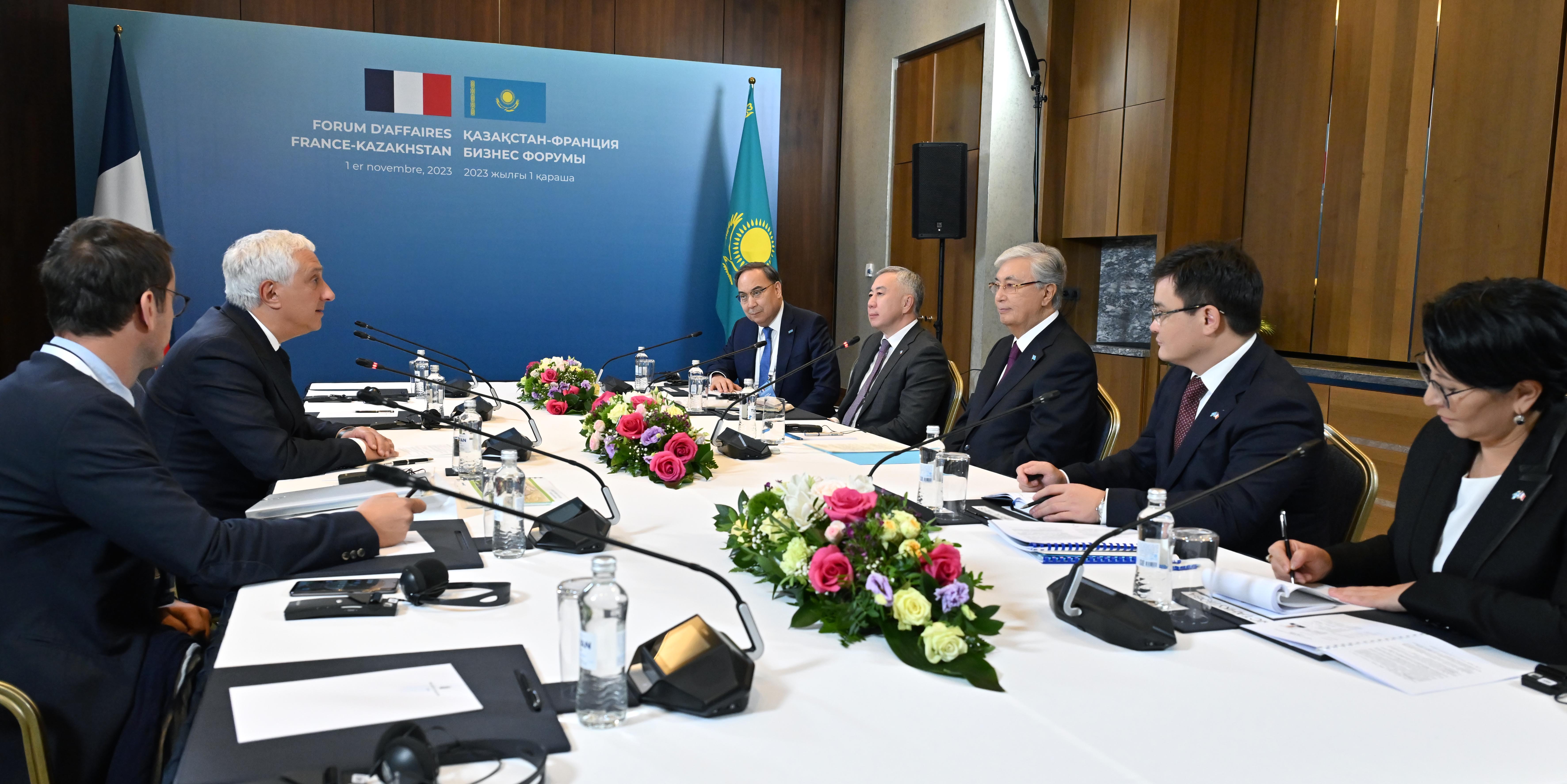 Мемлекет басшысы қазақ-француз бизнес форумы аясында Францияның бизнес құрылымдарының басшыларымен кездесті.