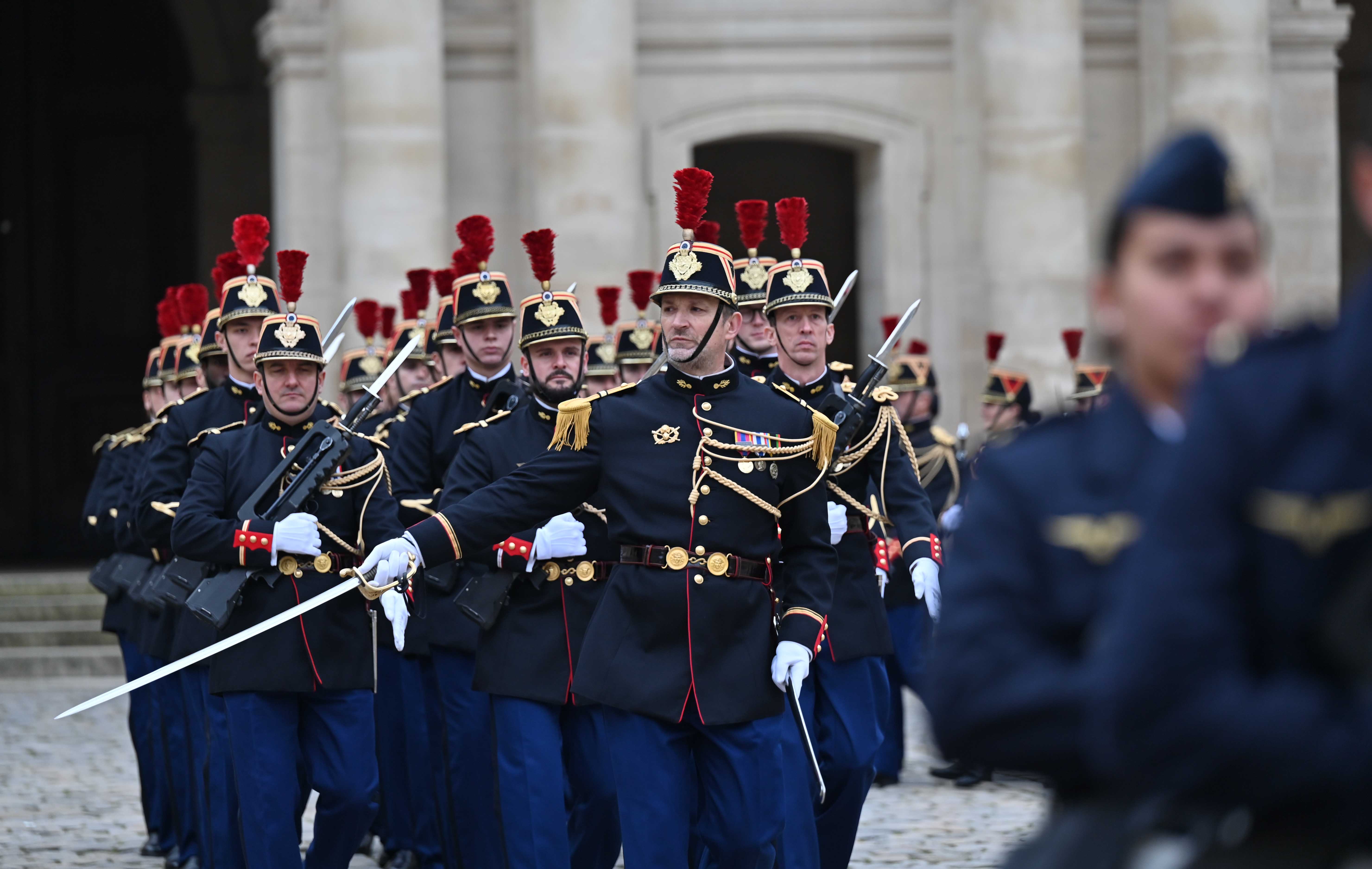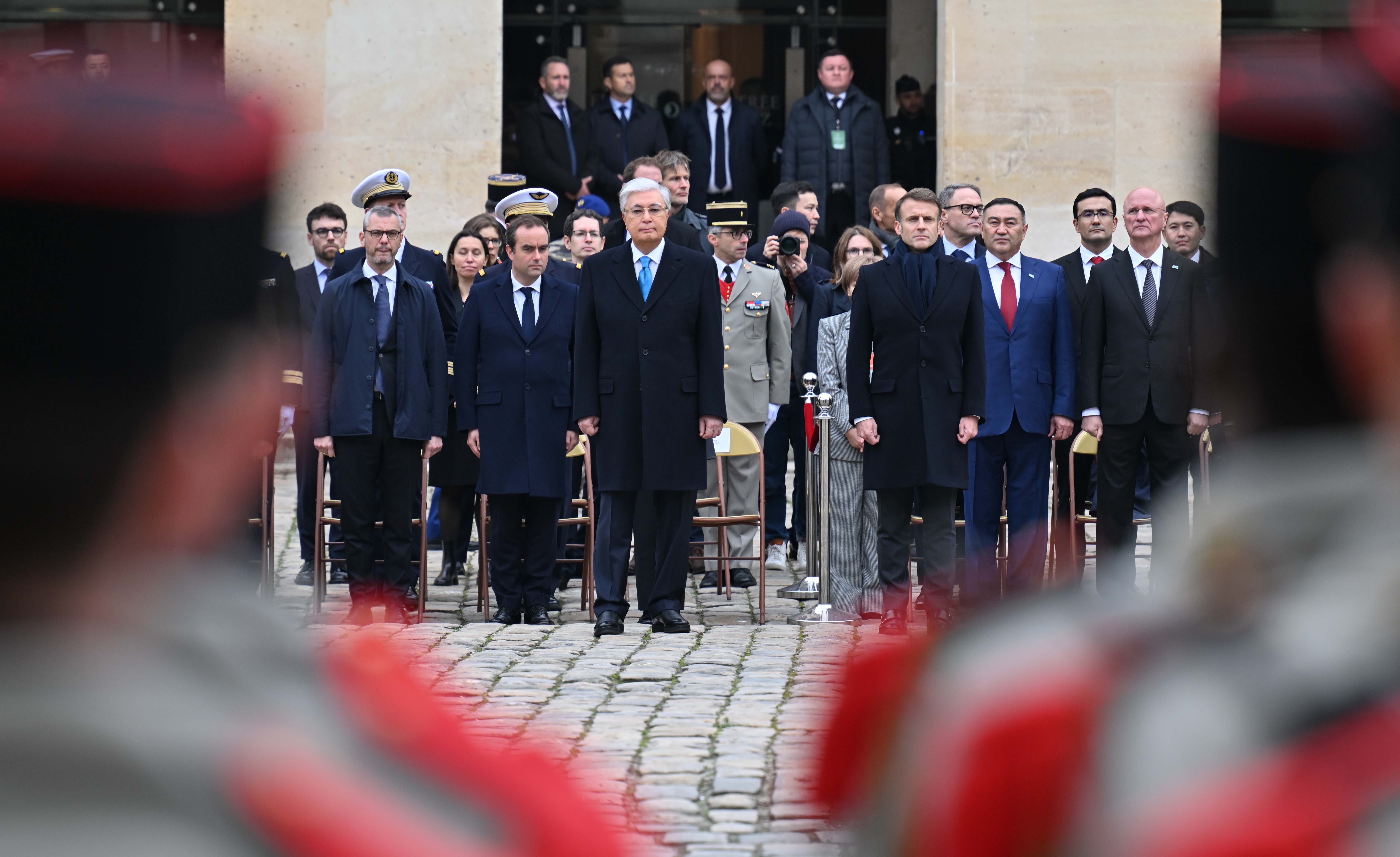 Франция, Париж қаласы Қасым-Жомарт Тоқаевтың Франция Республикасына мемлекеттік сапары салтанатты қарсы алу рәсімінен басталды. Мемлекет басшысын әскери оркестрдің сүйемелдеуімен Президент Эмманюэль Макрон қарсы алды. Қазақстан мен Францияның мемлекеттік әнұрандары шырқалды. Президенттер республикалық гвардия, әуе-ғарыш, құрлық және теңіз әскерлерінен жасақталған Құрмет қарауылының алдынан жүріп өтті. Бұдан кейін мемлекеттер басшылары Құрмет қарауылының салтанатты шеруін тамашалады. Қасым-Жомарт Тоқаев пен Эмманюэль Макрон бір-біріне ресми делегация мүшелерін және құрметті қонақтарды таныстырды.