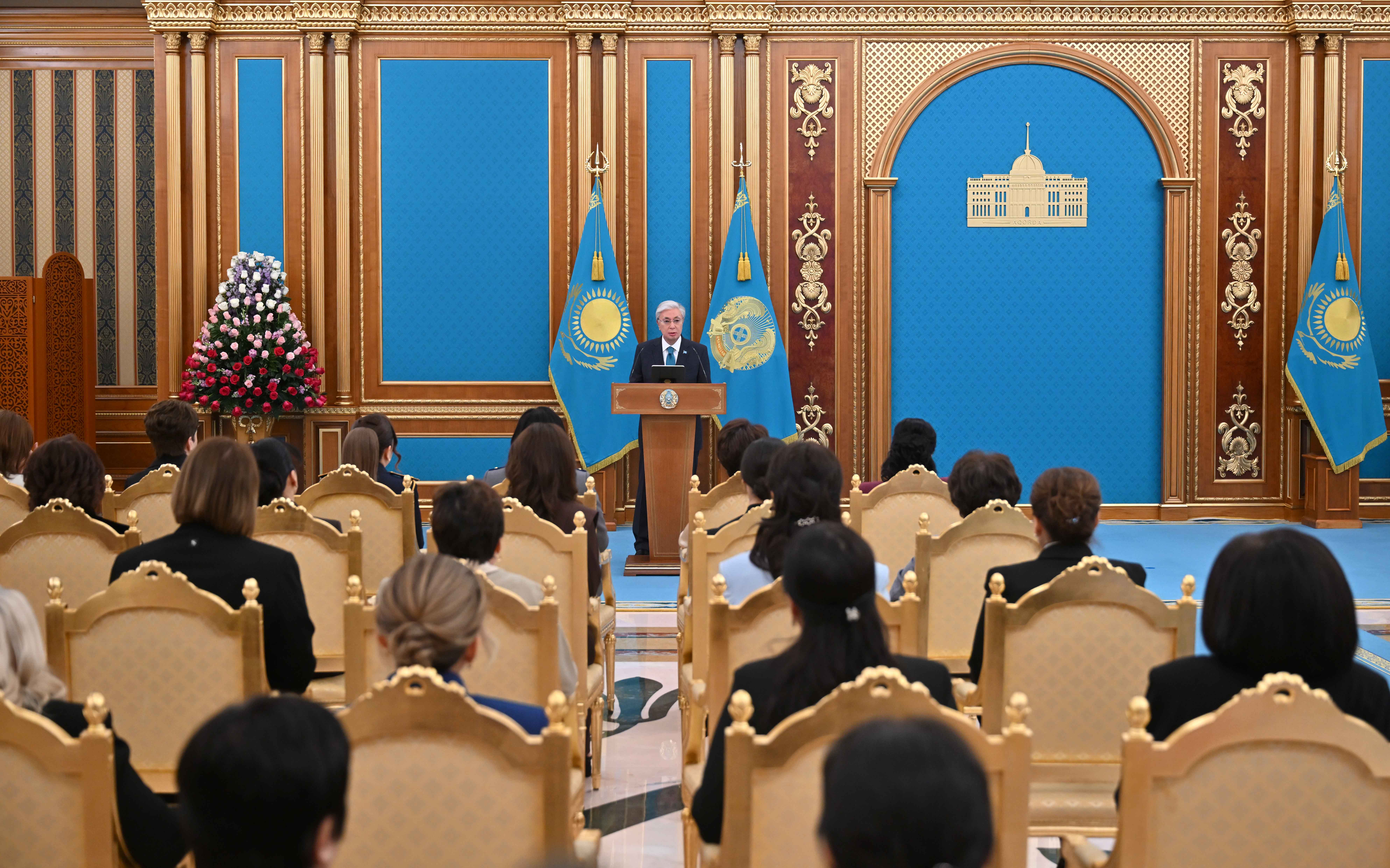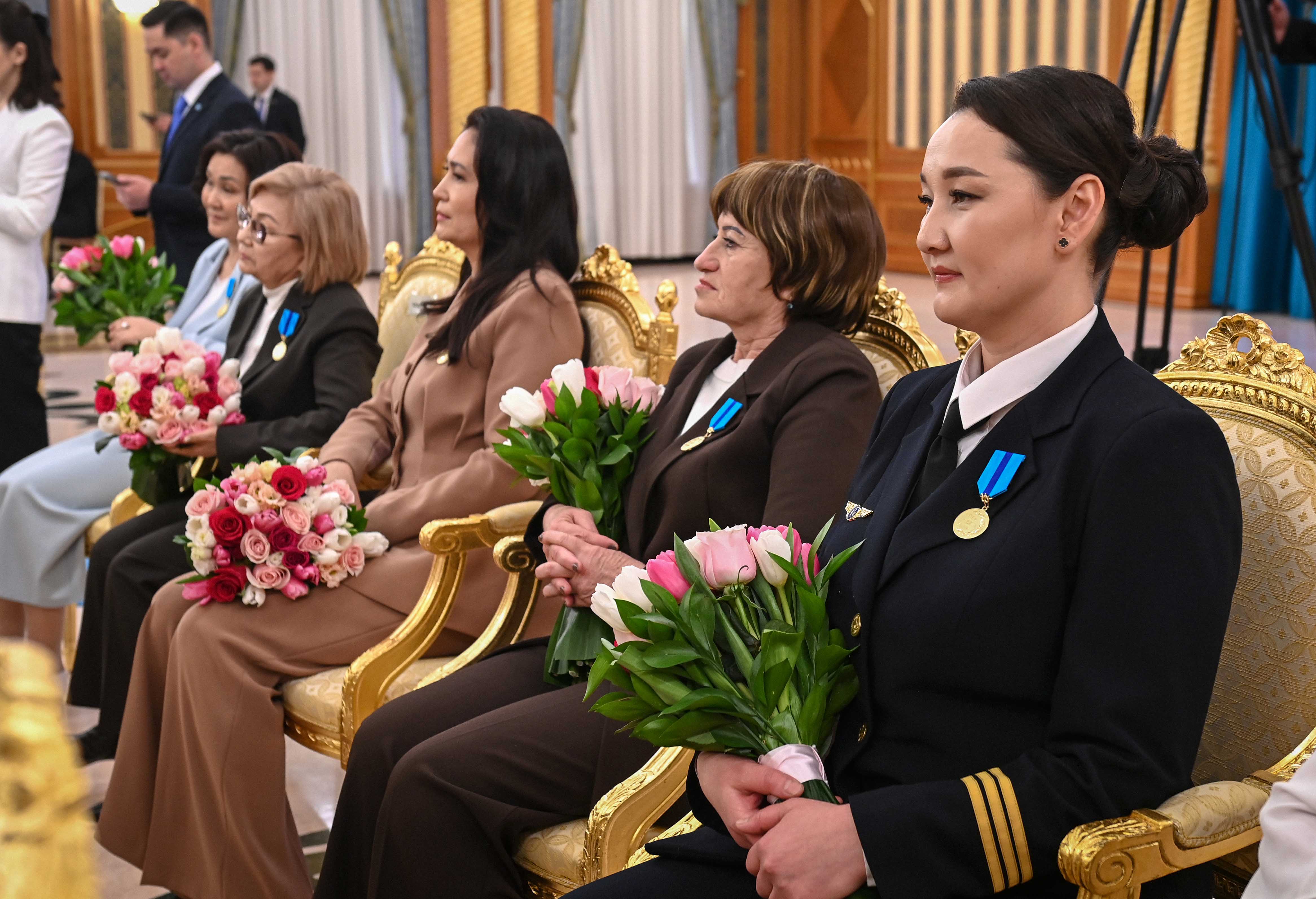 Президент мерекелік жиында Қазақстанның әлеуметтік-экономикалық және мәдени дамуына елеулі үлес қосып, өз кәсібінде жоғары табысқа жеткен әйелдерді мемлекеттік наградамен марапаттады.
