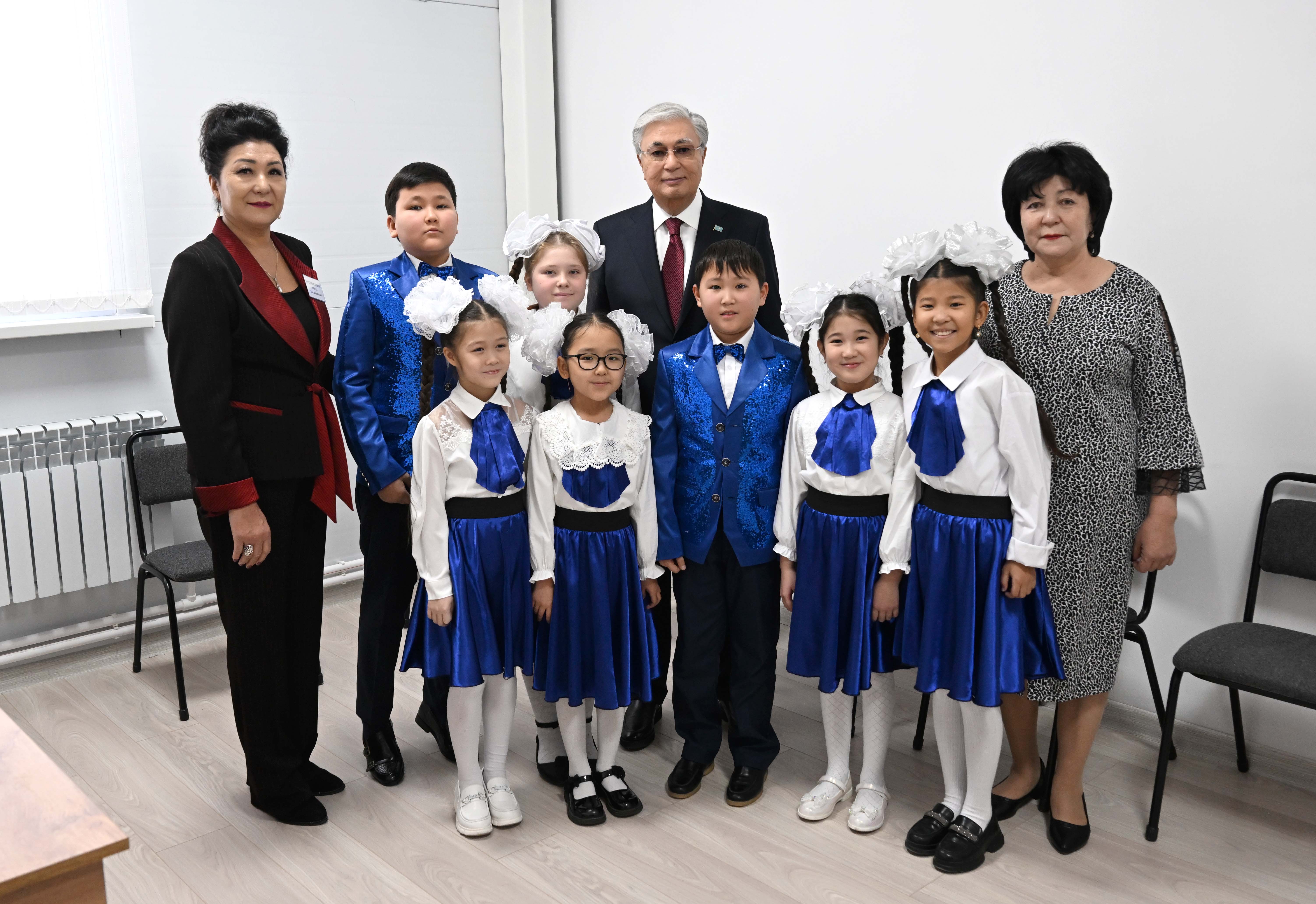 Мемлекет басшысы ауыл кітапханасымен танысты. Сондай-ақ өнерпаз балалармен жүздесіп, еліміздің лайықты азаматы болып өсуіне тілектестік білдірді.