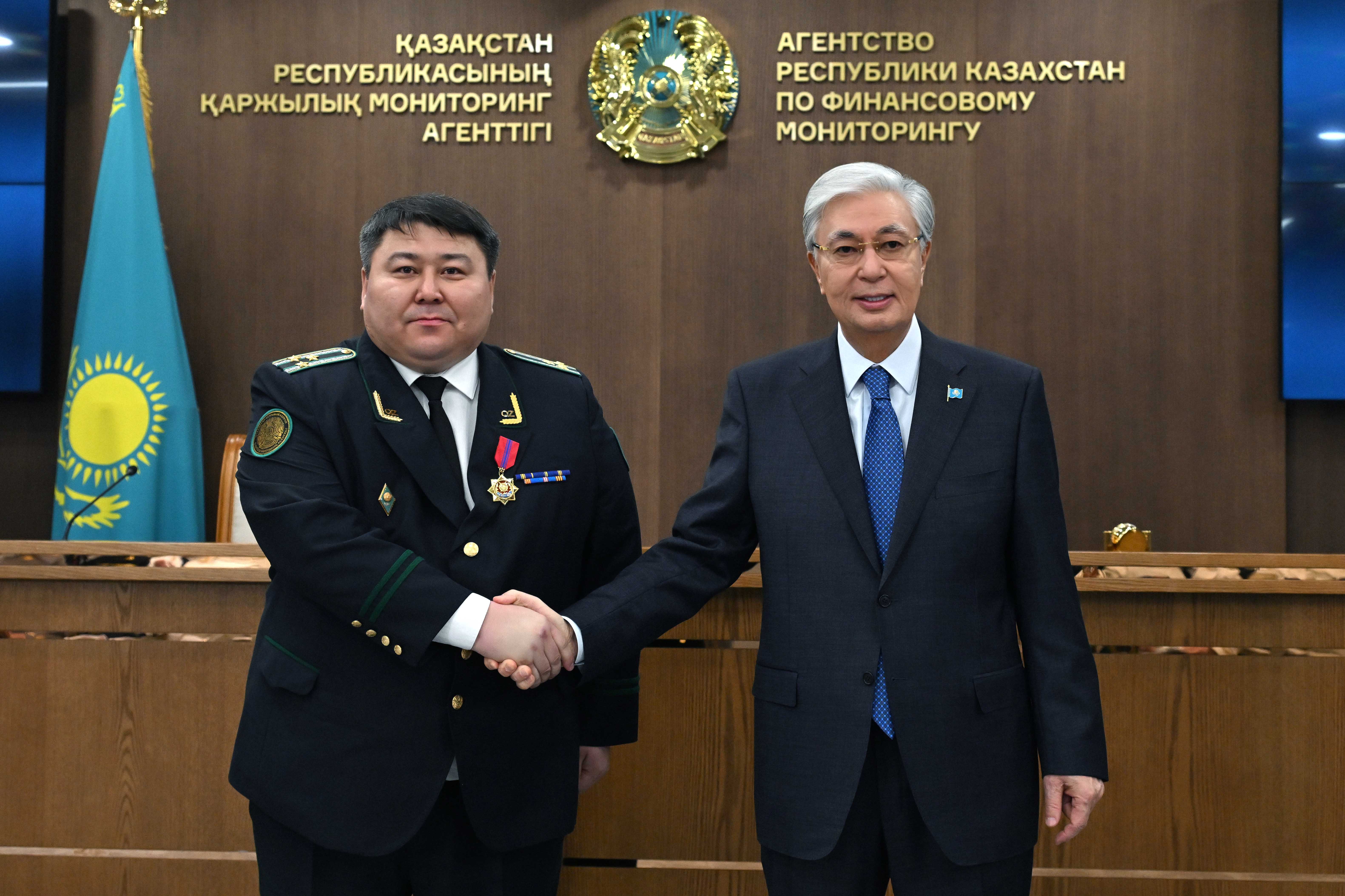 Президент қызметтік борышын үлгілі атқарғаны үшін Қаржылық мониторинг агенттігінің бір топ қызметкерін мемлекеттік наградамен марапаттады.