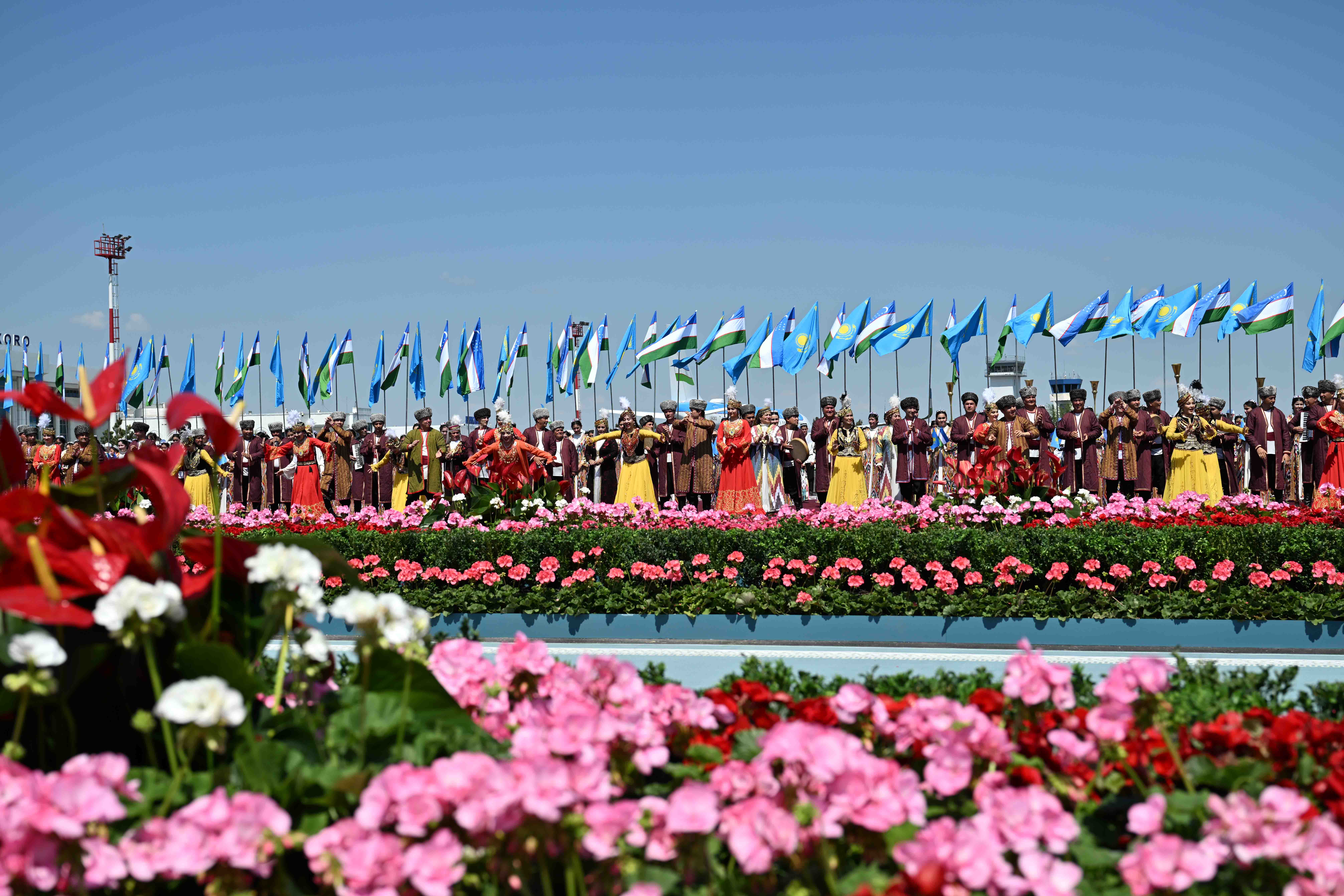 Салтанатты қарсы алу рәсімінде Қазақстан Президентінің құрметіне ұлттық ән мен би орындалды.