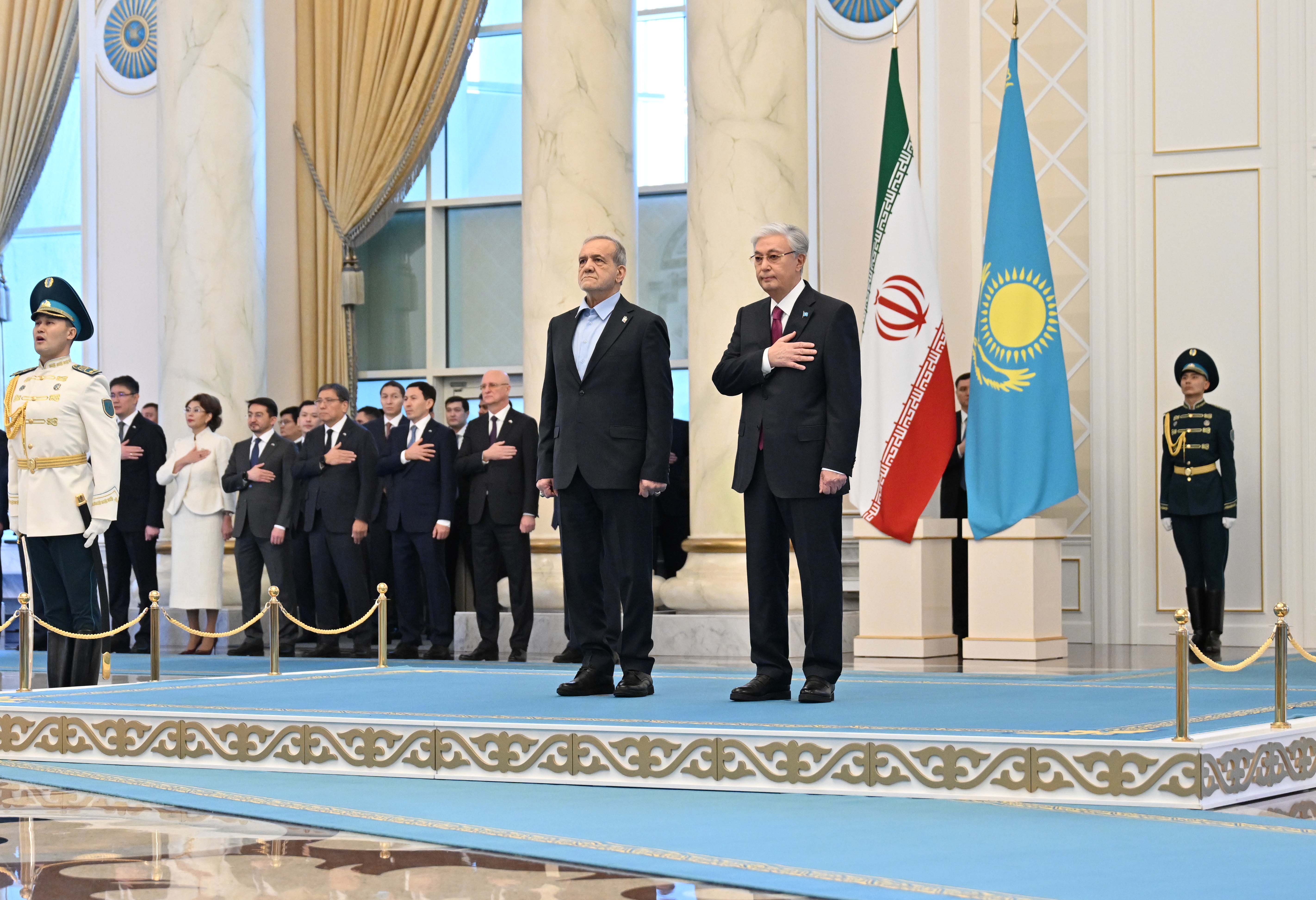 Ақордада Қазақстанға ресми сапармен келген Иран Ислам Республикасының Президенті Масуд Пезешкианды қарсы алу рәсімі өтті.