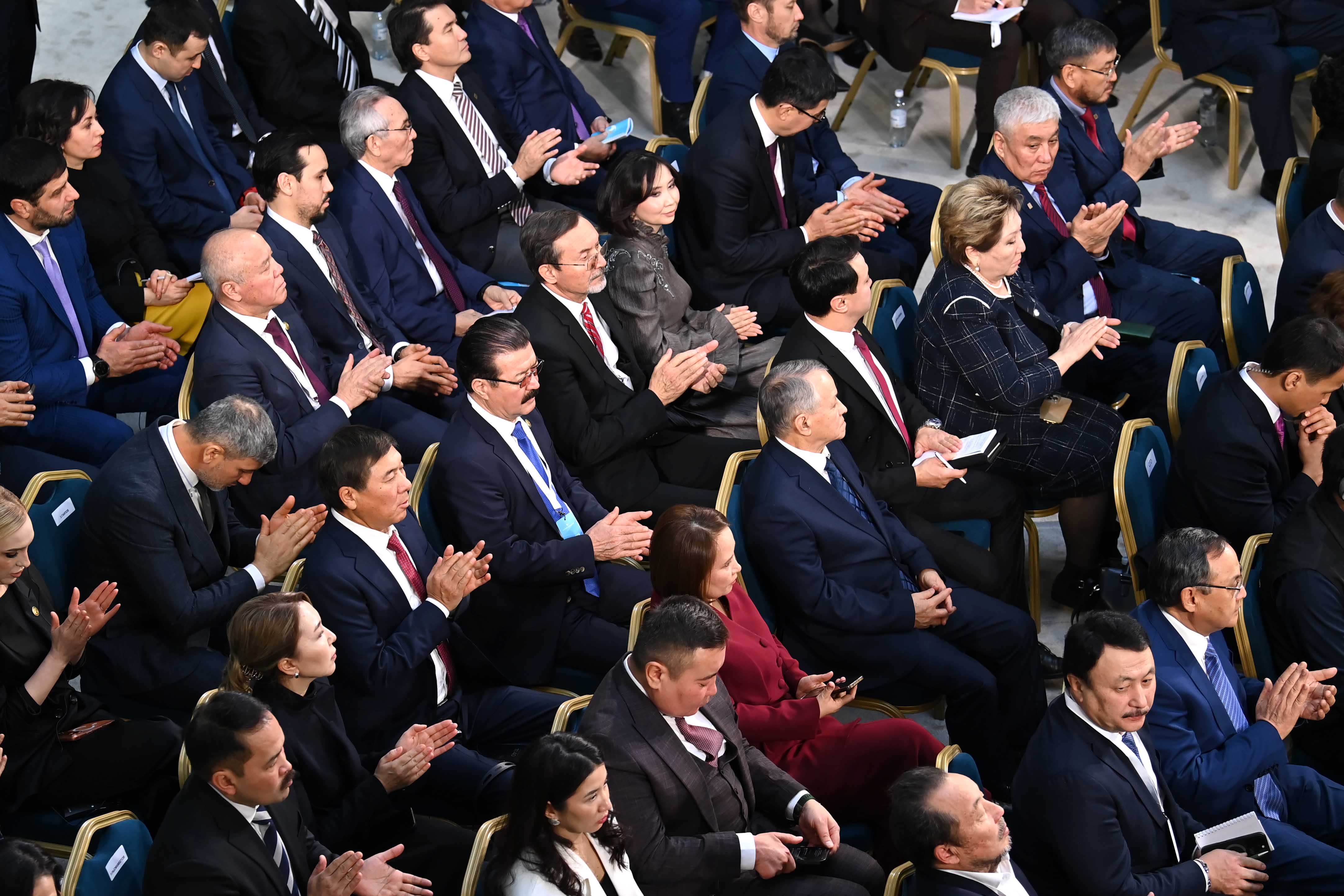 Әлемдегі ахуал тым шиеленісіп тұрғанына қарамастан, біз елімізде күрделі әрі түбегейлі өзгерістерді жүзеге асырдық. 2022 жылғы конституциялық реформаға, одан кейін Атом электр станциясын салуға қатысты референдум кезінде халқымыздың басым көпшілігі мені қолдады. Мен әрбір шешімді елге қажеттігі тұрғысынан мұқият саралай отырып қабылдаймын. Азаматтардың әл-ауқатын жақсартуға бағытталған нақты жұмыспен айналысу мен үшін бәрінен маңызды. Халықтың қамы, ұлттың, мемлекеттің мүддесі – мен үшін баға жетпес құндылық. Алдағы уақытта да елімізді дамытып, Тәуелсіздігімізді нығайта түсу жолында бар күш-жігерімді салып еңбек ете беремін. Осы орайда, стратегиялық бағдарымды үнемі қолдап келе жатқан барша халыққа және осы залда отырған еліміздің лайықты азаматтарына шын жүректен ризашылығымды білдіремін және зор алғысымды айтамын.