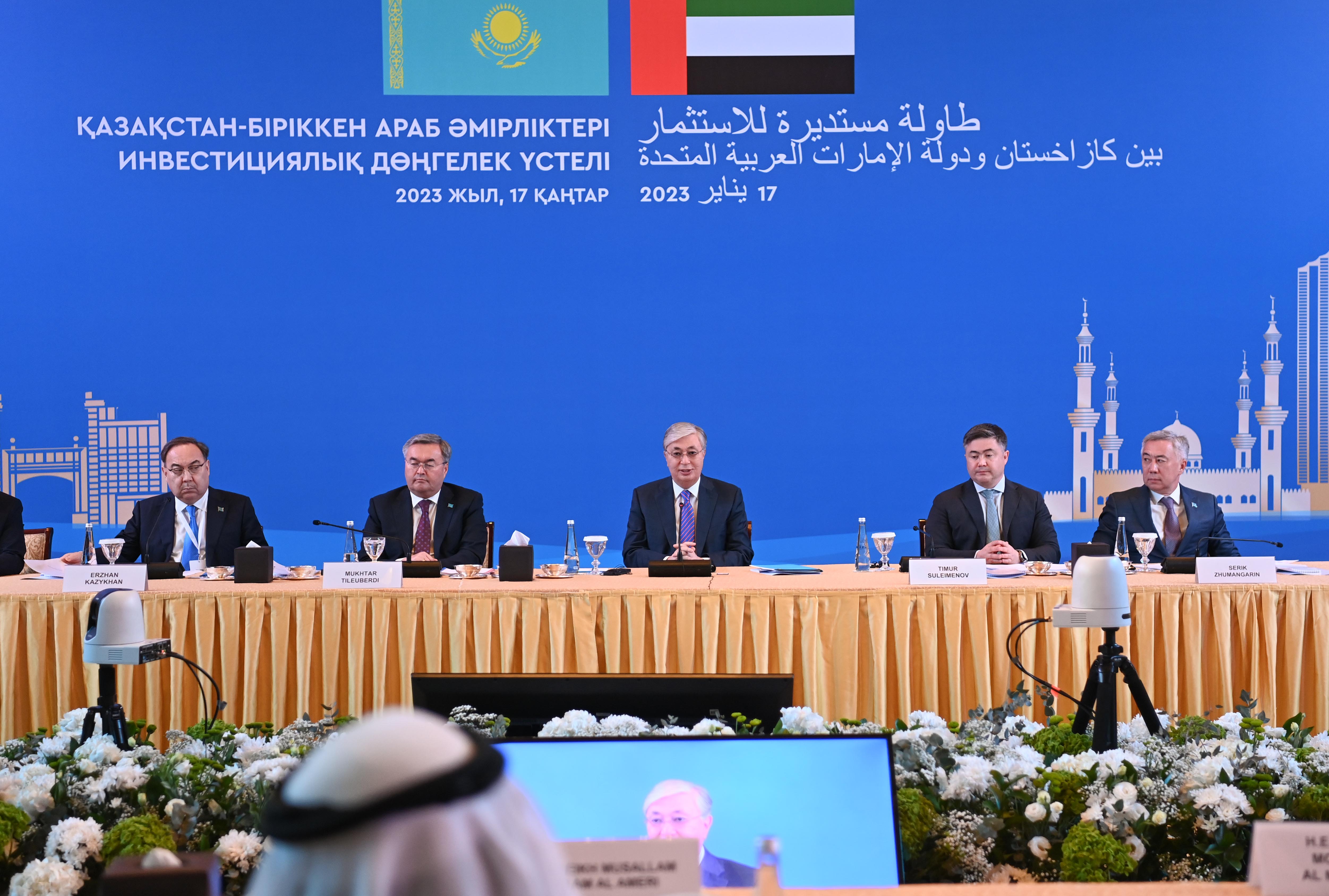 Президент өз сөзінде Қазақстан – БАӘ инвестициялық дөңгелек үстелінің қатысушыларына ілтипат білдіріп, жиынды ұйымдастырғаны үшін Әмірліктердің Сауда-өнеркәсіп палаталары федерациясына алғыс айтты. Сондай-ақ Әмірліктермен арадағы қарқынды ынтымақтастыққа жоғары баға берді.