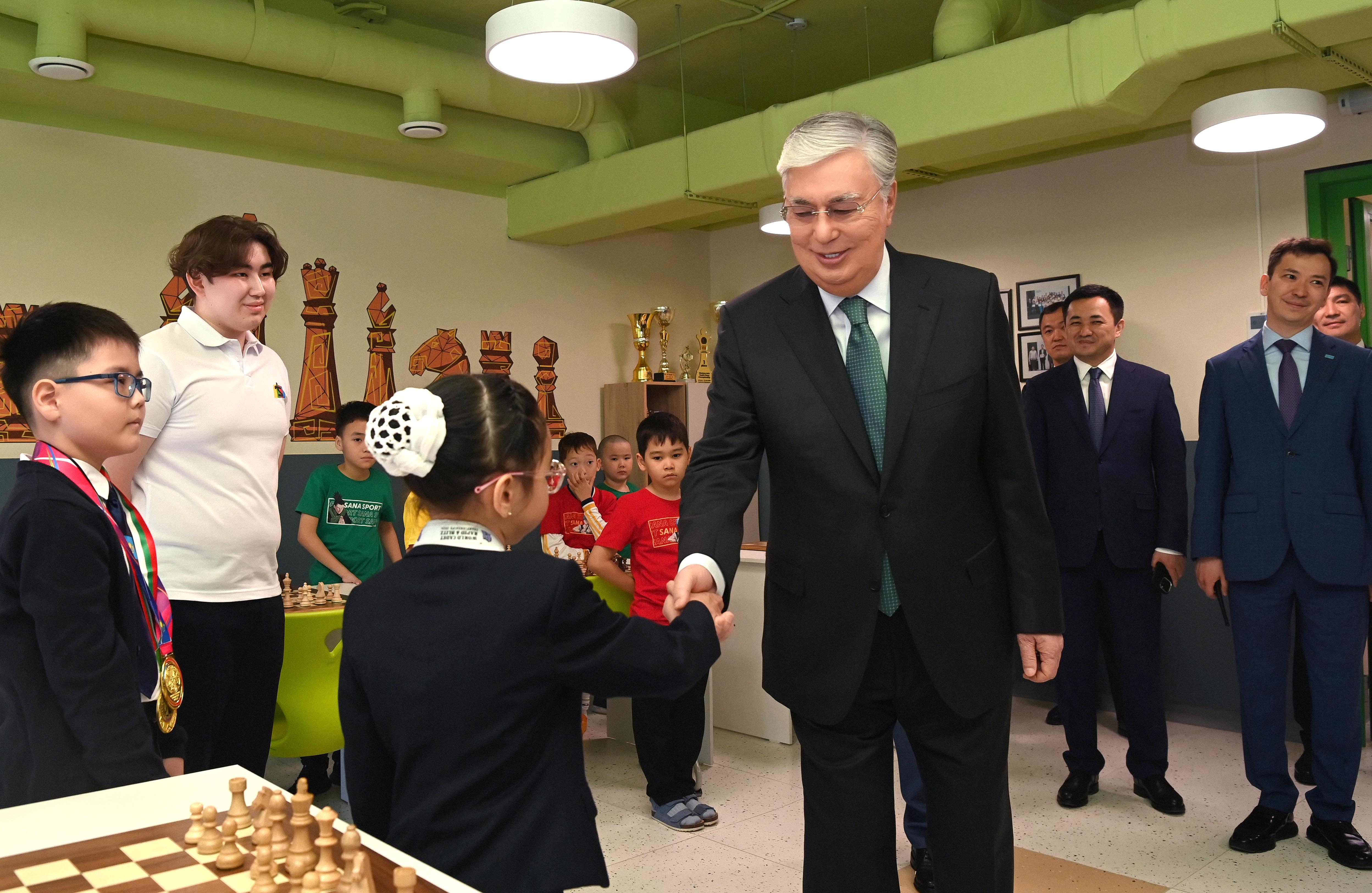 Президент елордадағы әлеуметтік нысандарды аралап көру барысында отбасылық SANA Sport орталығында болды. Мұнда спорт, шығармашылық, білім бағыттары бойынша 29 үйірме жұмыс істейді. Сондай-ақ 29 жаттықтырушы және 25 жоғары білікті педагог еңбек етеді. Мемлекет басшысына «Damu Development Group» консорциумы жүзеге асырып жатқан әлеуметтік жобалар жөнінде мәлімет беріліп, SANA Sport кешені аумағындағы саябақты қайта жаңғырту жоспары таныстырылды. Қасым-Жомарт Тоқаев орталықтағы спорт залдарын, шығармашылық үйірме бөлмелері мен оқу кабинеттерін аралап көрді. Сонымен қатар үйірмеге шеберлік дәрісін өткізуге келген шахматтан екі дүркін әлем чемпионы Айару Алтынбекке сыйлық табыстап, сәттілік тіледі. Жас шахматшы бұған дейін Президентке хат жазып, кездесу жайында өтінішін жеткізген еді. Бүгін жүздесудің сәті түсті. Кешенде 4 мыңнан астам баланың қосымша білім алуына жағдай жасалған. Әлеуметтік жағдайы төмен отбасынан шыққан жеткіншектердің үйірмелерге қатысуына «Мереке» қайырымдылық қоры қолдау көрсетеді.