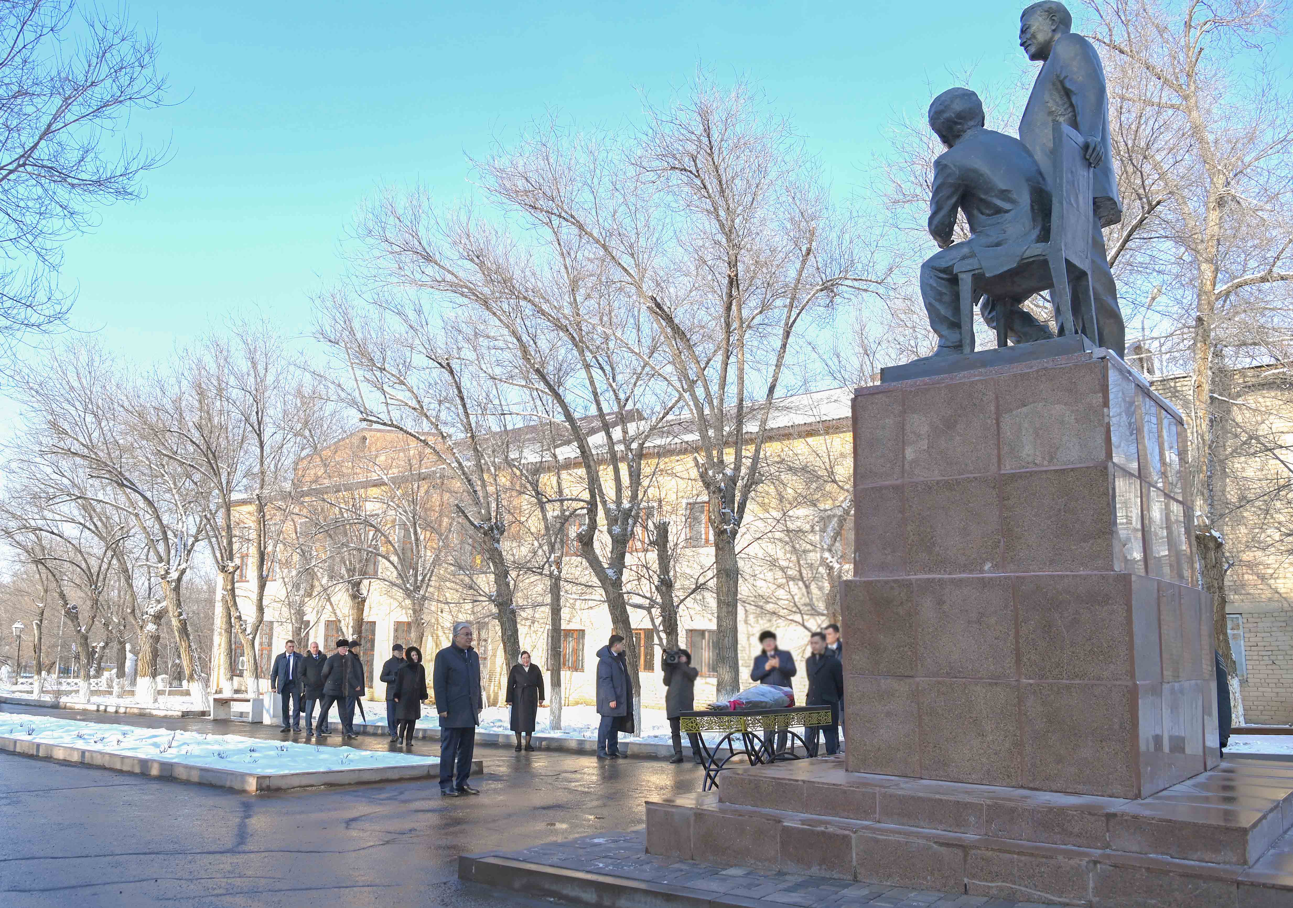 Мемлекет басшысы, ең алдымен, Тахауи Ахтанов пен Қуандық Шаңғытбаевтың ескерткіштеріне гүл шоғын қойды.