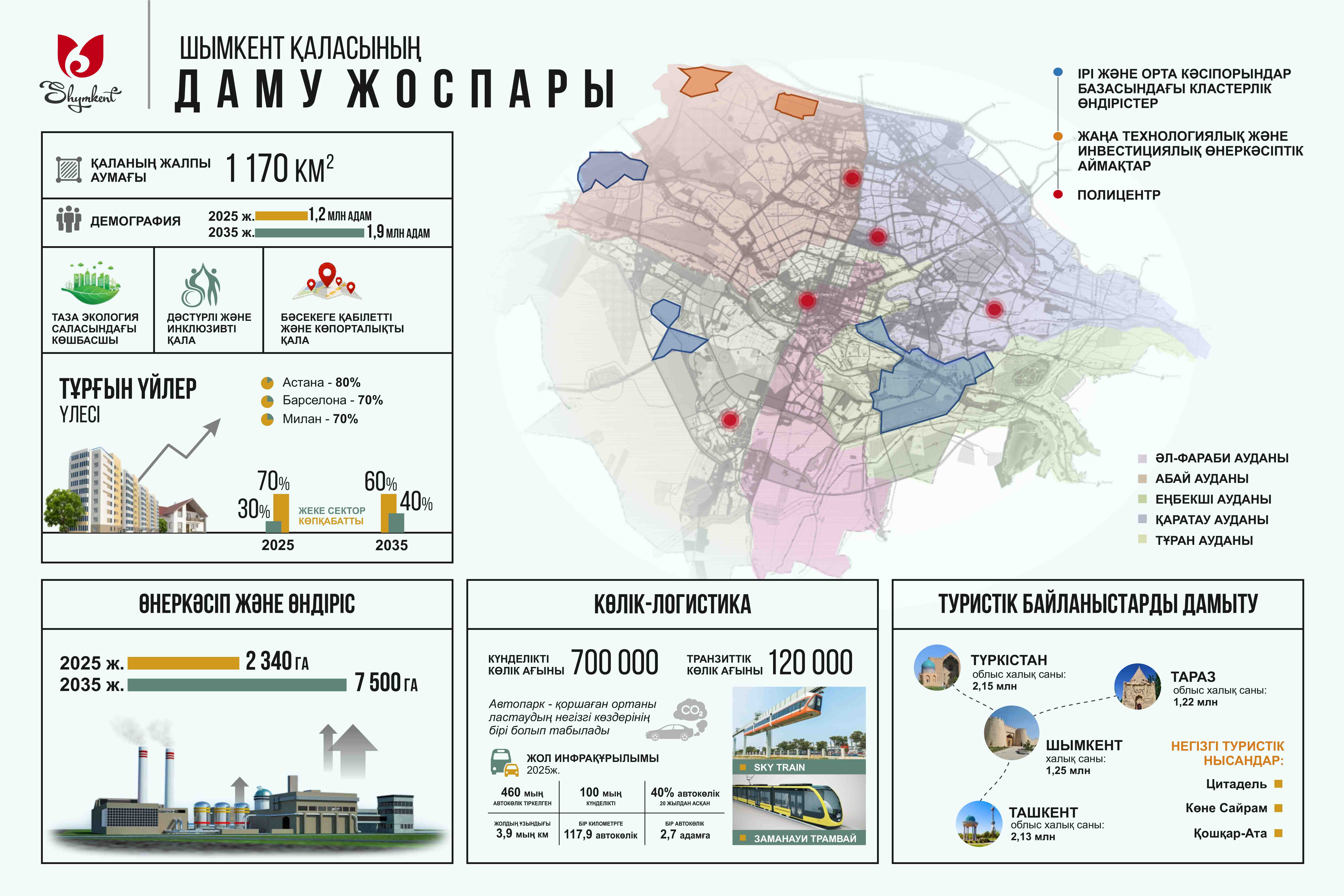 Шымкент қаласы Қасым-Жомарт Тоқаев өткен жылы маусым айында пайдалануға берілген конгресс-холл ғимаратымен танысты. Президент тапсырмасына сәйкес бой көтерген бұл көрікті нысан бұқаралық мәдени іс-шаралар өткізуге арналған. Мұнда сондай-ақ қолөнершілердің орталығы мен шеберханалары орналасқан. Мемлекет басшысы Шымкентте жүзеге асырылып жатқан цифрлық шешімдермен танысты. Олардың қатарында отандық «СМЭУ Астана» әзірлемесіне негізделген бағдаршамдарды интеллектуалдық басқару жүйесі, Avtobys цифрлық платформасы бар. Sergek Group және Freedom Telecom компанияларымен бірге FWA технологиясы негізінде жұмыс істейтін, жол қозғалысы мен мен қоғамдық тәртіпке үздіксіз мониторинг жүргізетін сыртқы бейнебақылау және жылдамдығы жоғары интернет жүйесі енгізіліп жатыр.