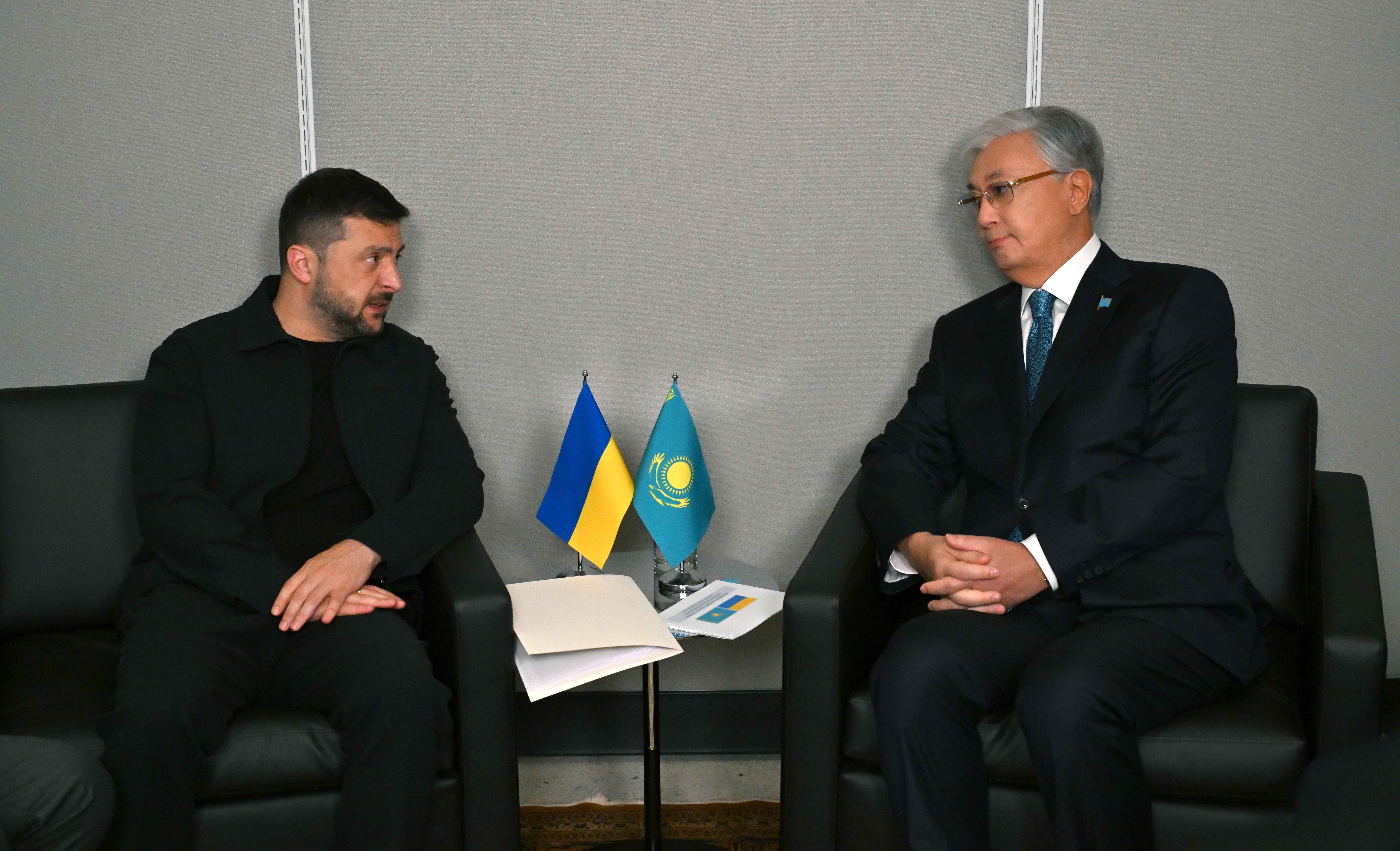 БҰҰ Бас Ассамблеясының 80-ші сессиясы алаңында Қасым-Жомарт Тоқаев Владимир Зеленскиймен кездесті. Мемлекеттер басшылары екіжақты экономикалық және гуманитарлық ынтымақтастық мәселелерін талқылады. Владимир Зеленский Украинадағы жағдайға байланысты көзқарасын жеткізді. Қазақстан Президенті осынау аса күрделі ахуалға қатысты пікір білдіріп, қақтығысты тоқтату мақсатында дипломатиялық жұмыстарды жалғастыру қажет екеніне назар аударды.