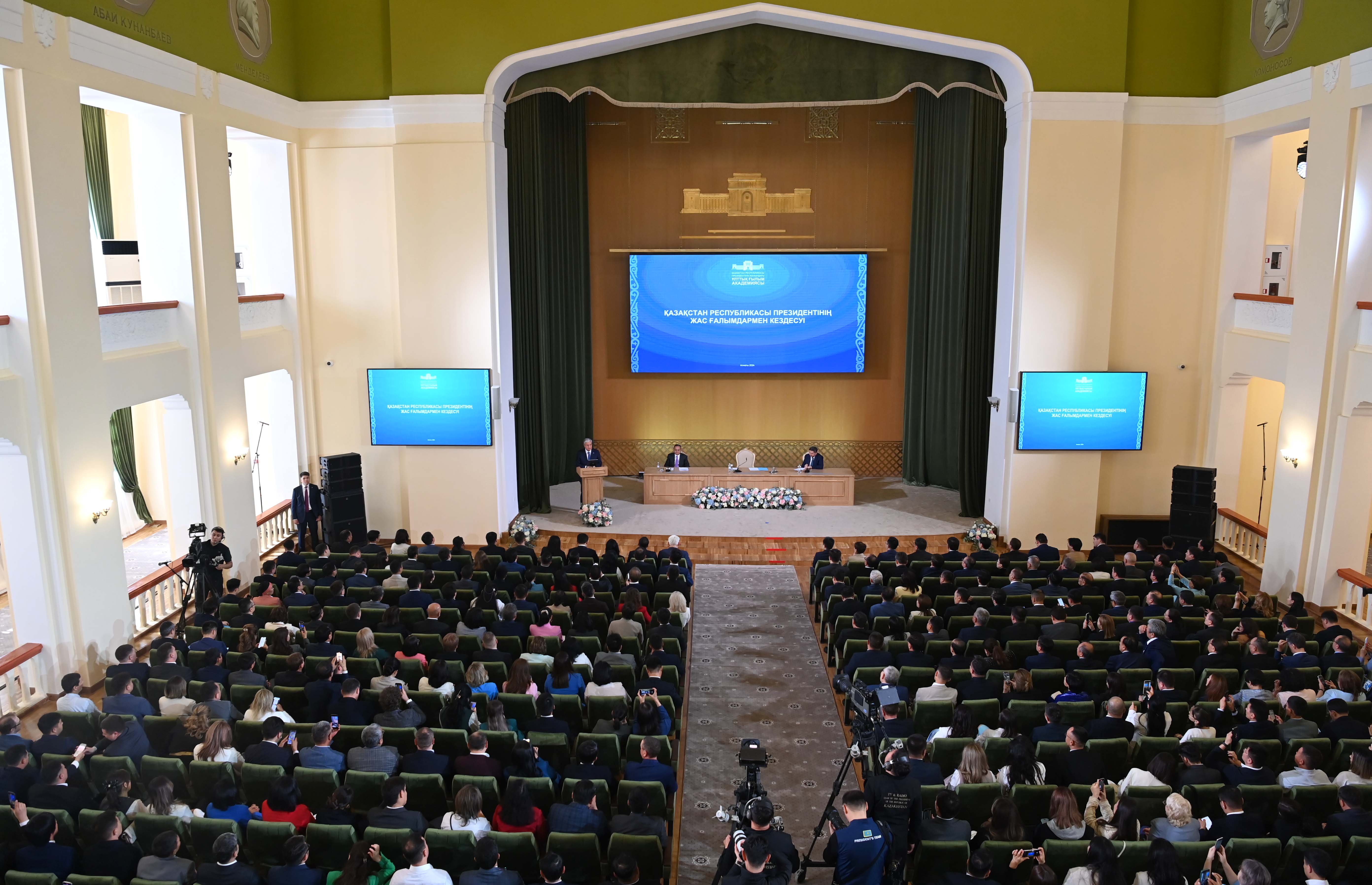 Бұдан кейін, Мемлекет басшысы «Ғылым ордасының» акт залында жас ғалымдармен кездесті.