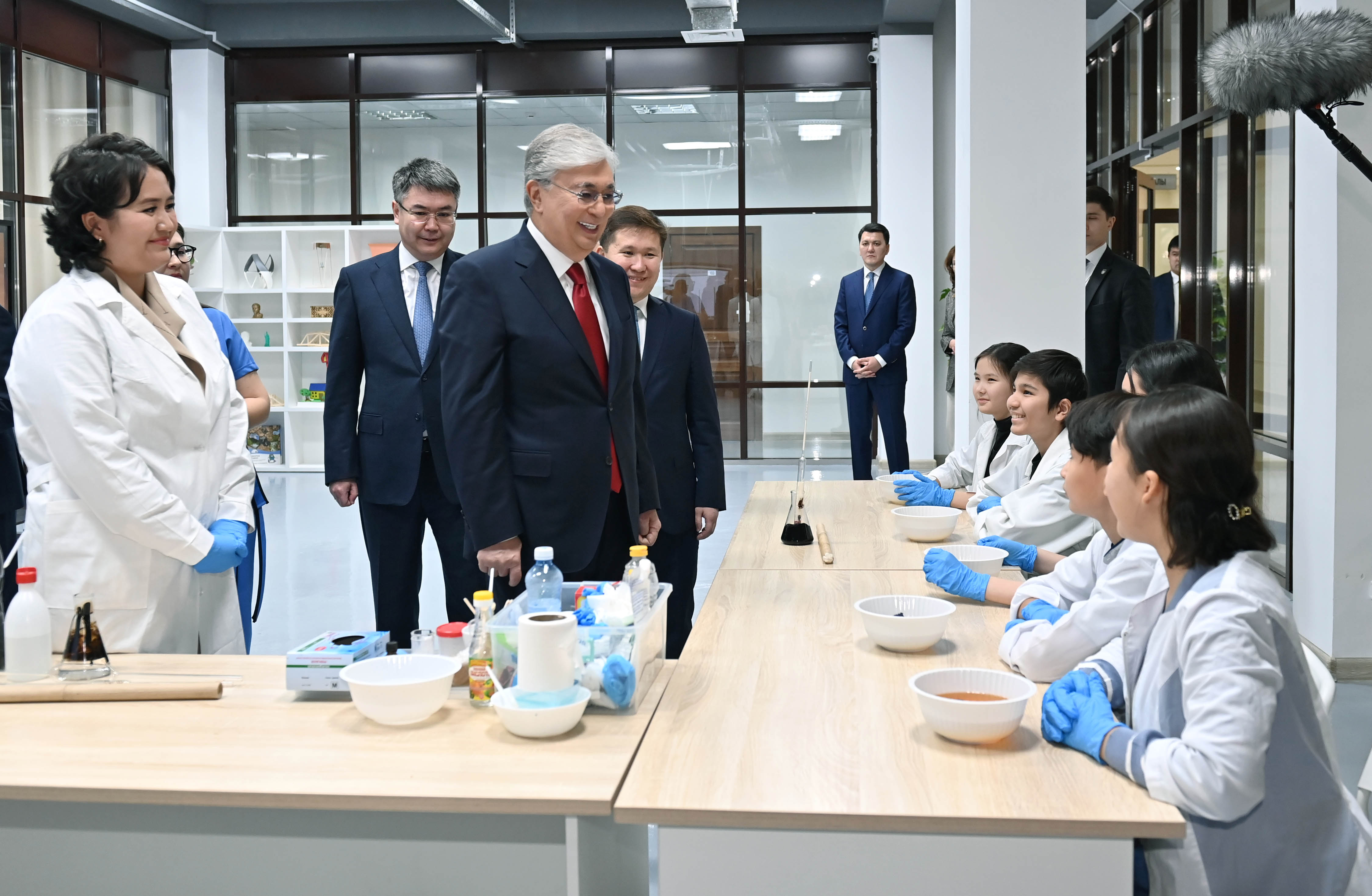 Президент «JasSpace» STEM зертханасында жасалған жобалармен, бұйымдармен танысты. Сондай-ақ бір топ жас домбырашы Құрманғазының «Балбырауын» күйін орындады.