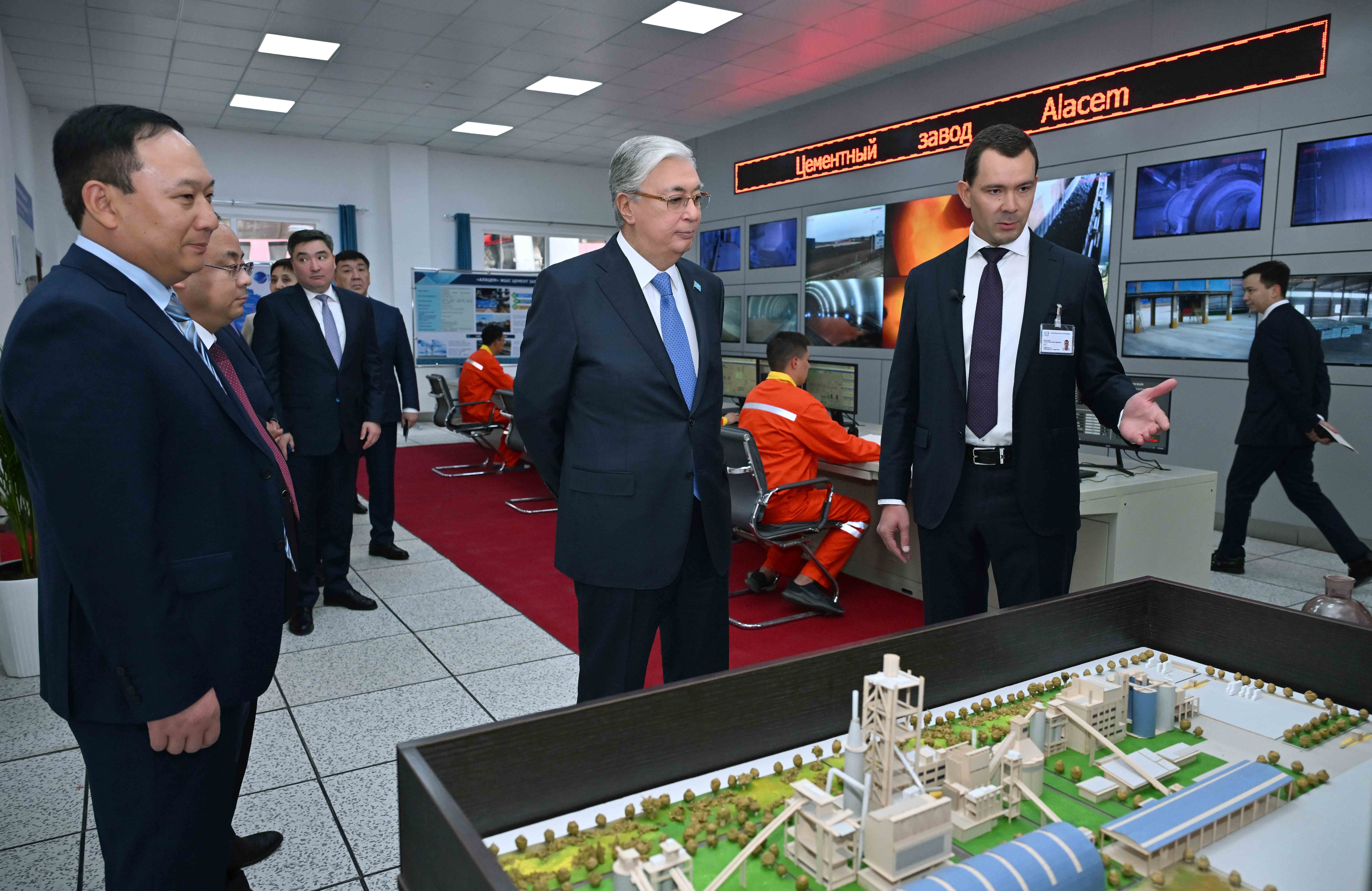 Мемлекет басшысы Қасым-Жомарт Тоқаев Жетісу өңіріндегі ірі өндіріс ошақтарының бірі саналатын «ALACEM» цемент зауытын аралап көрді.