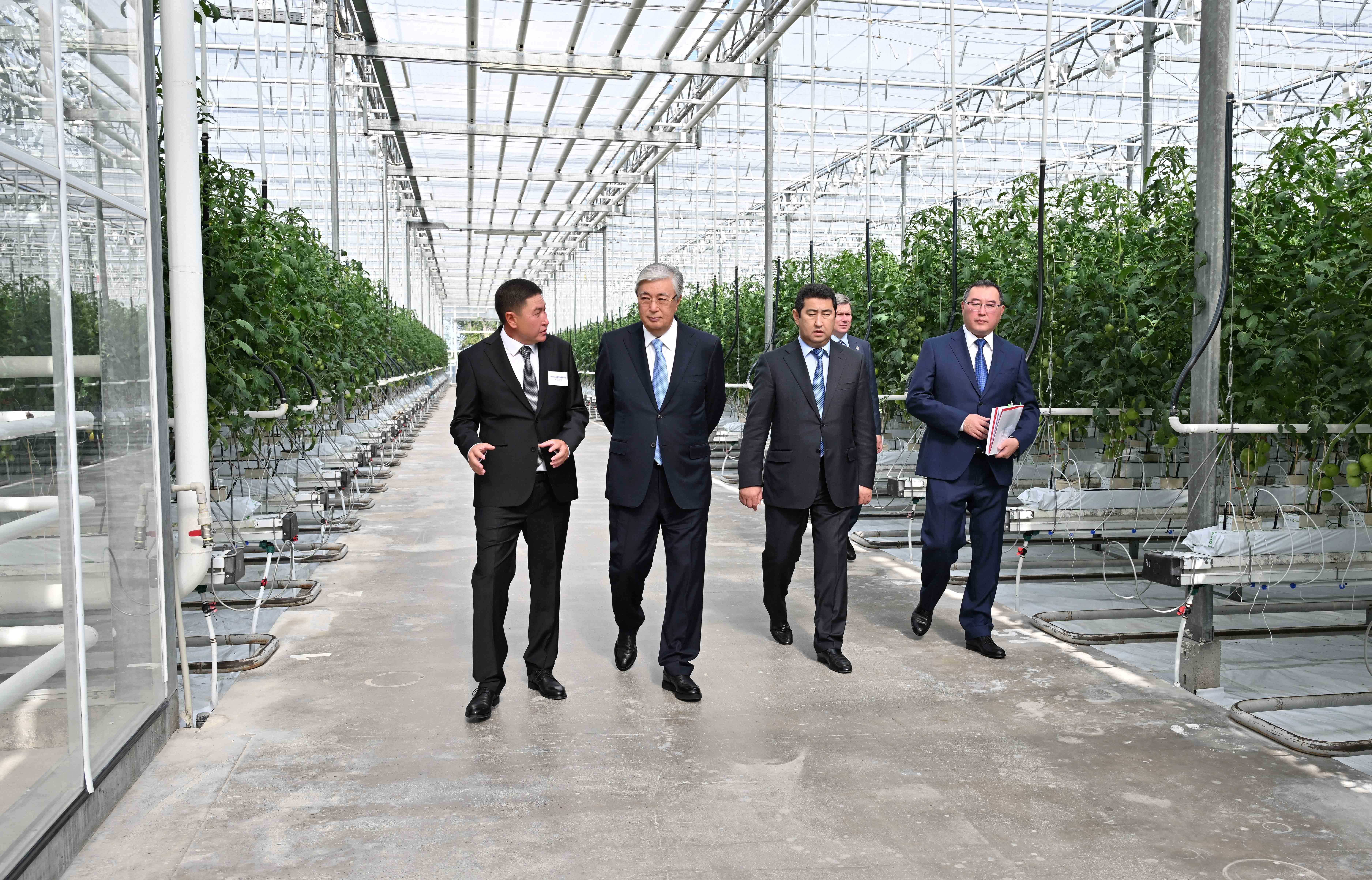 Президентке кәсіпорында тамшылатып суару,  тұмандату  және көмірқышқыл газын өндіру жүйелері жұмыс істейтіні туралы баяндалды. Жылыжай кешеніндегі суару құралдарын, климаттық және энергетикалық жабдықтарды басқару жүйесі толығымен автоматтандырылған, сондай-ақ ол арнайы компьютерлік бағдарлама көмегімен жүзеге асырылады. Мұнда суды тазартудың заманауи технологиясы да енгізілген.