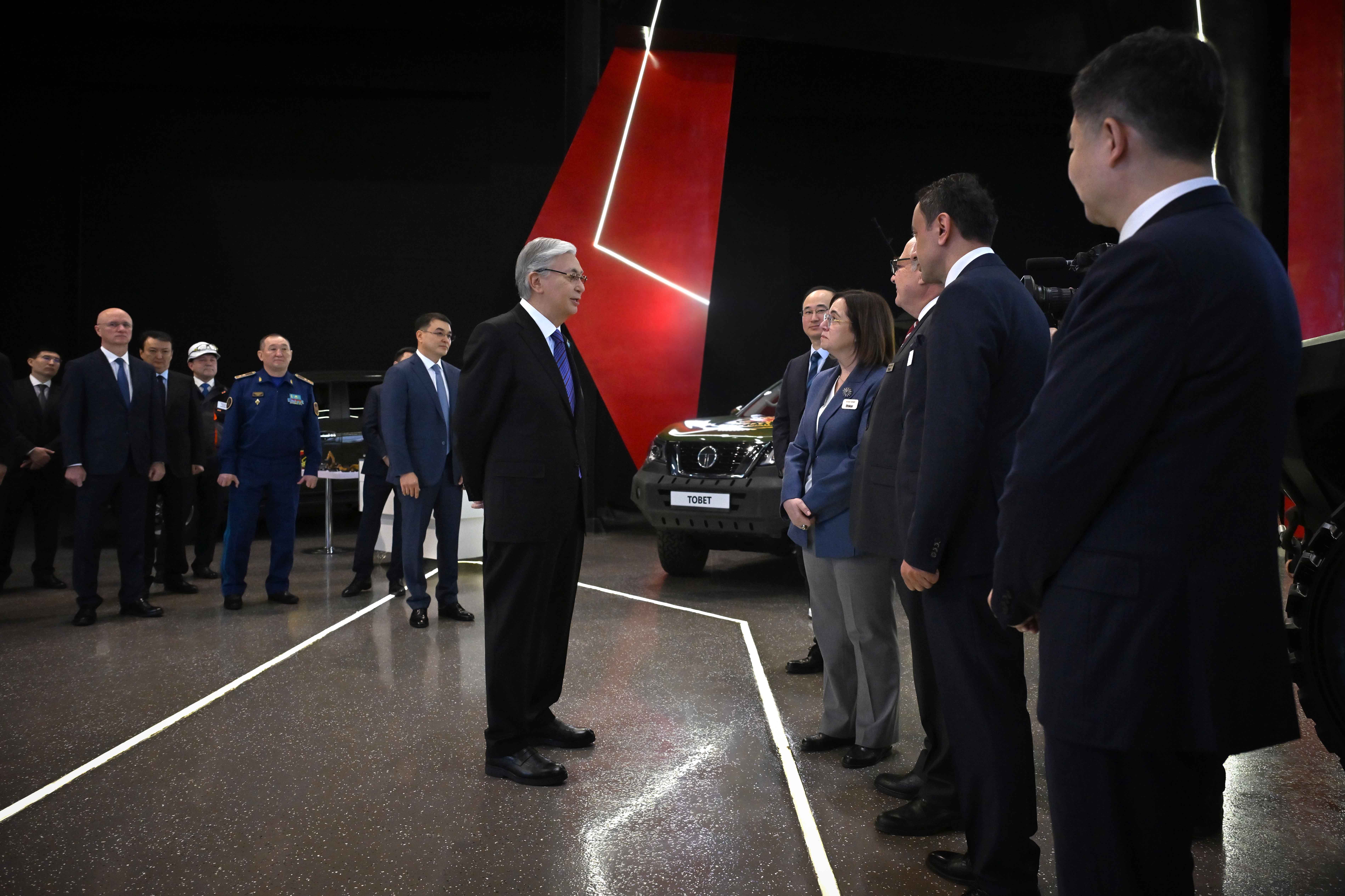 Мемлекет басшысы шынжыр табанды және дөңгелекті бронды машиналар шығаратын, сондай-ақ оларға техникалық қызмет көрсететін Besqaru зауытына барды. Қасым-Жомарт Тоқаев цехтардағы құрастыру жұмыстарын аралап көріп, қорғаныс өнеркәсібі кешеніне қарасты кәсіпорынның технологиялық процестерімен және өндірістік мүмкіндіктерімен танысты. Компания жылына 200 бронды техника құрастырады. Олардың қатарында суды кешіп өте алатын, дөңгелекті Taimas8x8, Aibar 4x4 бронды машиналары, сондай-ақ Tulpar шынжыр табанды техникасы бар.Besqaru компаниясы өз өнімін Қорғаныс министрлігі мен басқа да күштік құрылымдарға арнап шығарады. Өндіріс алаңы биыл ақпан айында іске қосылды. Жалпы құны 13,5 миллиард теңге болатын жоба аясында 134 жұмыс орны ашылды. Мемлекет басшысы зауыт қызметкерлерімен әңгімелесіп, олардың еңбегі өнімді болуына тілектестік білдірді.