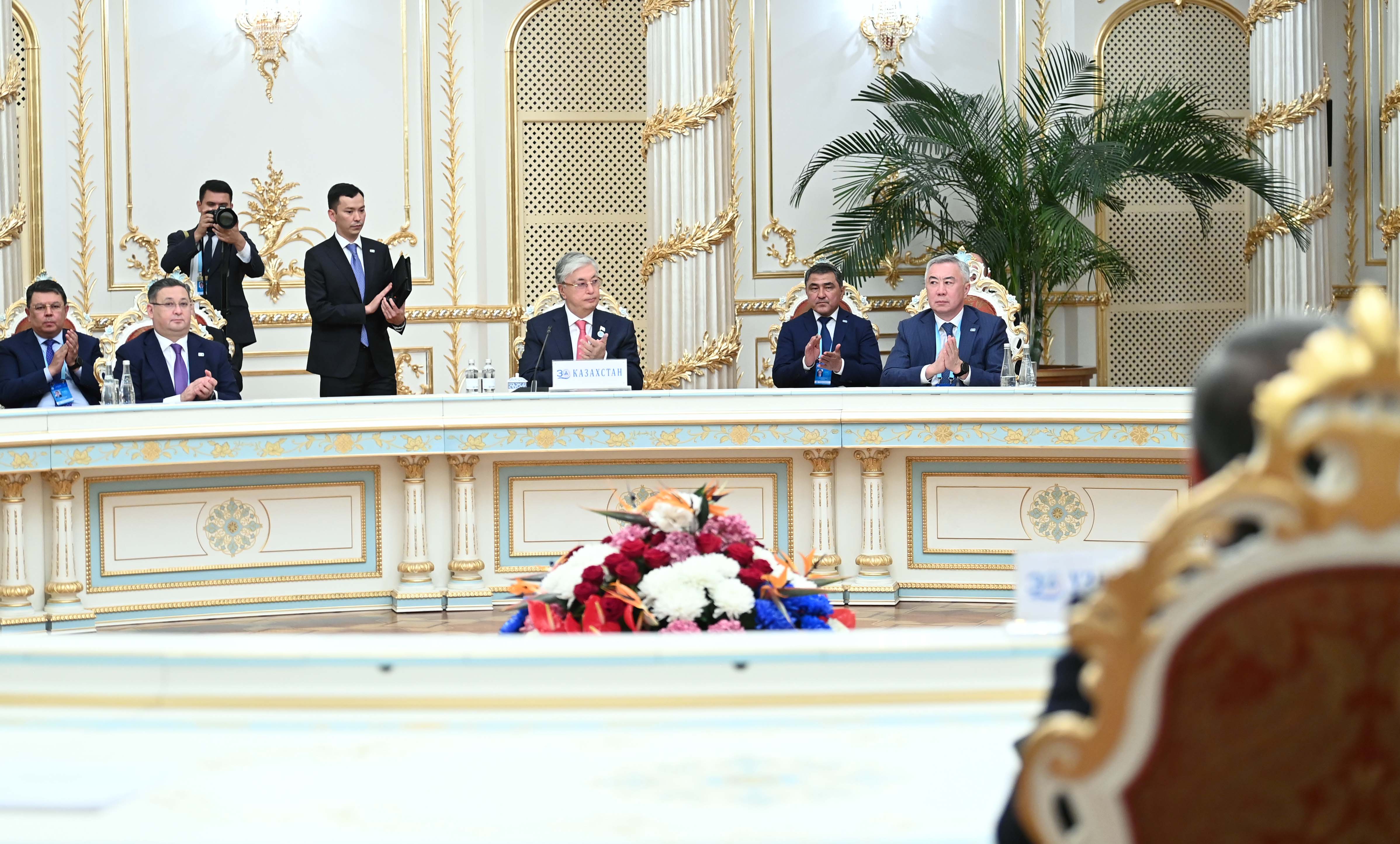 Мемлекет басшысы, ең алдымен, құрмет көрсеткені әрі іс-шараны жоғары деңгейде ұйымдастырғаны үшін тәжік тарапына және Президент Эмомали Рахмонға алғыс айтты, сондай-ақ форумға қатысып отырған БҰҰ Бас хатшысының арнаулы өкілі Кахи Имнадзеге ілтипат білдірді.