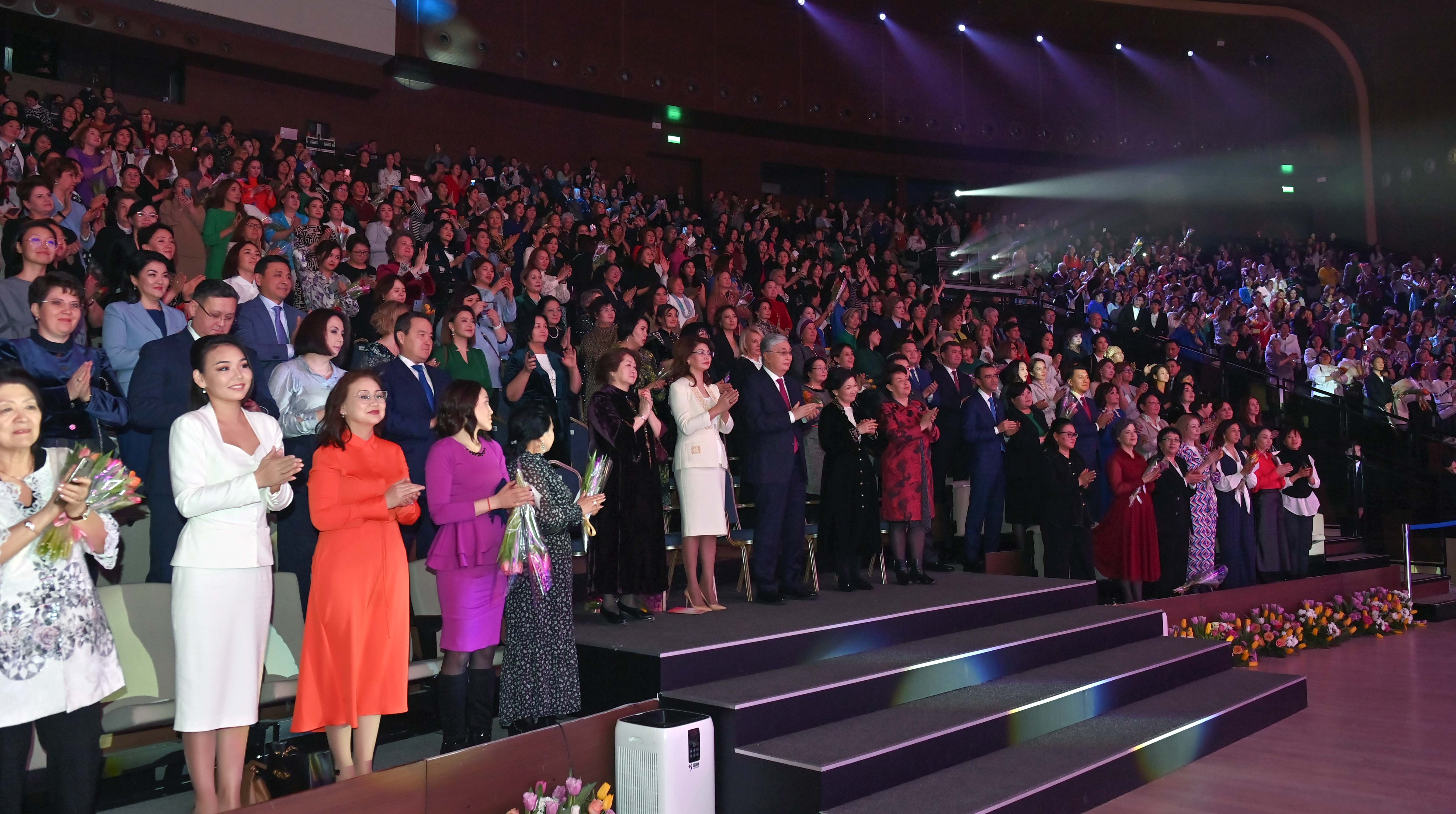 – Қазір қыздарымыз әлемнің ең үздік университеттерінде білім алып жатыр. Жаһандық компанияларда жұмыс істейді. Сан түрлі кәсіпті меңгерген әйелдер қоғамның түрлі саласында табысты еңбек етіп жүр. Олардың арасында мұғалім, дәрігер, мемлекеттік қызметші, тәрбиеші, тігінші және басқа да мамандық иелері бар. Халықаралық жарыстарда көк туымызды биікке көтерген спортшы аруларымыз да аз емес. Қаншама қыз-келіншектер бизнеспен айналысып, мыңдаған адамға жұмыс ұсынып отыр. Мен баршаңызды мақтан етемін! Сіздерге шынайы ризашылығымды білдіремін, – деді Мемлекет басшысы.